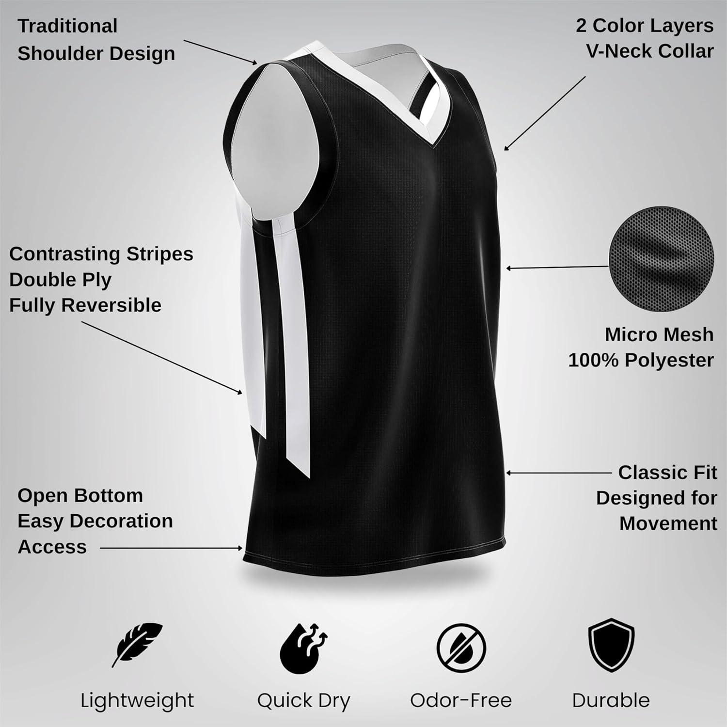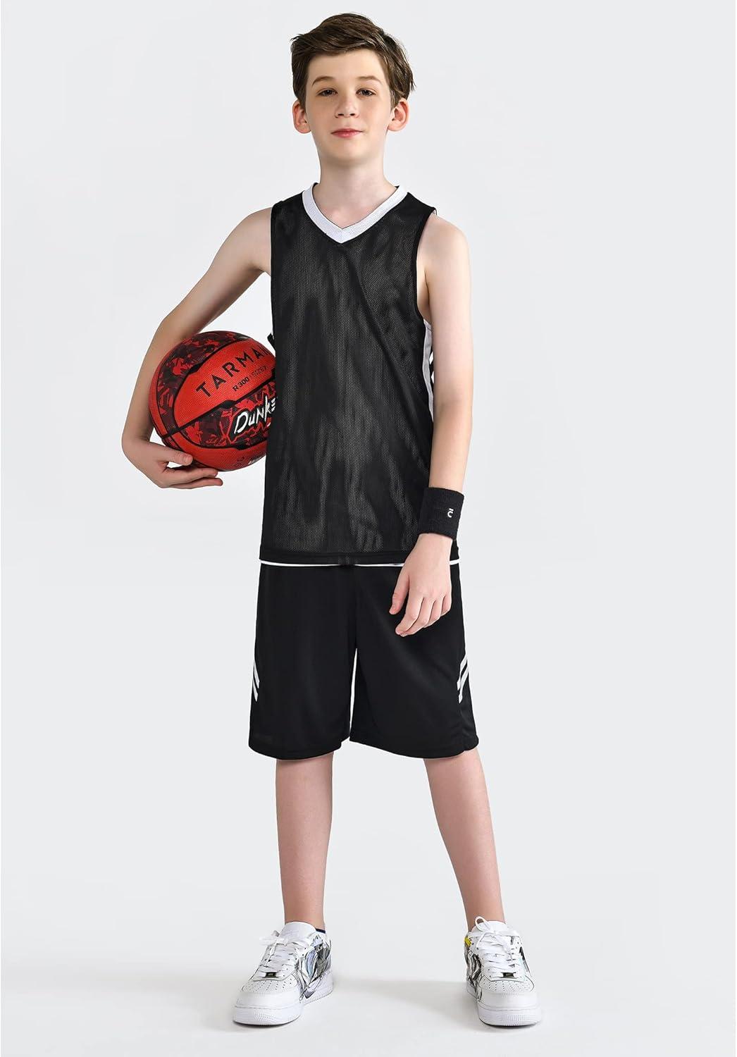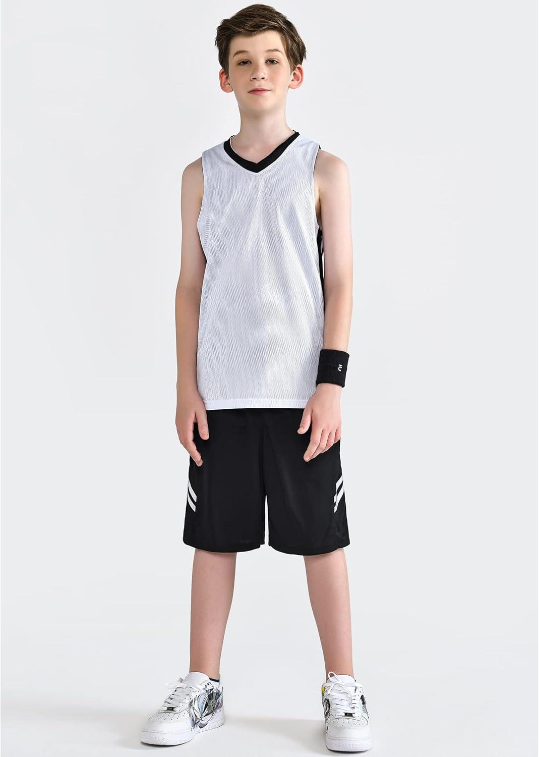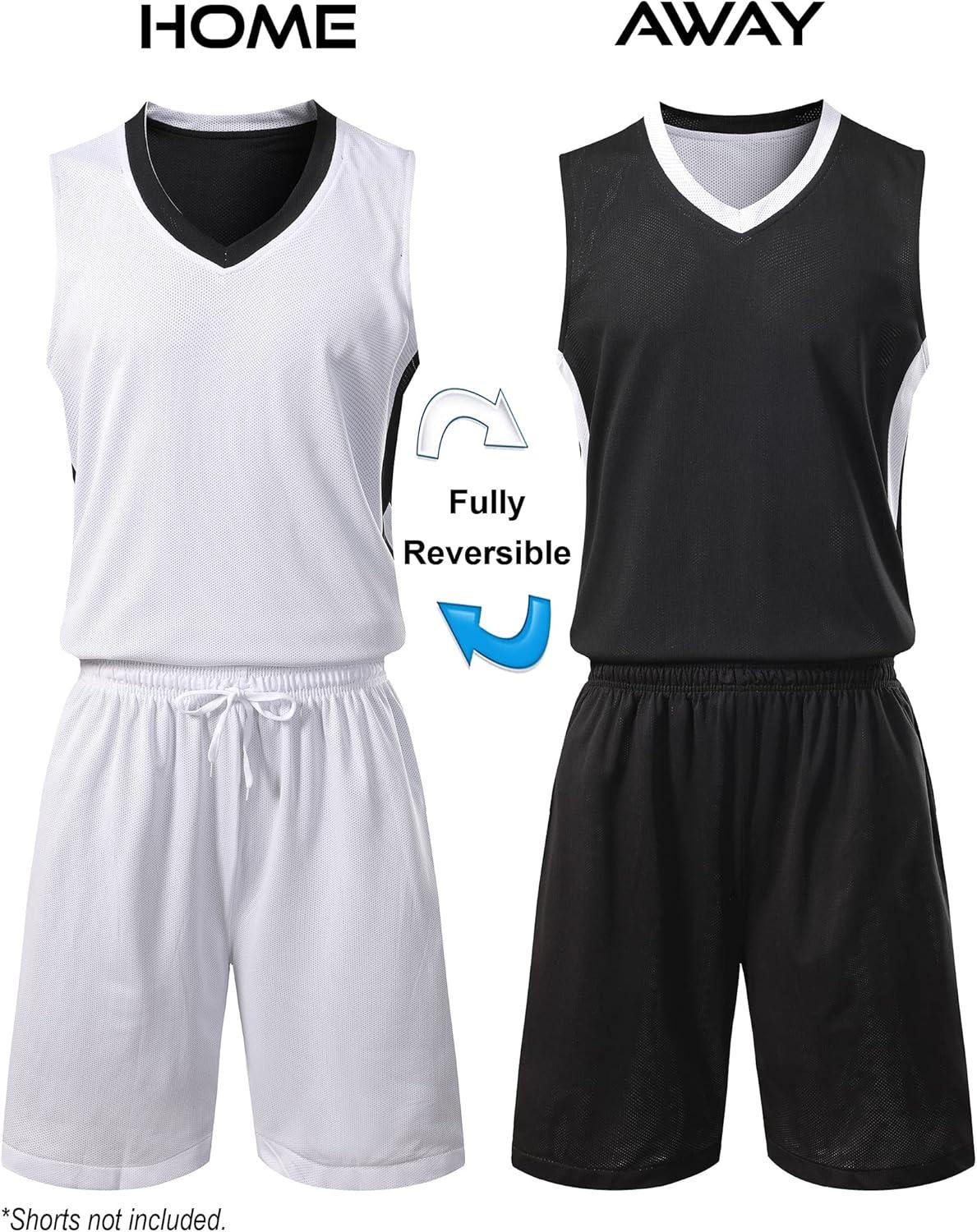 10 Pack Youth Boys Reversible Mesh Performance Athletic Basketball Jerseys Blank Team Uniforms for Sports Scrimmage Bulk(Black / White (10-pack))