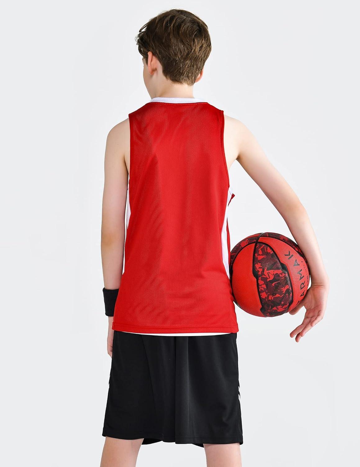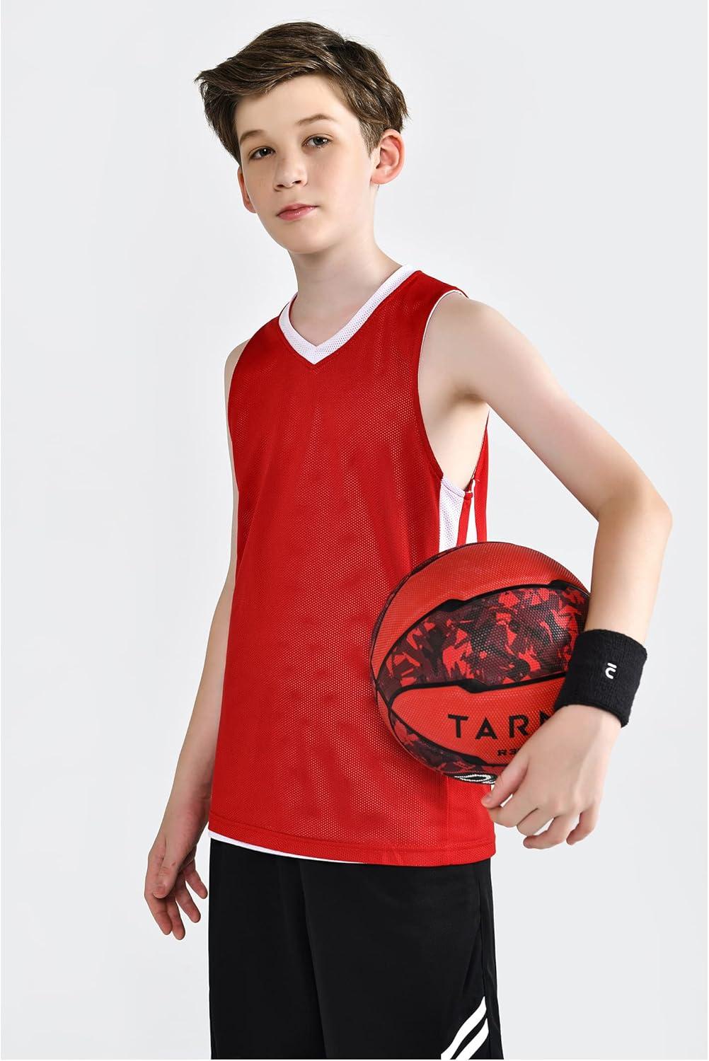 10 Pack Youth Boys Reversible Mesh Performance Athletic Basketball Jerseys Blank Team Uniforms for Sports Scrimmage Bulk(Red / White (10-pack))