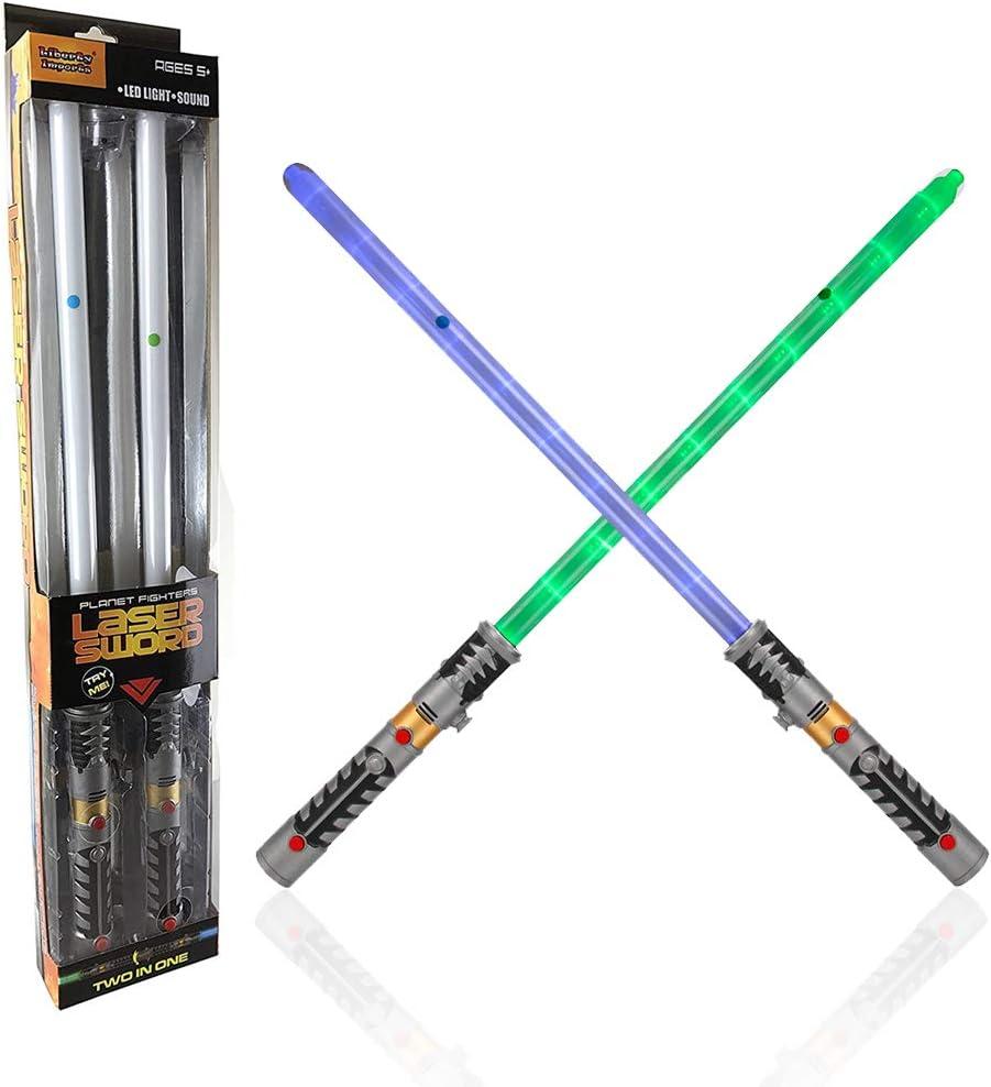 2-in-1 LED Light Up Sabers, Dual Bladed Toy Saber Swords Set for Kids with FX Power Up and Motion Sensitive Sound Effects for Cosplay