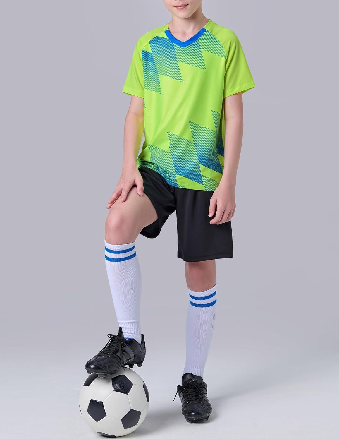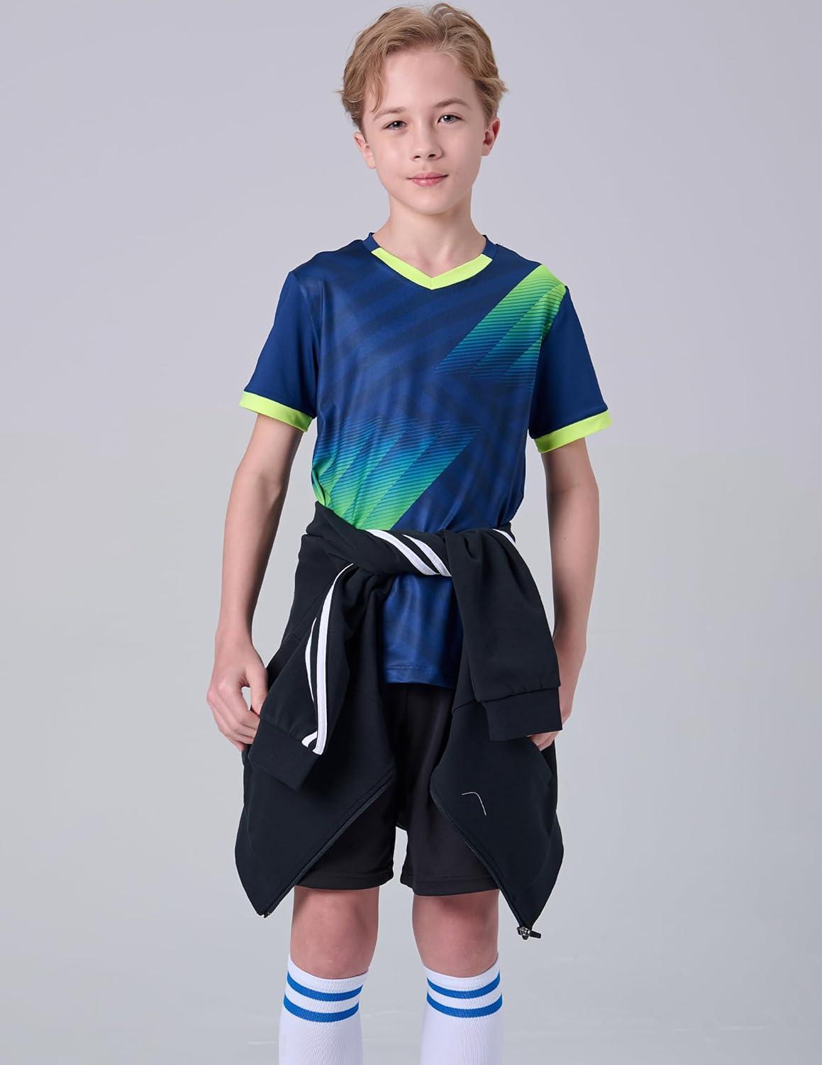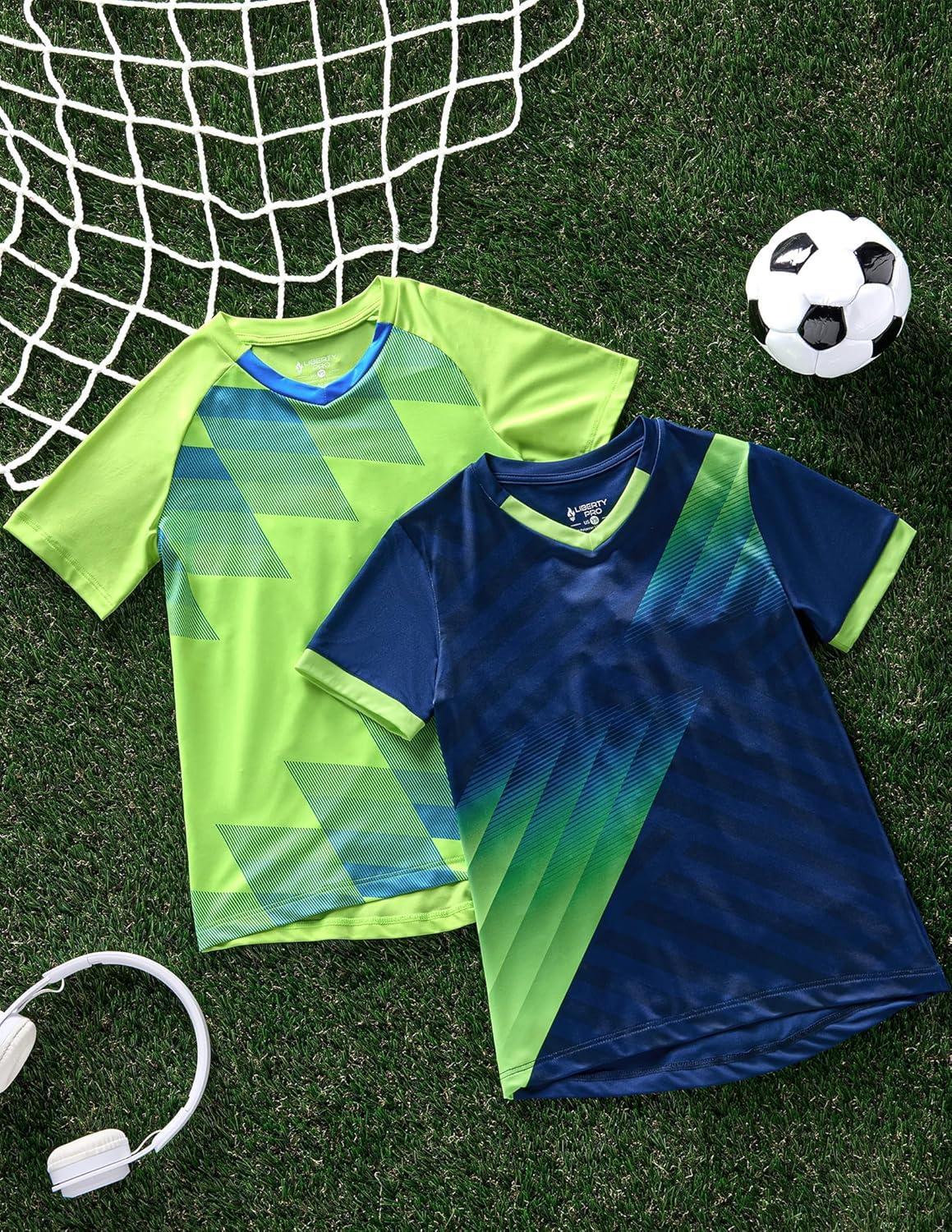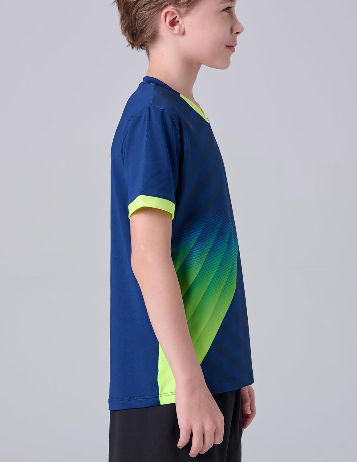 2 Pack Boys’ Soccer Jerseys, Dry Fit Athletic Short Sleeve T-Shirts for Youth Kids, Performance Tops Activewear(Navy/Lime)