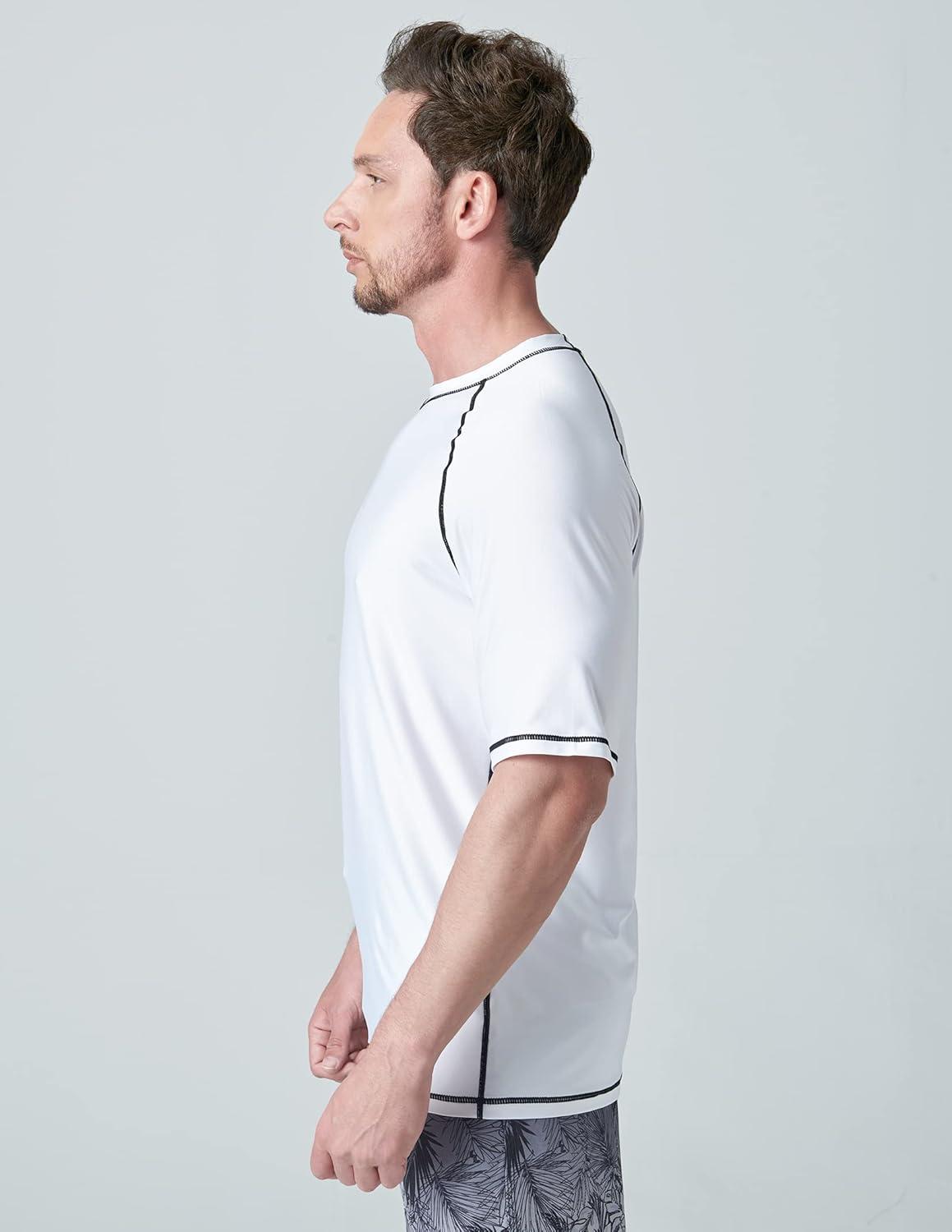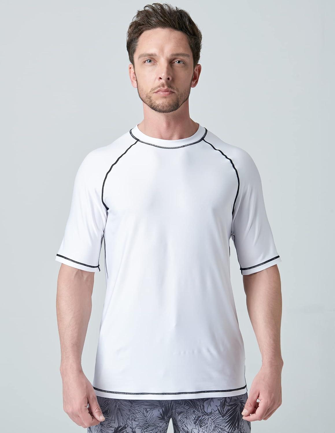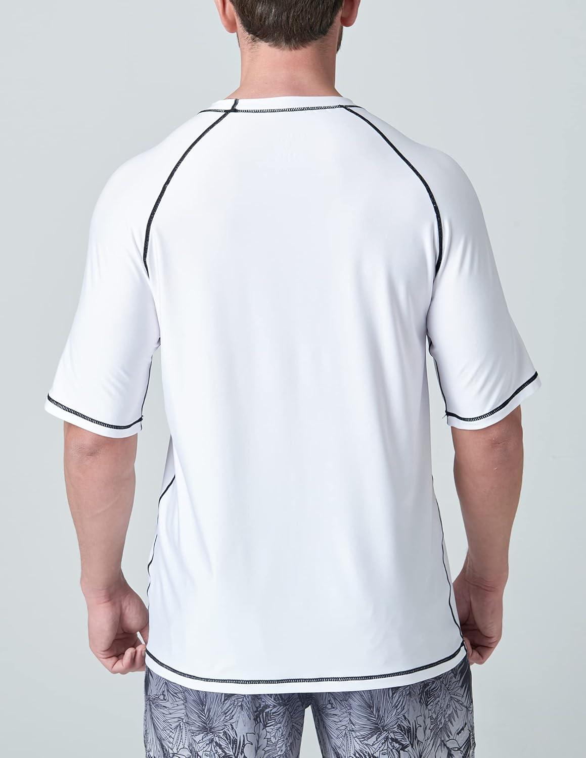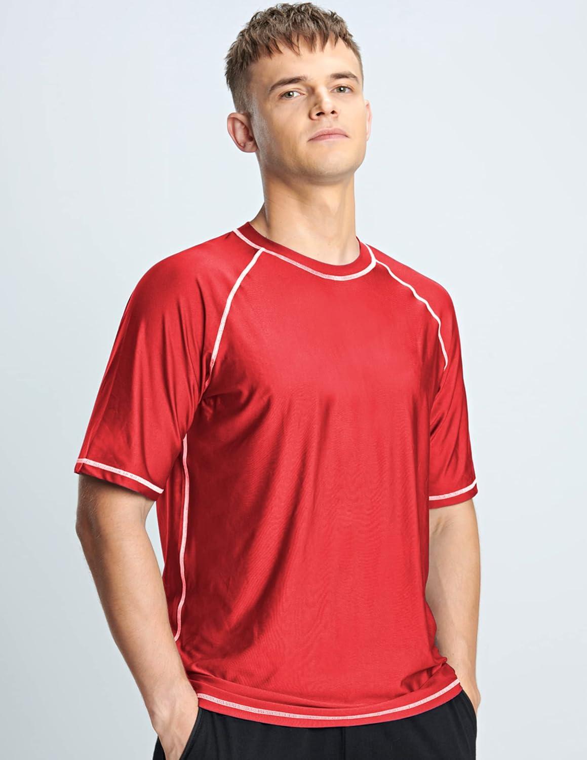 2-Pack Men’s UV Short Sleeve Swim Shirts Loose Fit Rash Guards(Red/White)