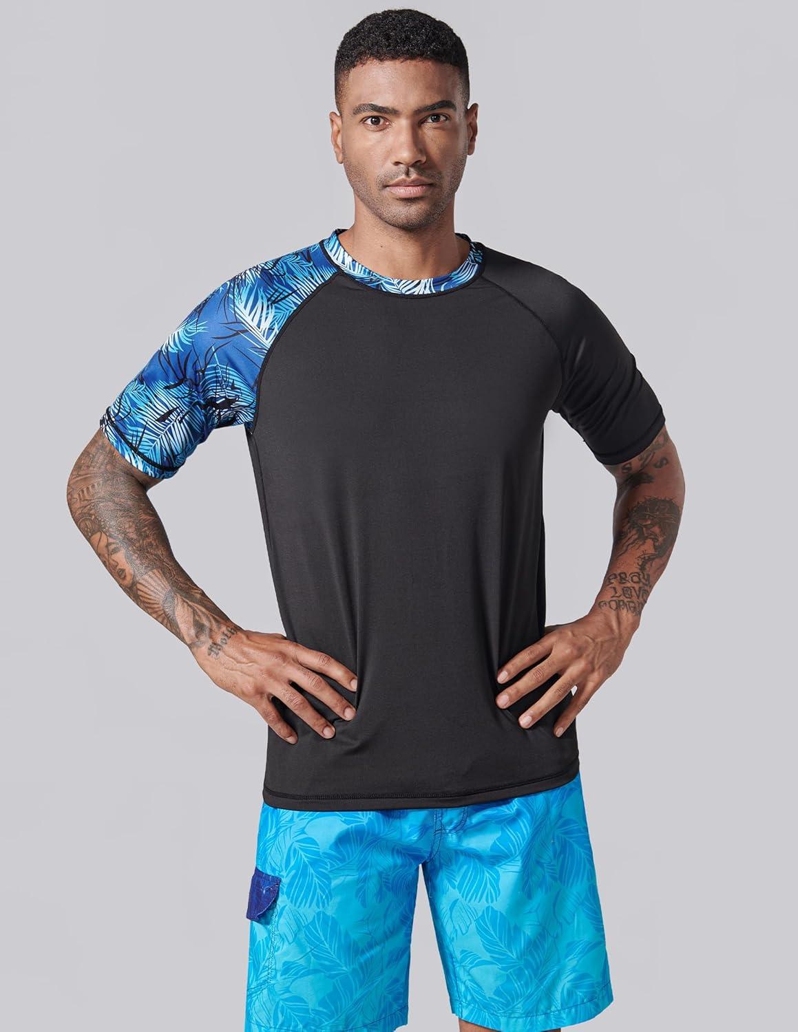 Be the first to review “2-Pack Men’s UV Short Sleeve Swim Shirts Loose Fit Rash Guards(White/Printed Black)”