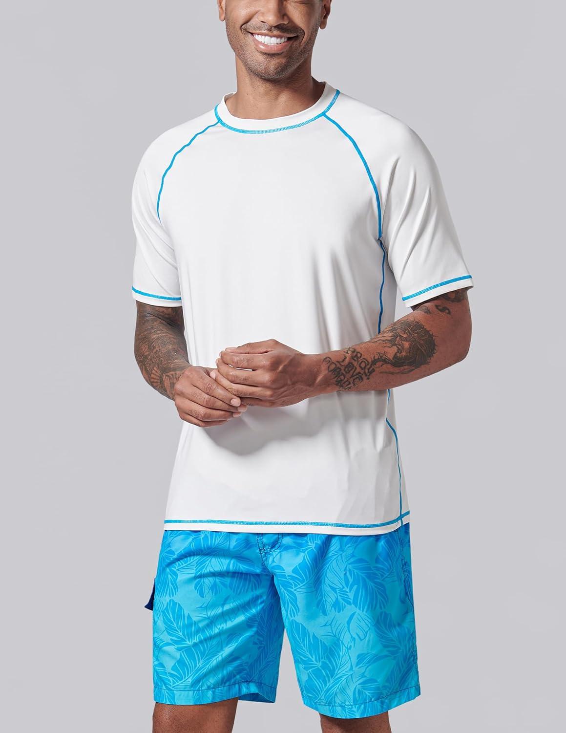 2-Pack Men’s UV Short Sleeve Swim Shirts Loose Fit Rash Guards(White/Printed Black)