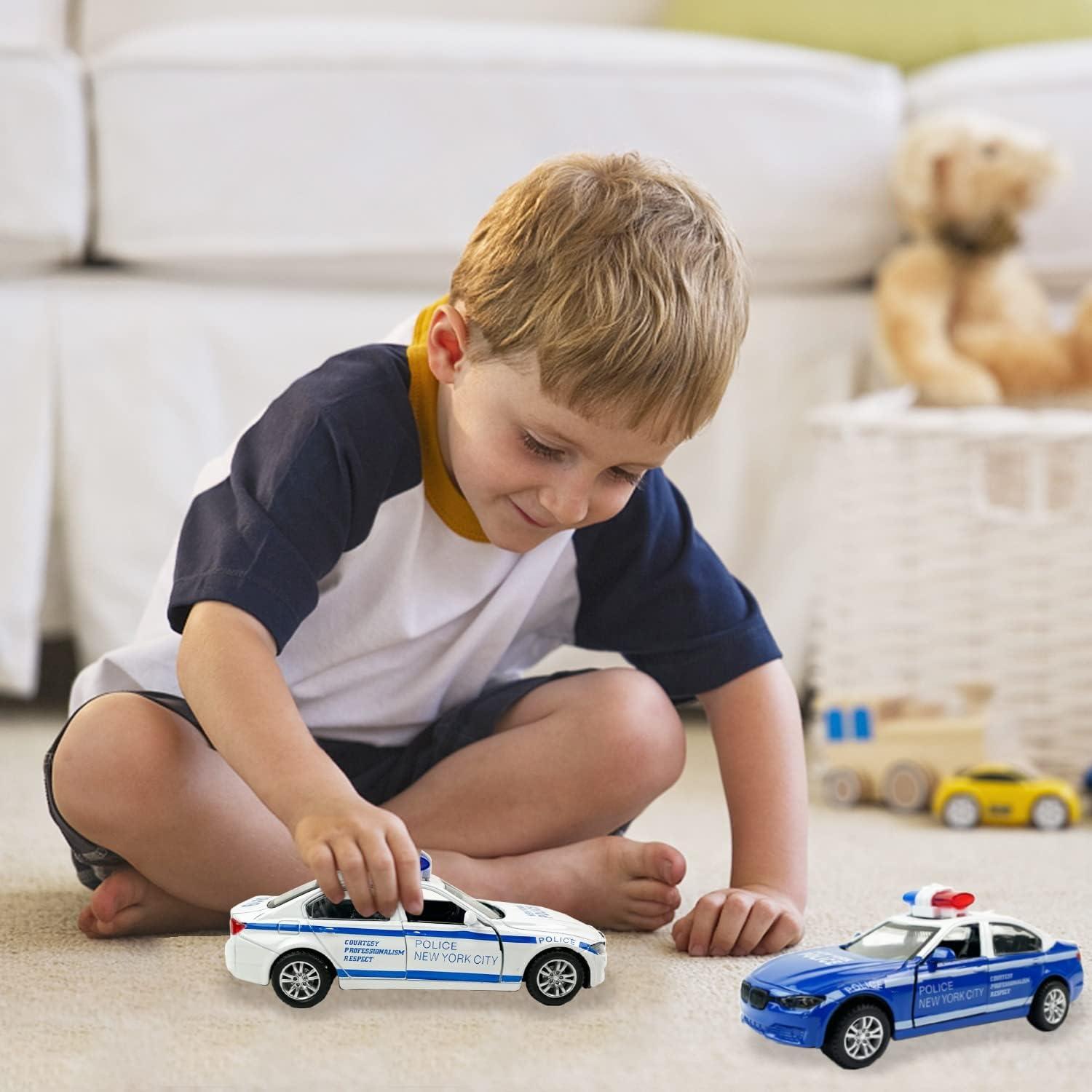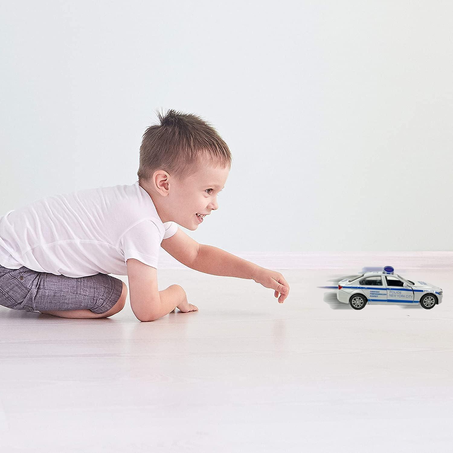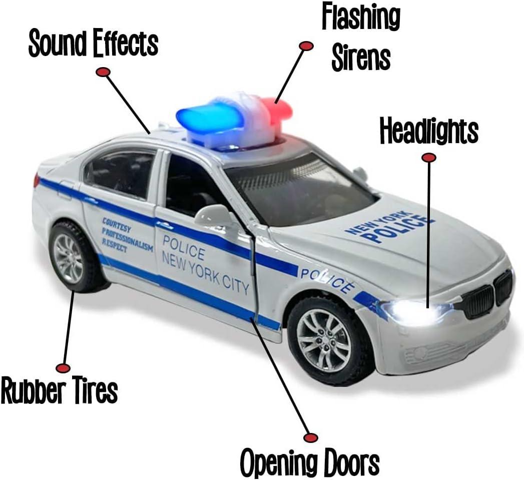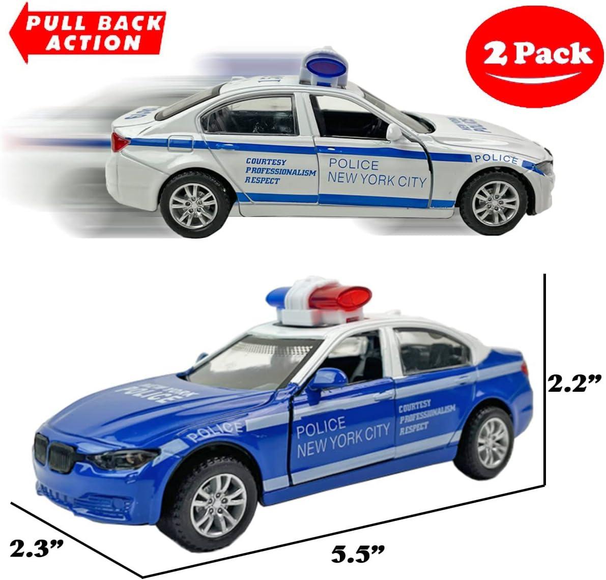 2 Pack Metal Diecast NY Police Cars Pull Back Battery Powered with LED Headlights and Siren Sounds 1:32 Scale