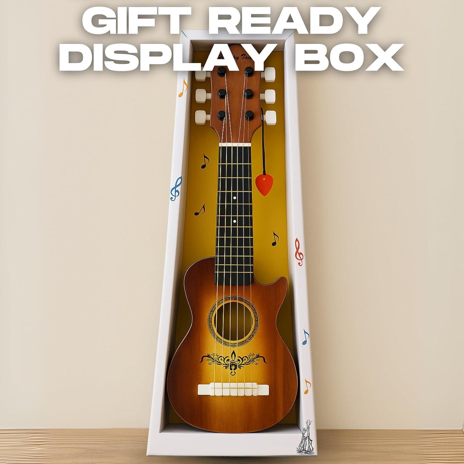 Gift-Ready Package: The guitar comes with a pick and strings, all packaged in a display gift box, making it the perfect present for your child or for friends and family who love music.