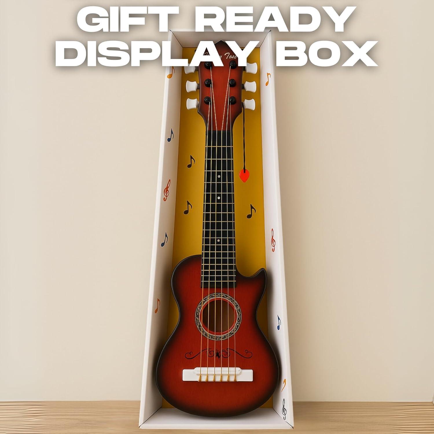 Gift-Ready Package: The guitar comes with a pick and strings, all packaged in a display gift box, making it the perfect present for your child or for friends and family who love music.