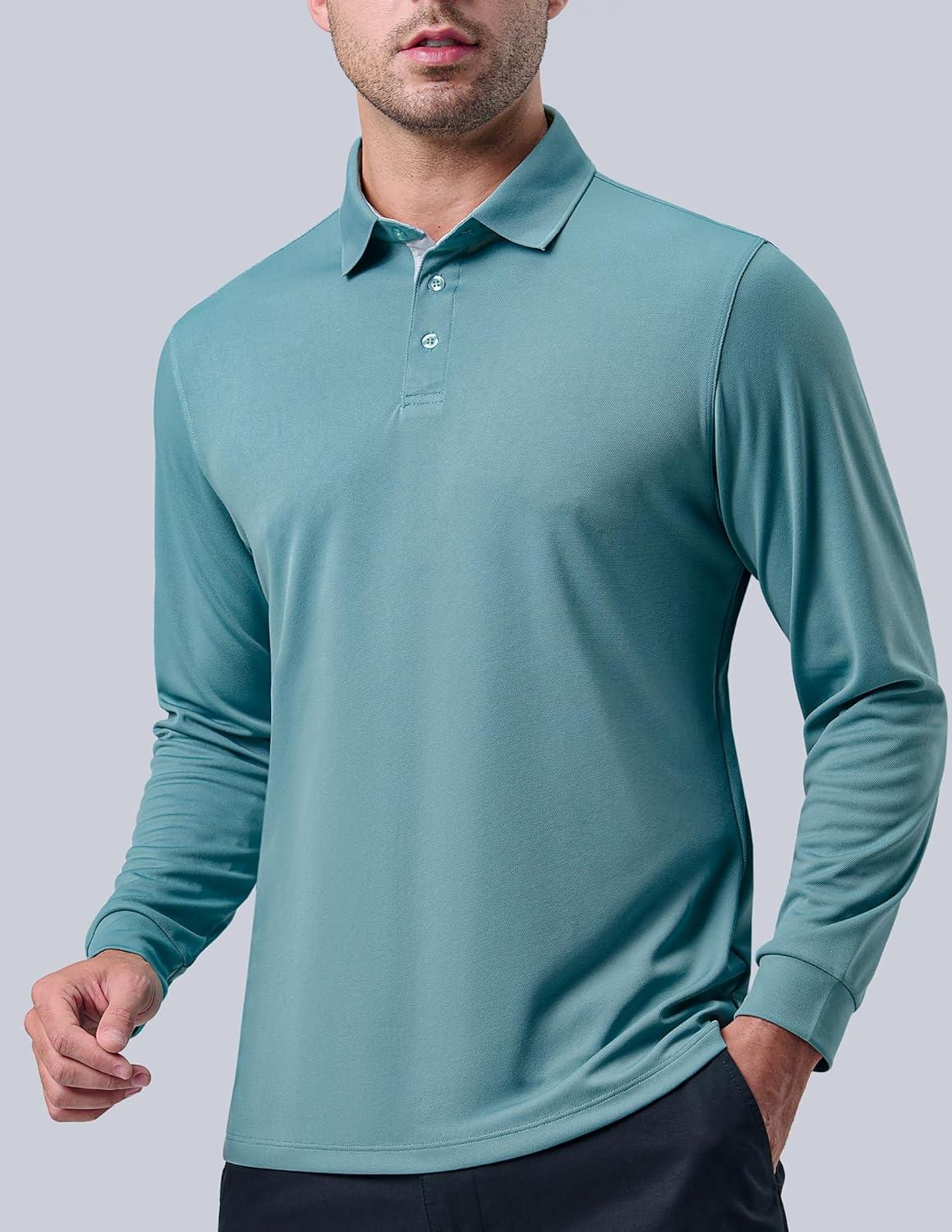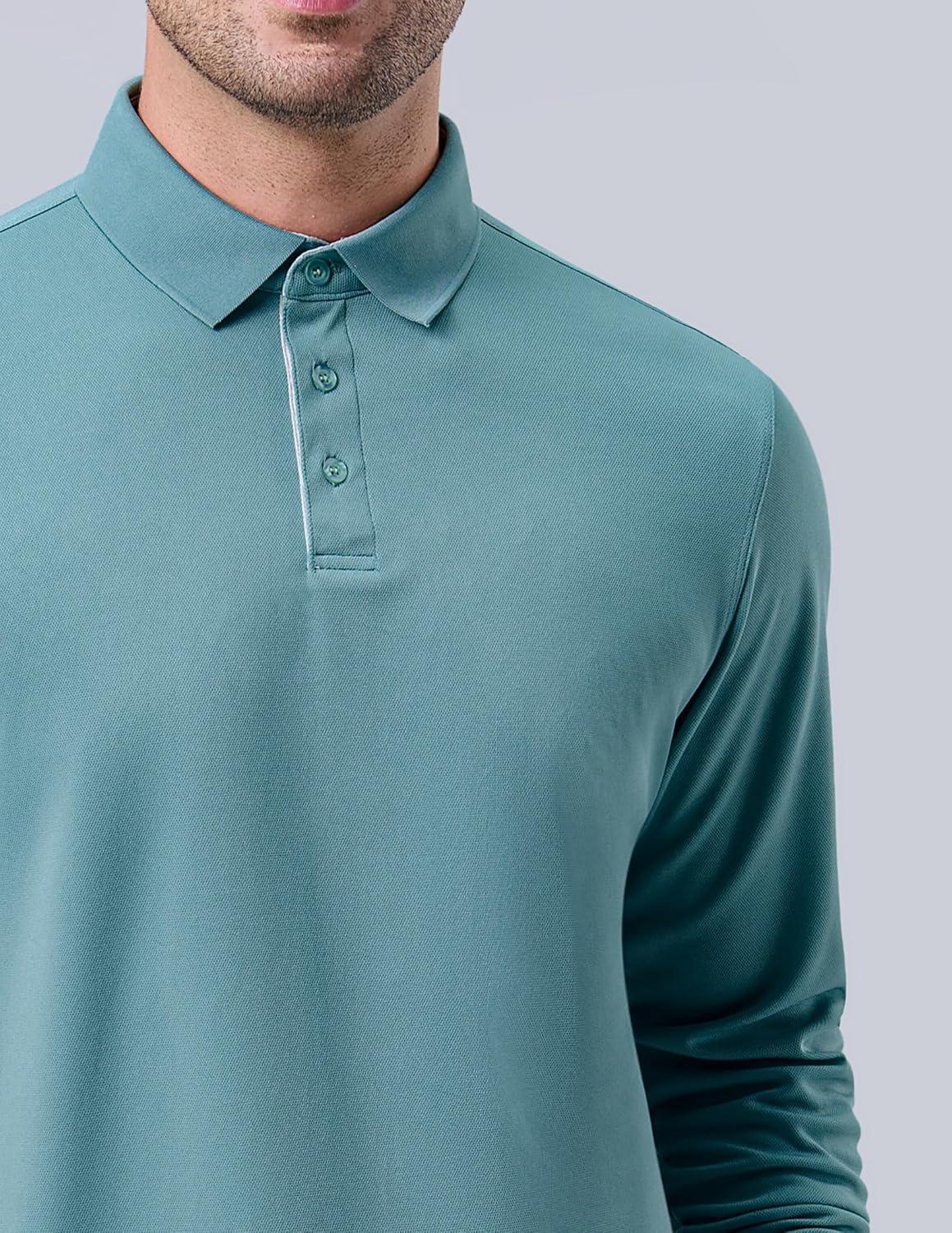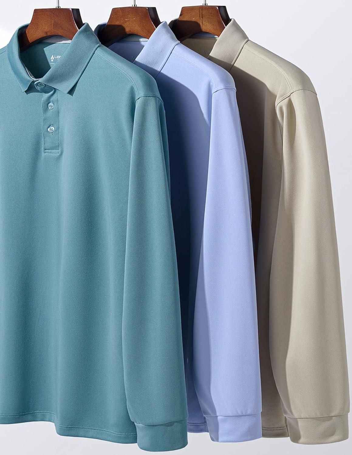 3 Pack: Dry Fit Long Sleeve Polo Shirts for Men, Athletic Collared Golf T-Shirts Performance Tops(Set 3)