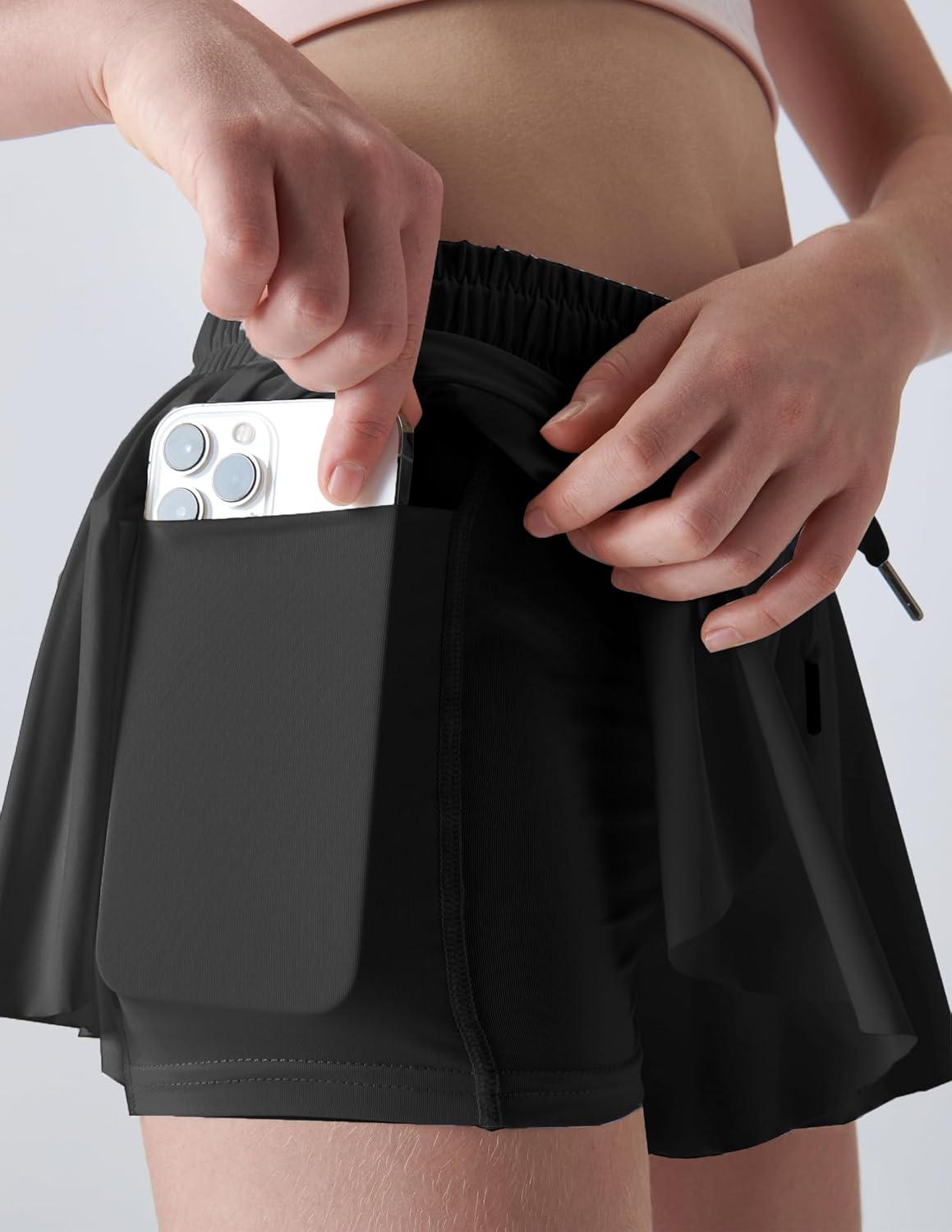 3 Pack Girls Flowy Shorts with Spandex Liner 2-in-1 Youth Butterfly Skirts for Fitness, Running, Sports(Black/Black/Black)