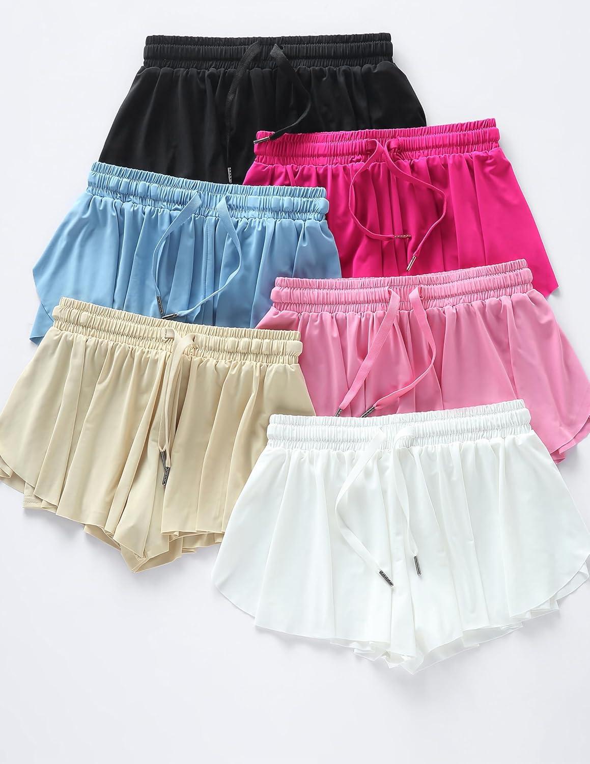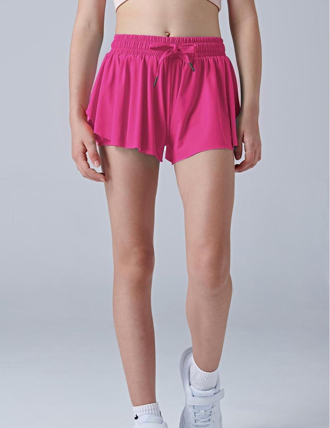 3 Pack Girls Flowy Shorts with Spandex Liner 2-in-1 Youth Butterfly Skirts for Fitness, Running, Sports(Bright Pink)