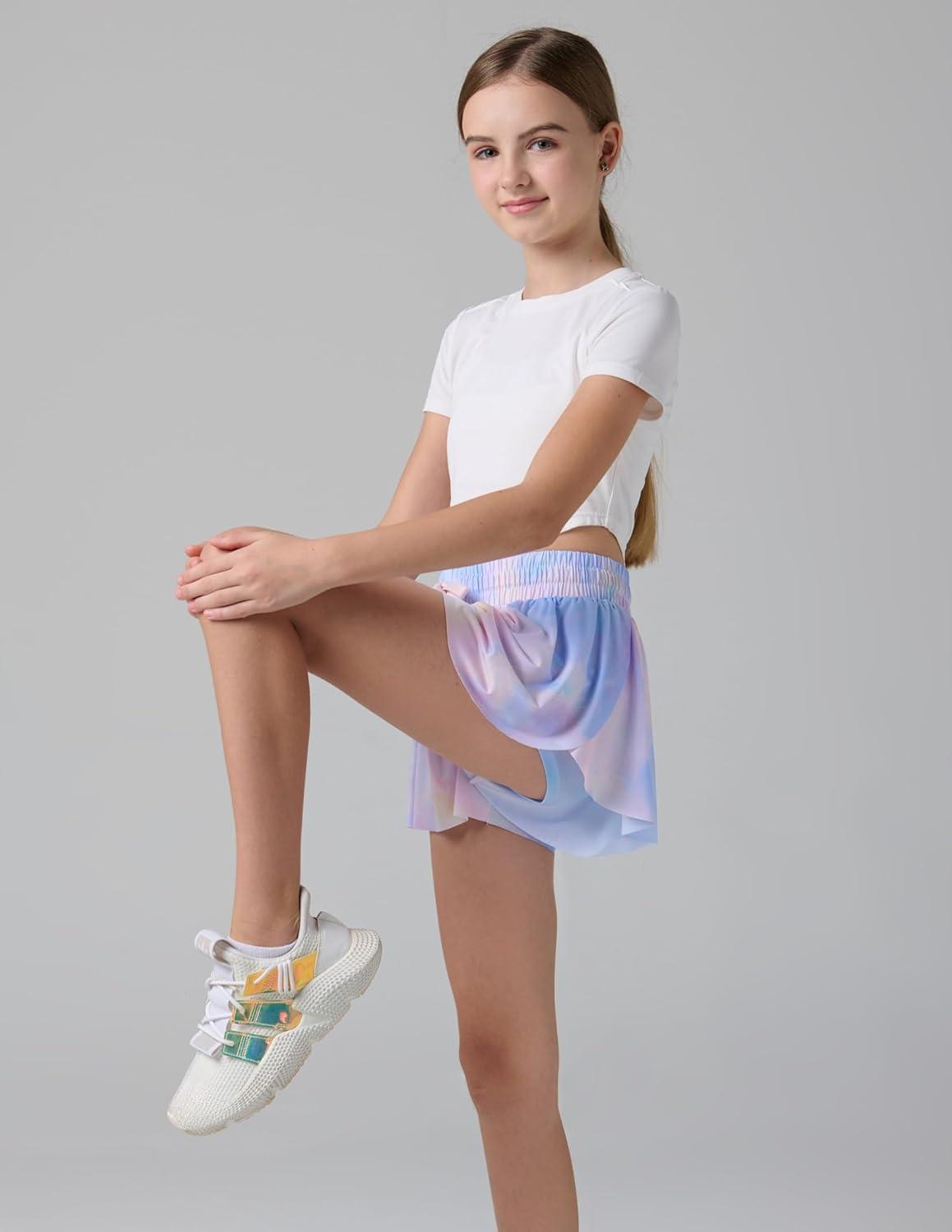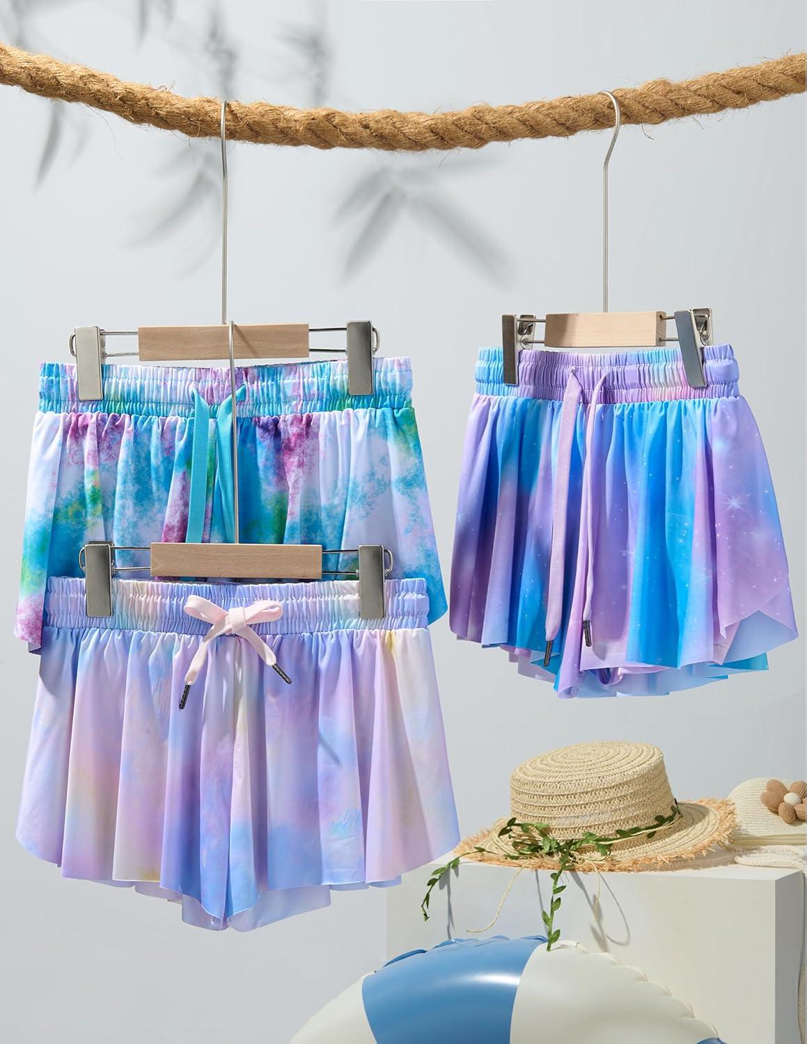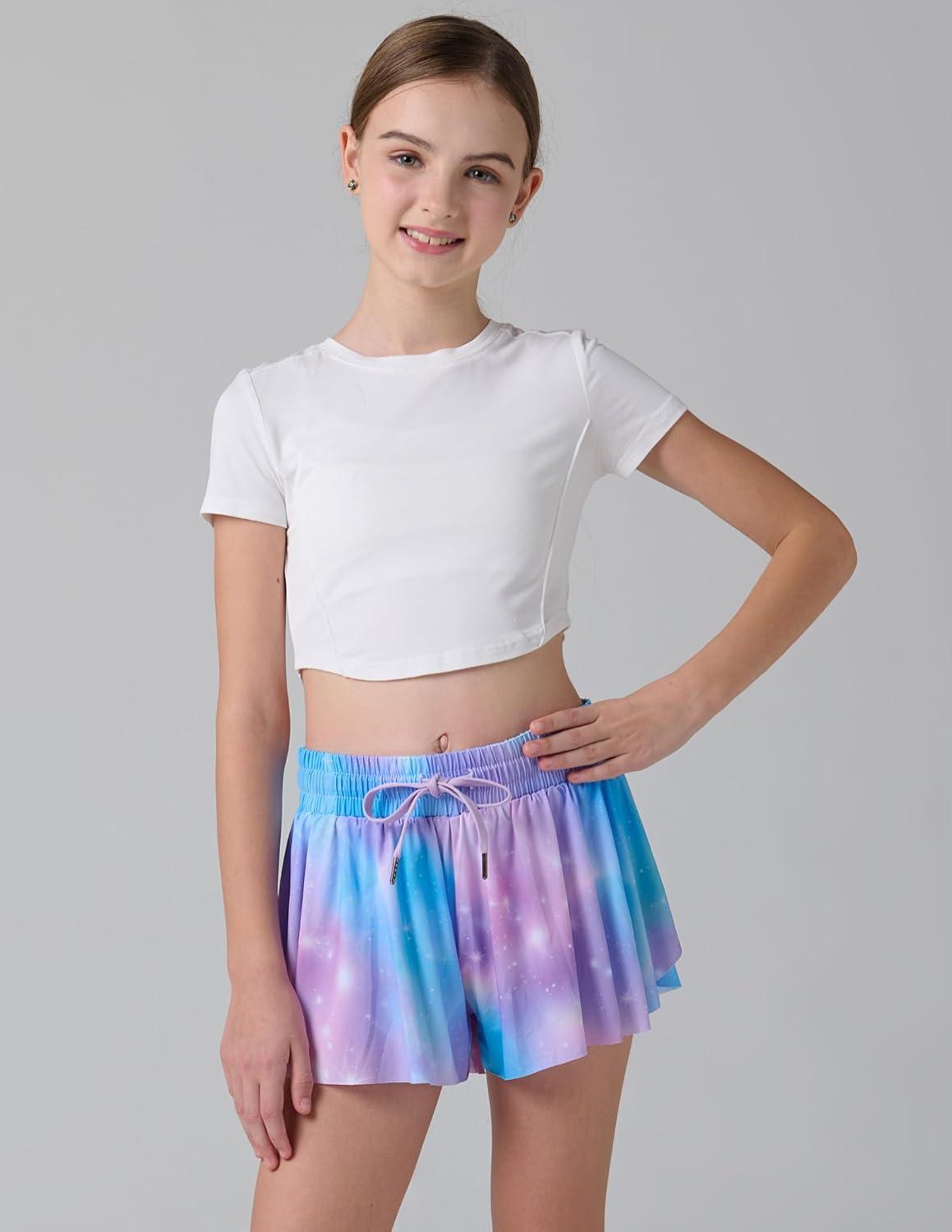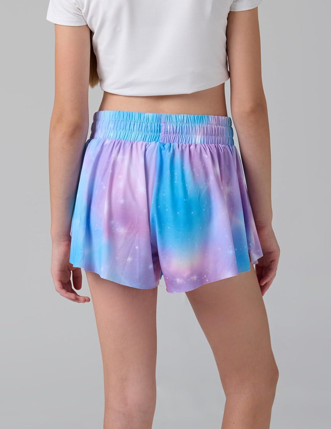 3 Pack Girls Flowy Shorts with Spandex Liner 2-in-1 Youth Butterfly Skirts for Fitness, Running, Sports(Cosmic Prints)