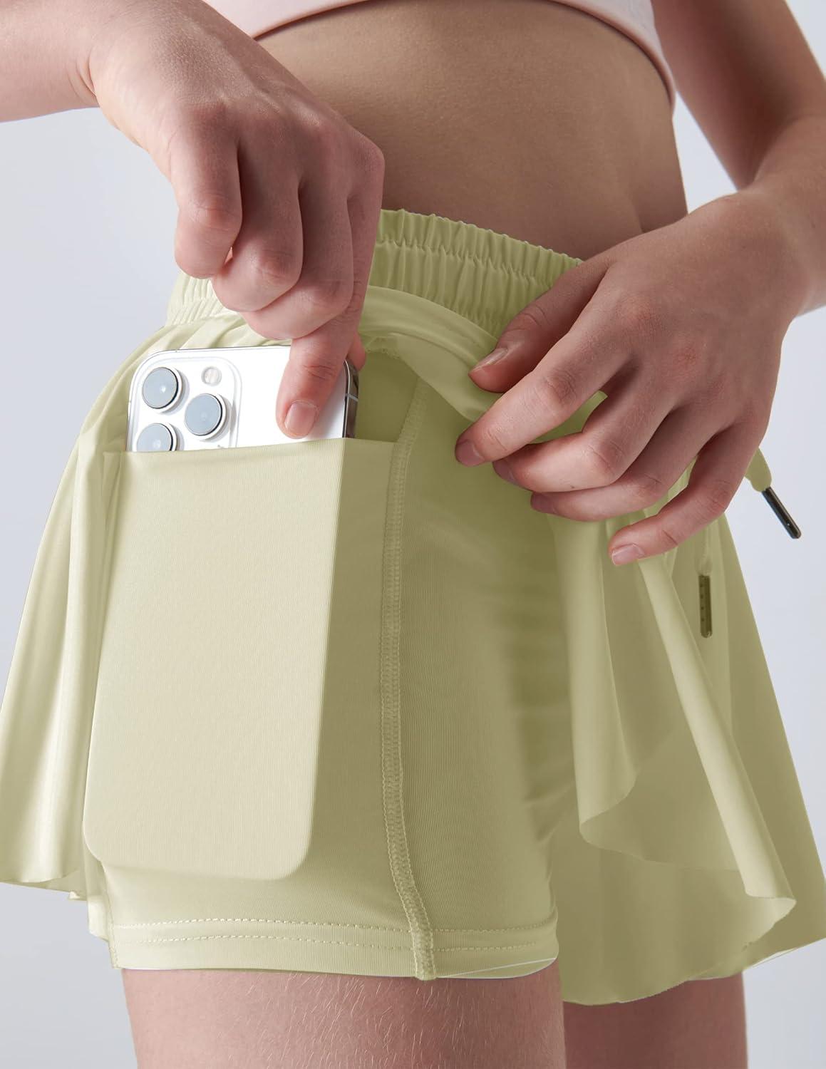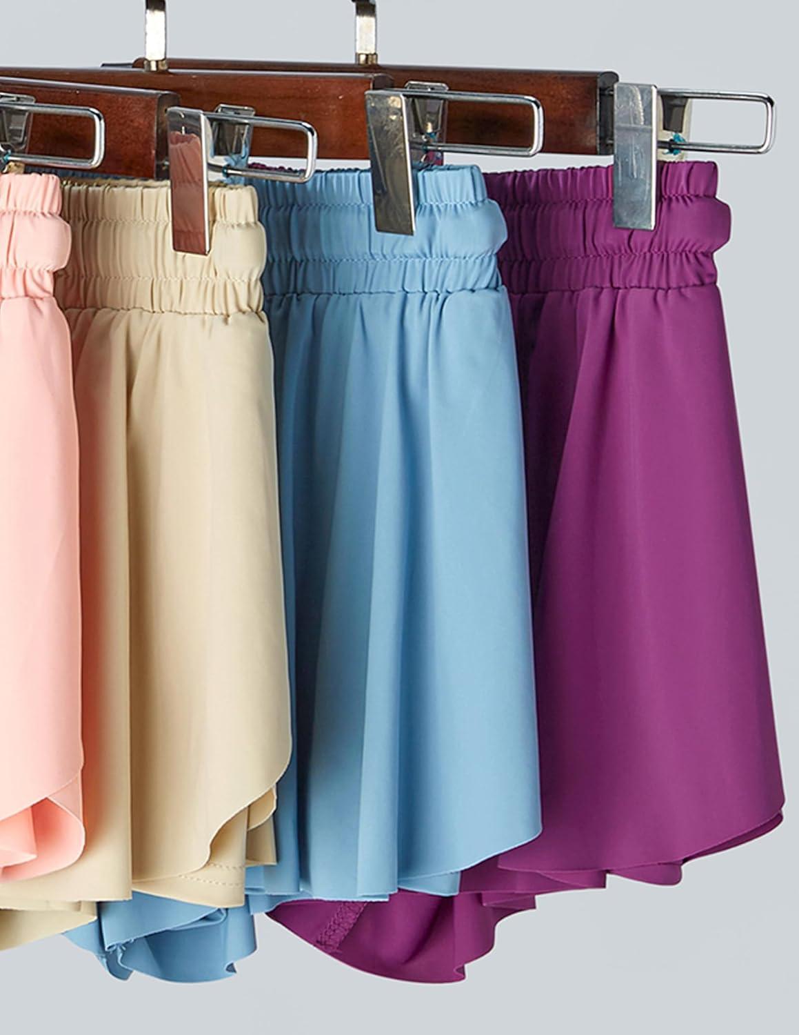 3 Pack Girls Flowy Shorts with Spandex Liner 2-in-1 Youth Butterfly Skirts for Fitness, Running, Sports(Purple Wine/Yellow Pear/Dusk Blue)
