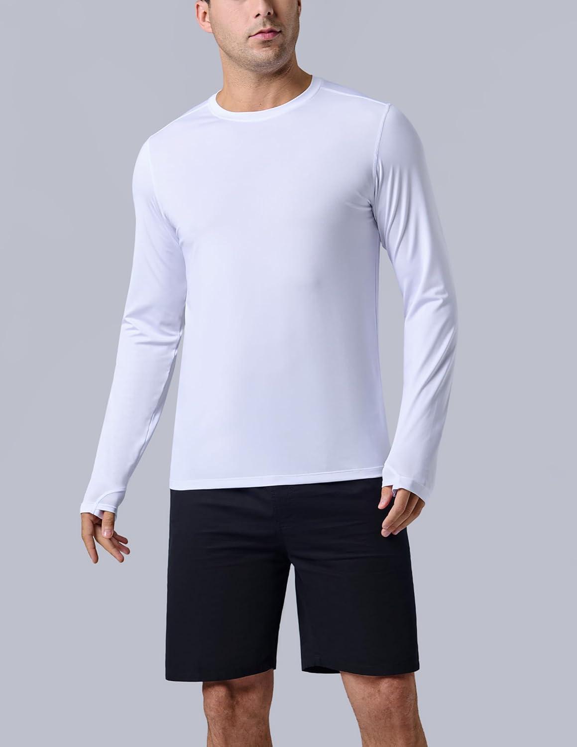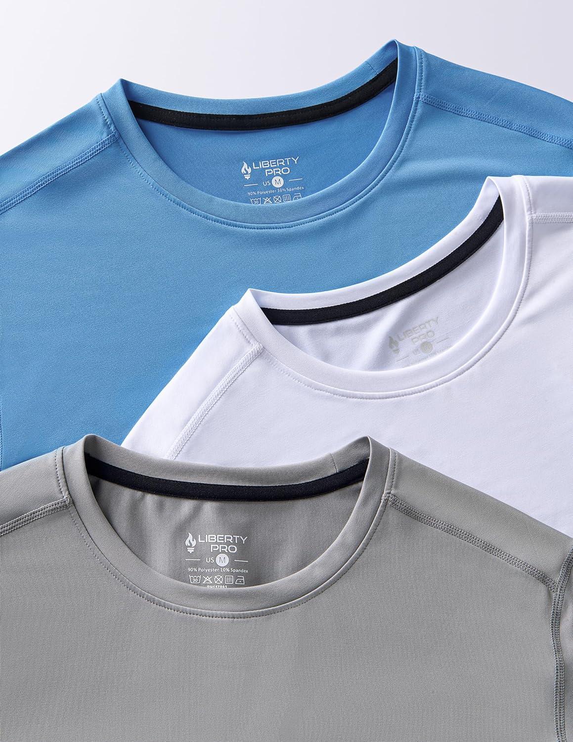 3 Pack: Men’s Dry Fit Long Sleeve T Shirts, Lightweight Athletic Performance Tops with Thumb Holes Hiking(Blue/Gray/White)