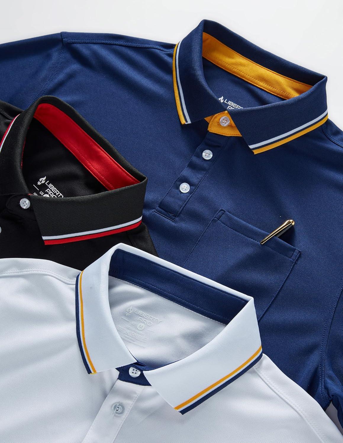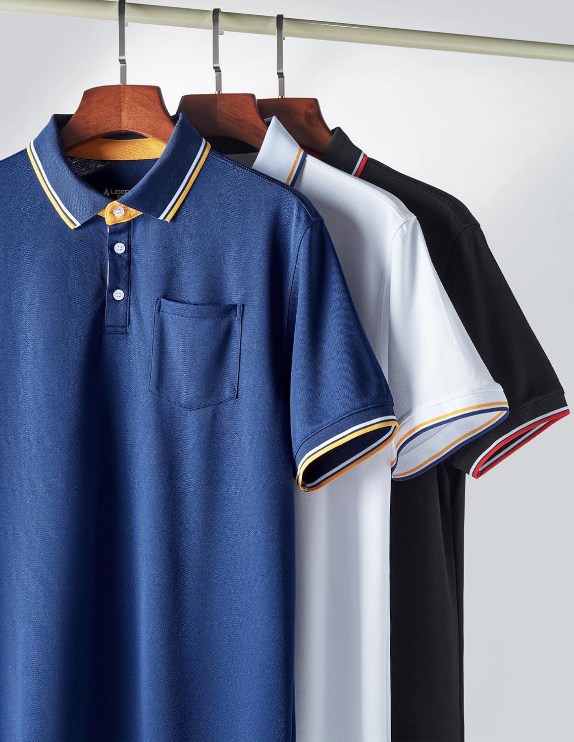3-Pack Mens Golf Shirt Performance Sport Short Sleeve Moisture Wicking Dry Fit Golf Polo Active Shirts for Men(Midnight Navy/White/Black)