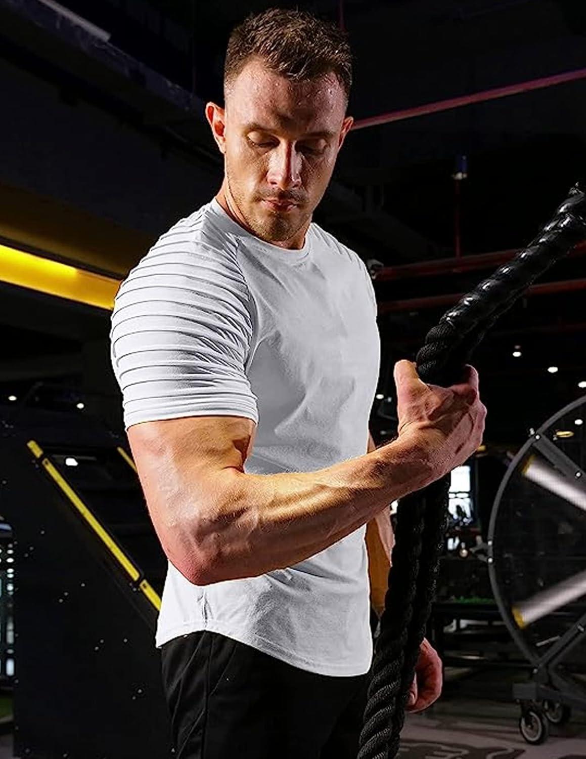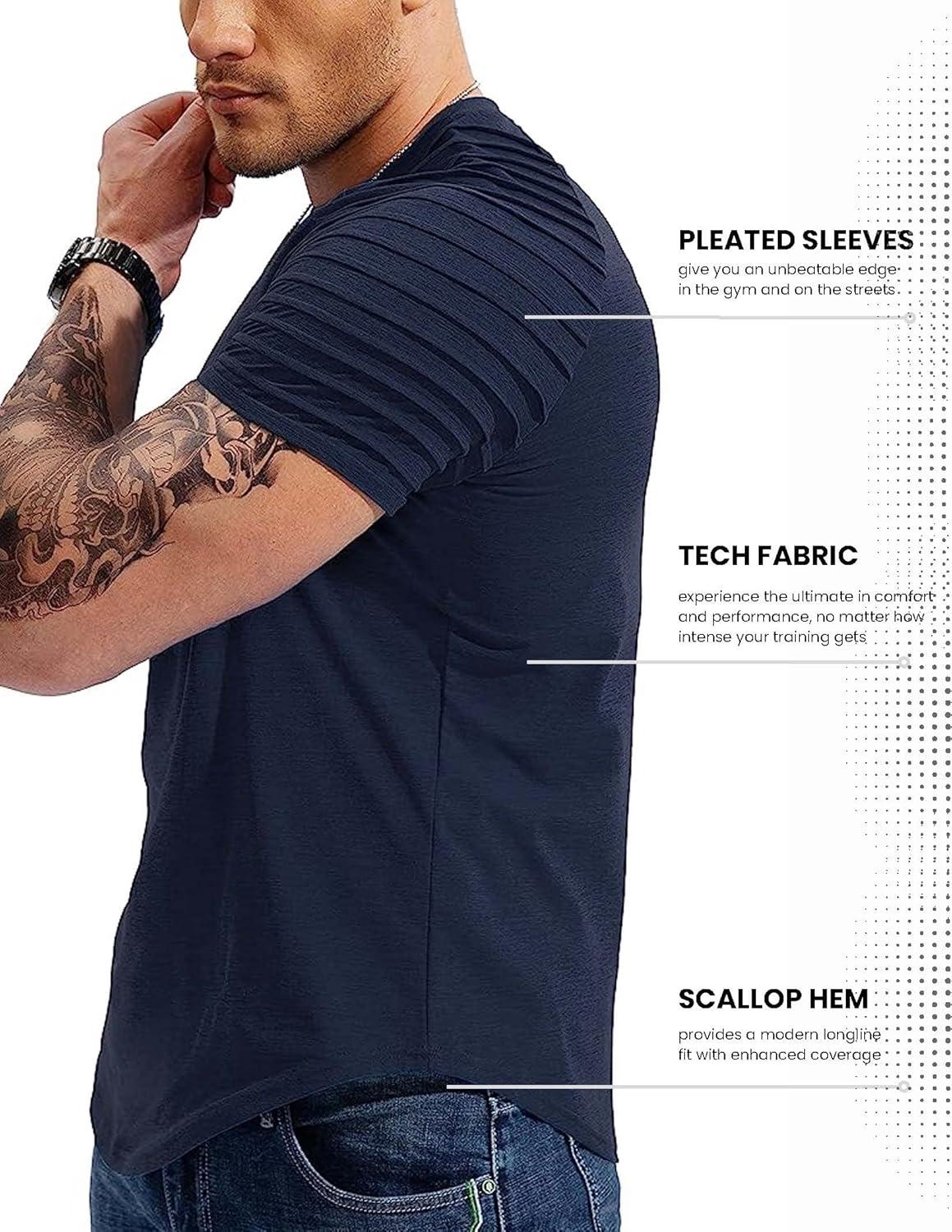 3 Pack Men’s Hispter Longline T-Shirts with Pleated Sleeves, Athletic Raglan Workout Gym Tees Bodybuilding Tops(Black/Navy/Gray)