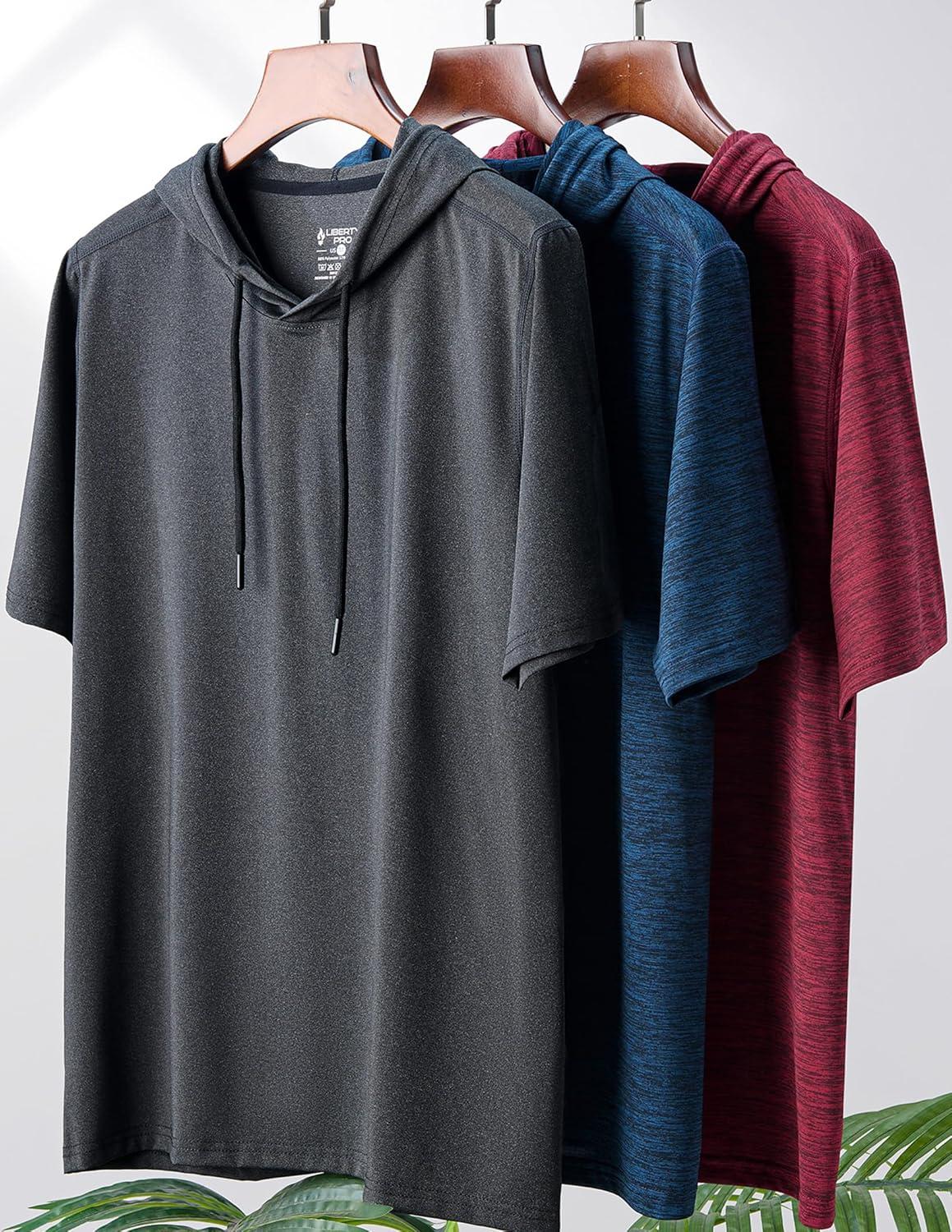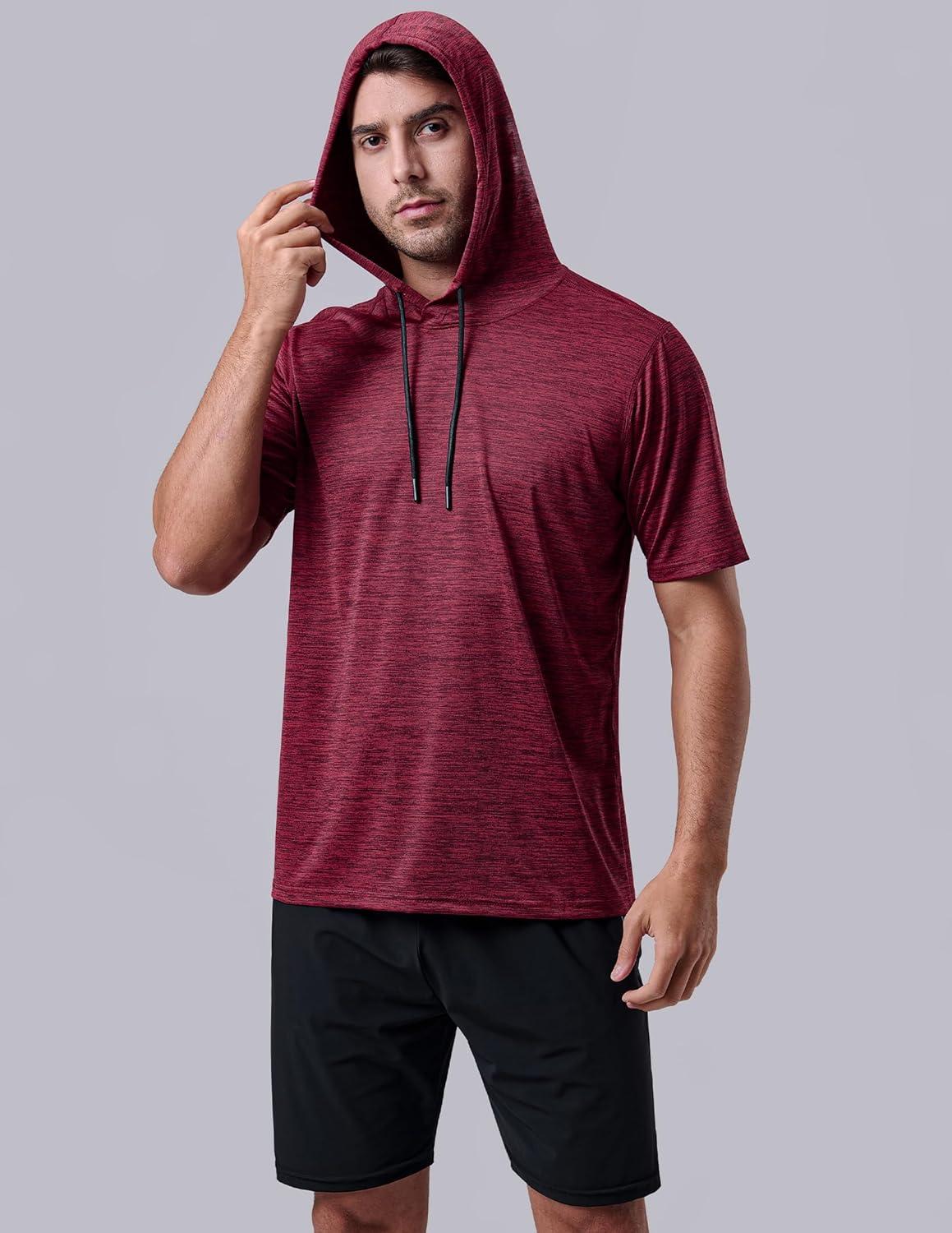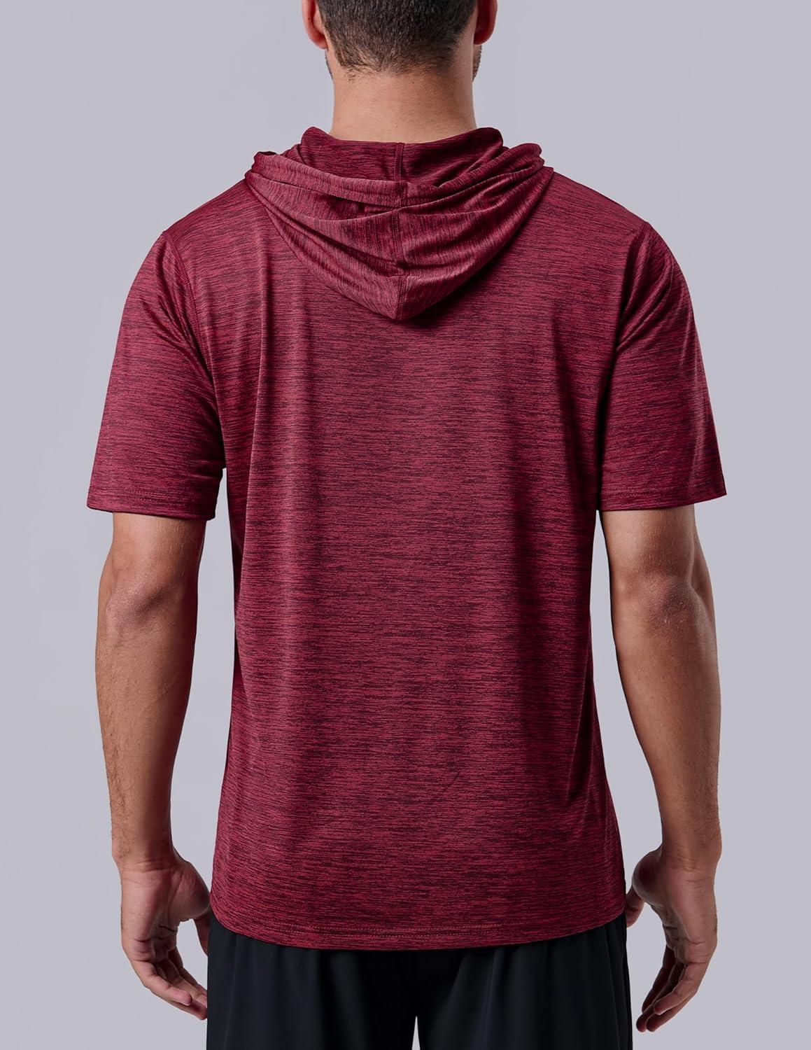 3 Pack: Men’s Lightweight Short Sleeve Workout Hoodies, Athletic Dry Fit Hooded T Shirts for Gym Running(Red/Navy/Charcoal)