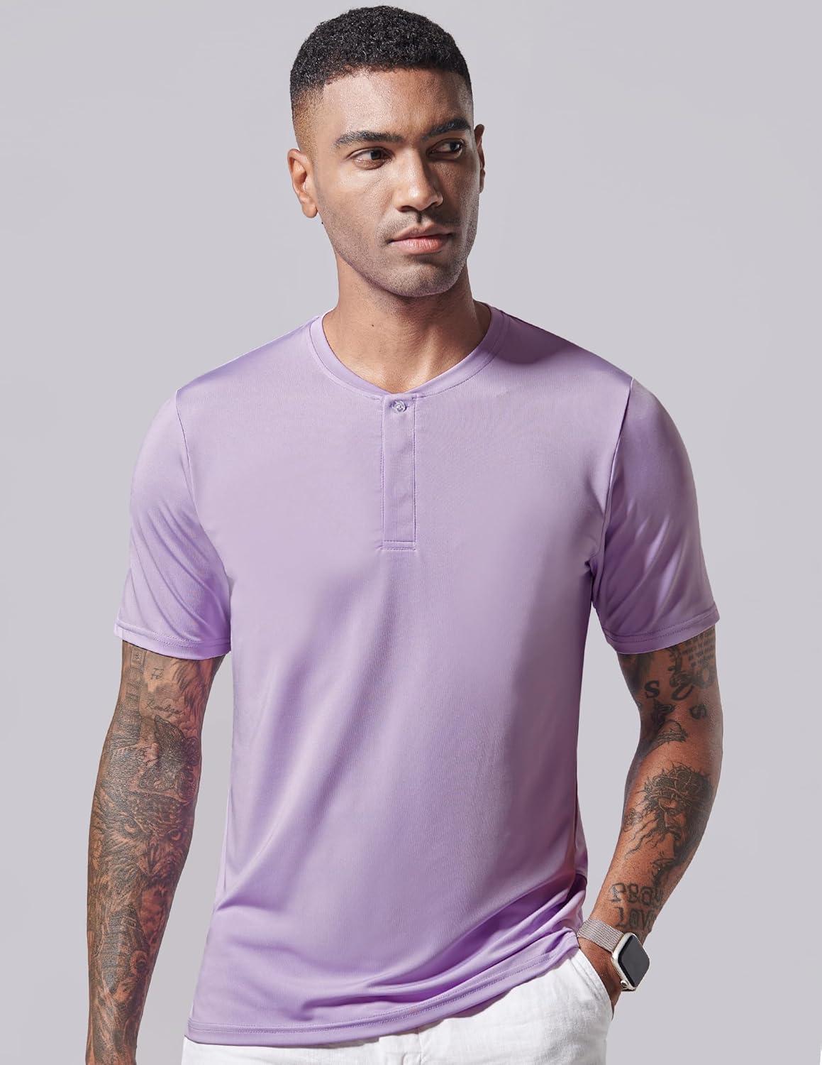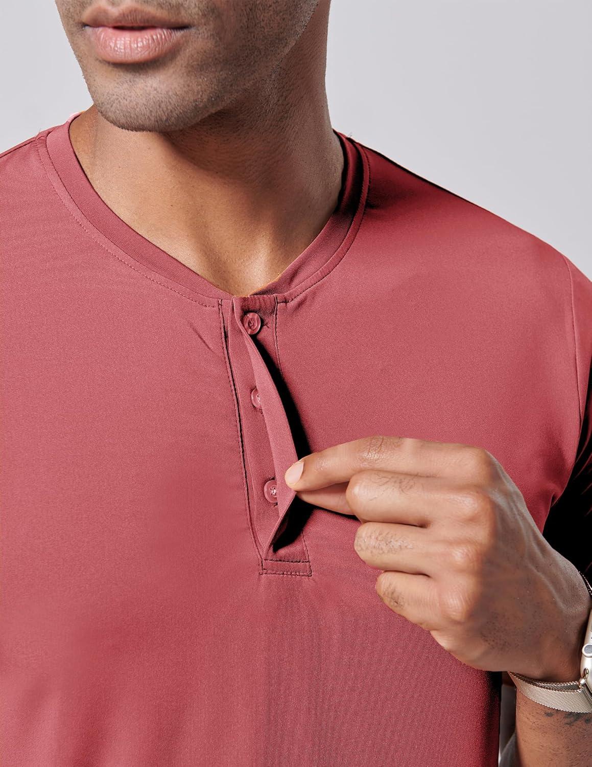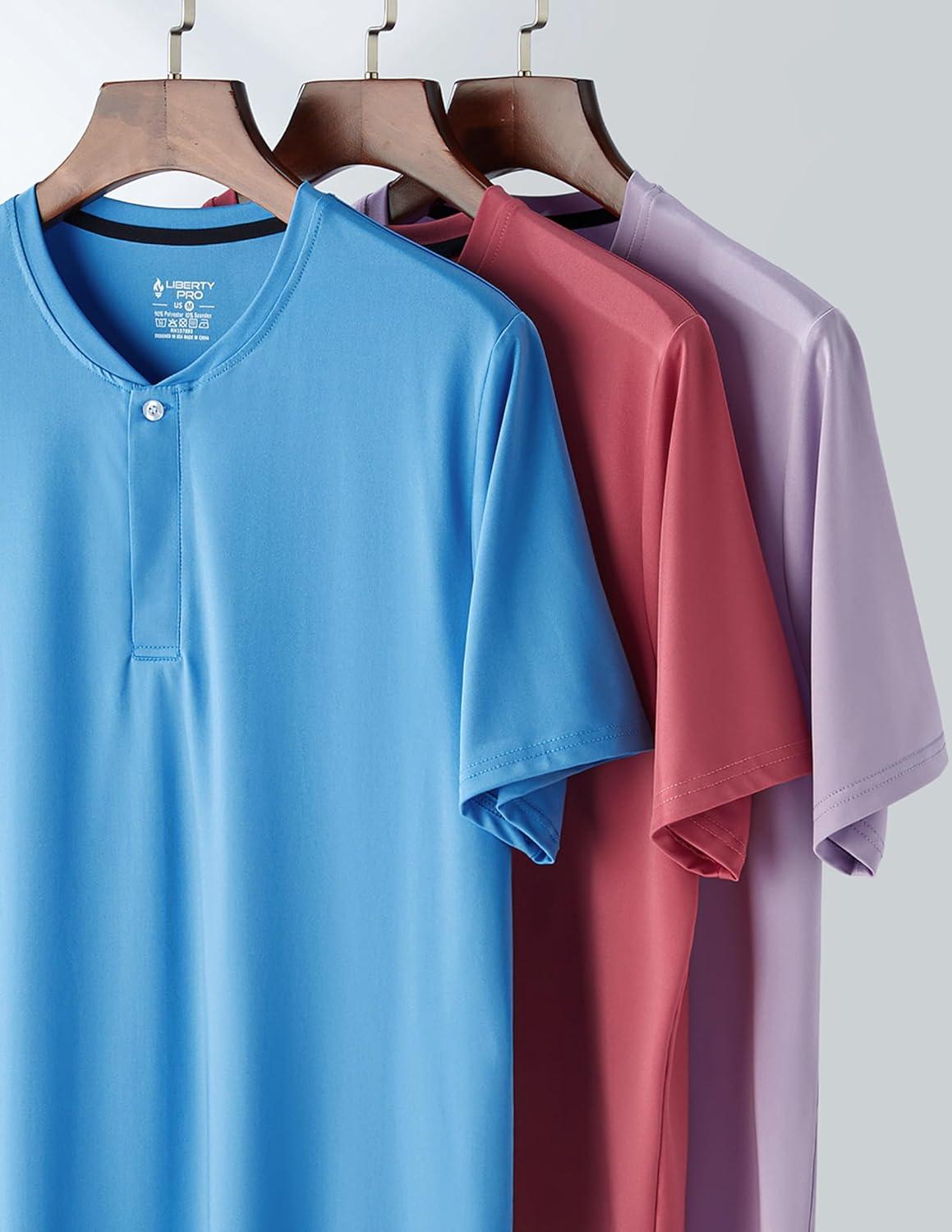 3 Pack: Mens Polo Shirts, Business Casual Golf Henley Work Shirts for Men, Collarless Short Sleeve Stylish Athletic Tshirts(Blue/Washed Red/Light Lavender)