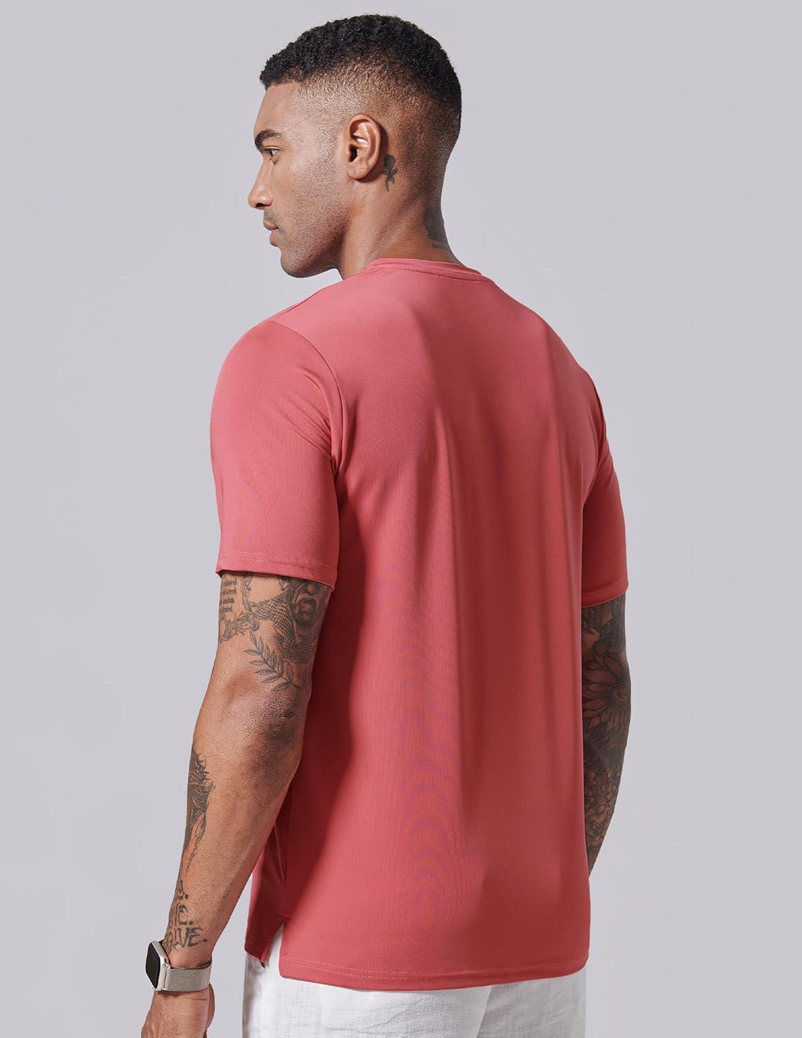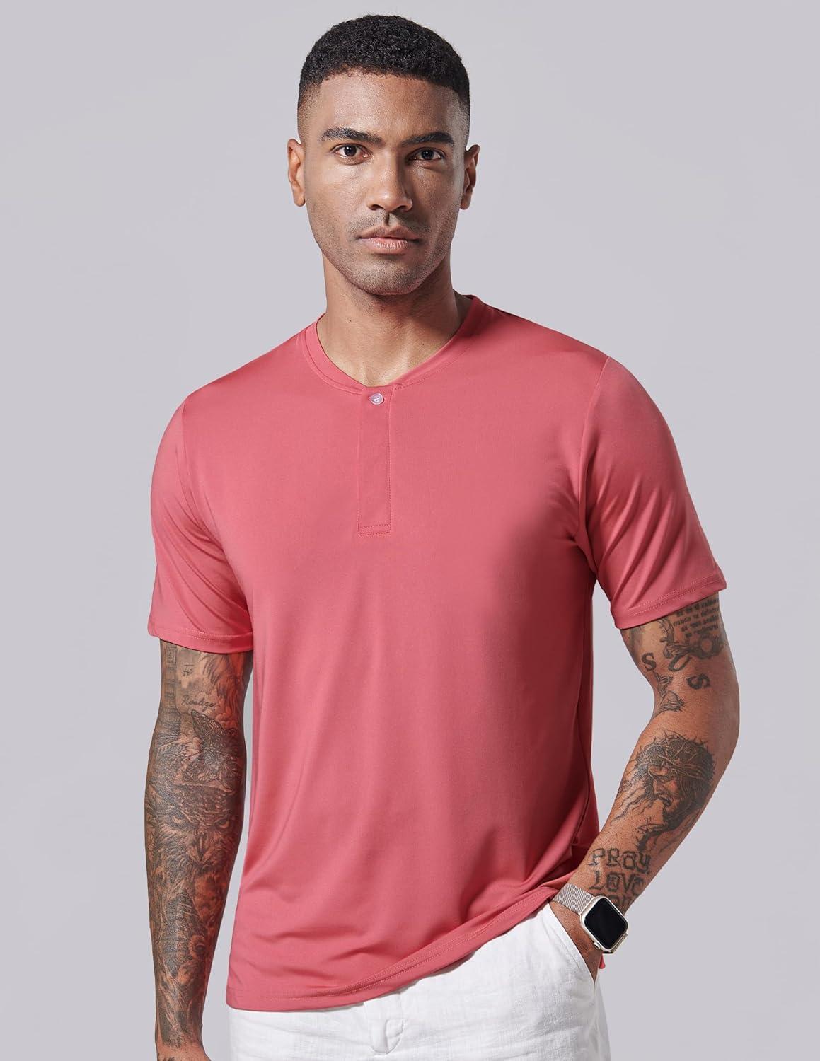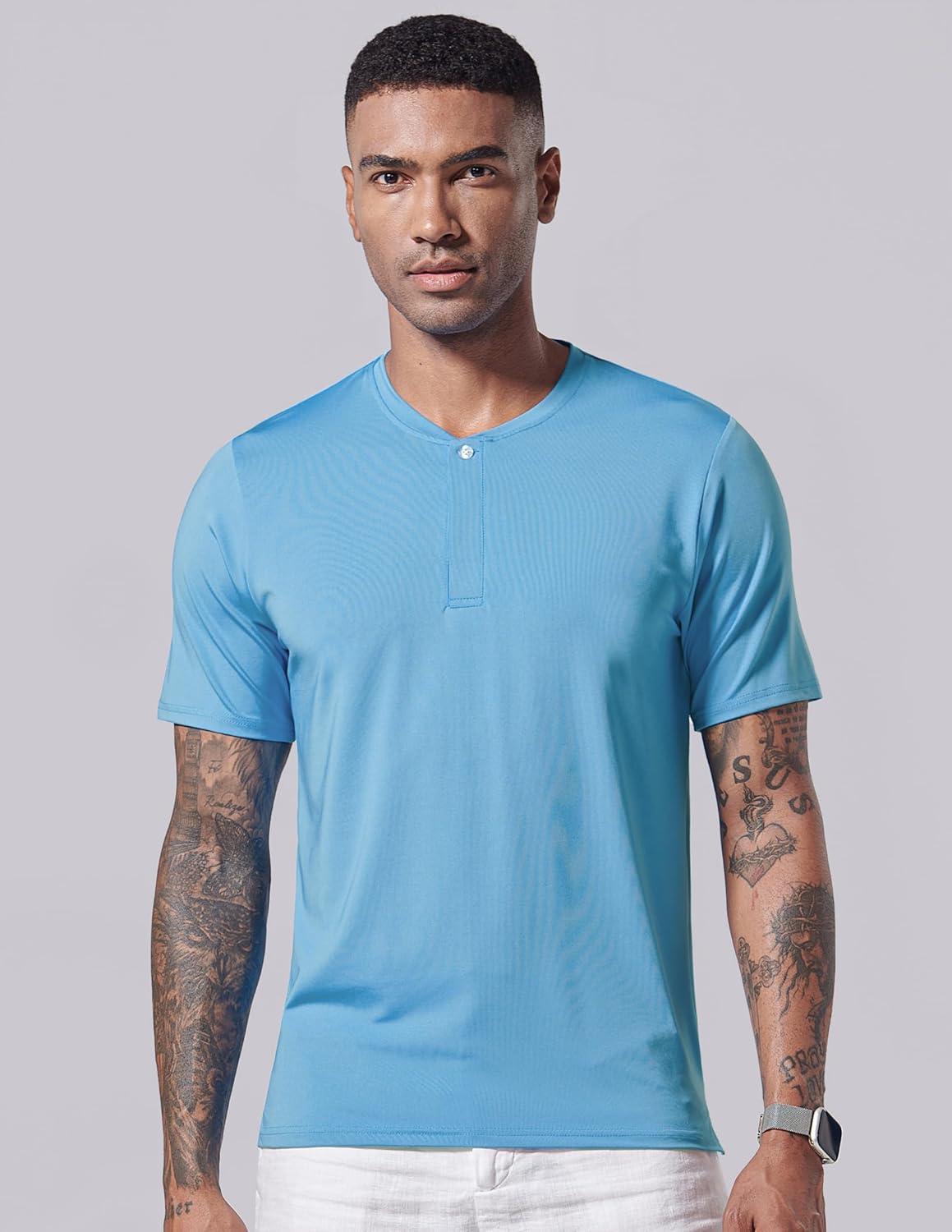 3 Pack: Mens Polo Shirts, Business Casual Golf Henley Work Shirts for Men, Collarless Short Sleeve Stylish Athletic Tshirts(Blue/Washed Red/Light Lavender)