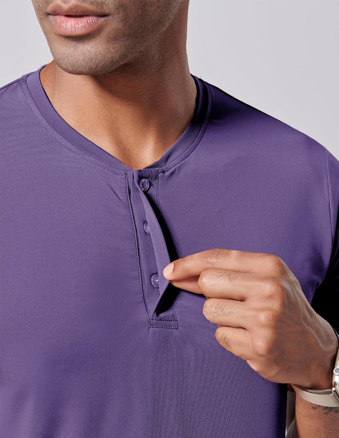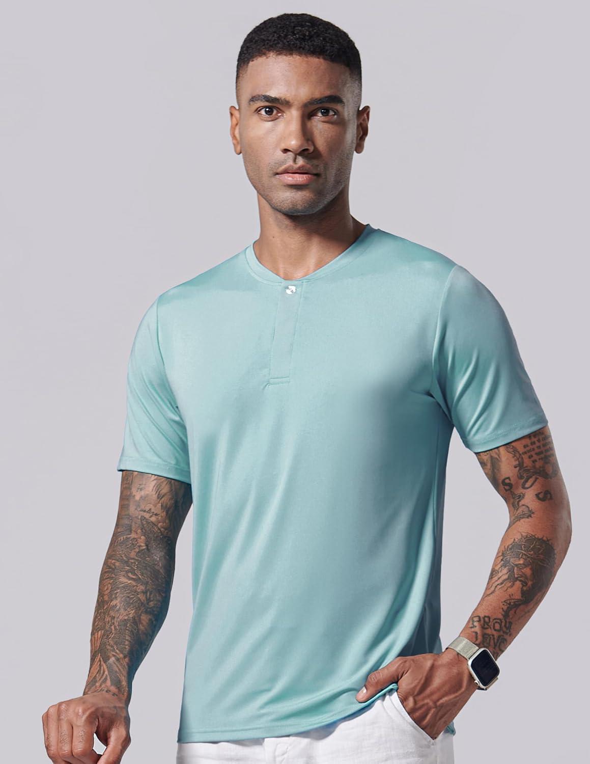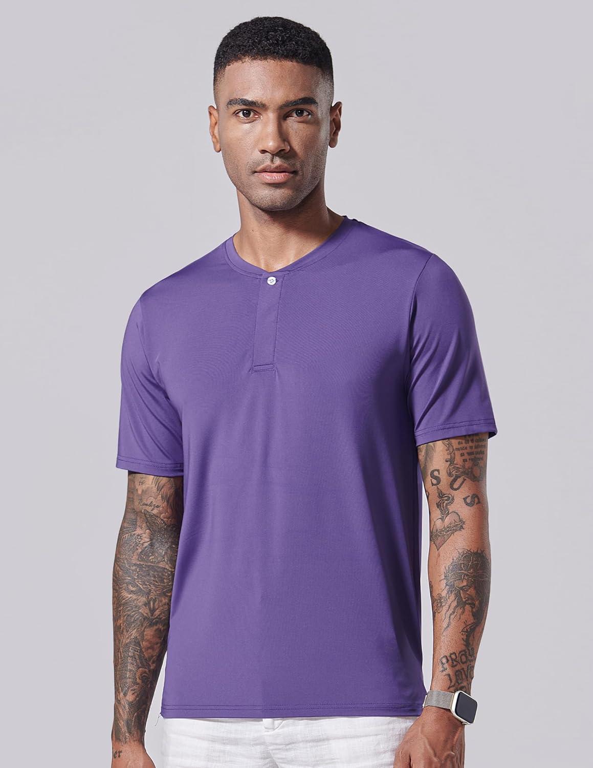 3 Pack: Mens Polo Shirts, Business Casual Golf Henley Work Shirts for Men, Collarless Short Sleeve Stylish Athletic Tshirts(Emerald/Violet/Aqua Haze)