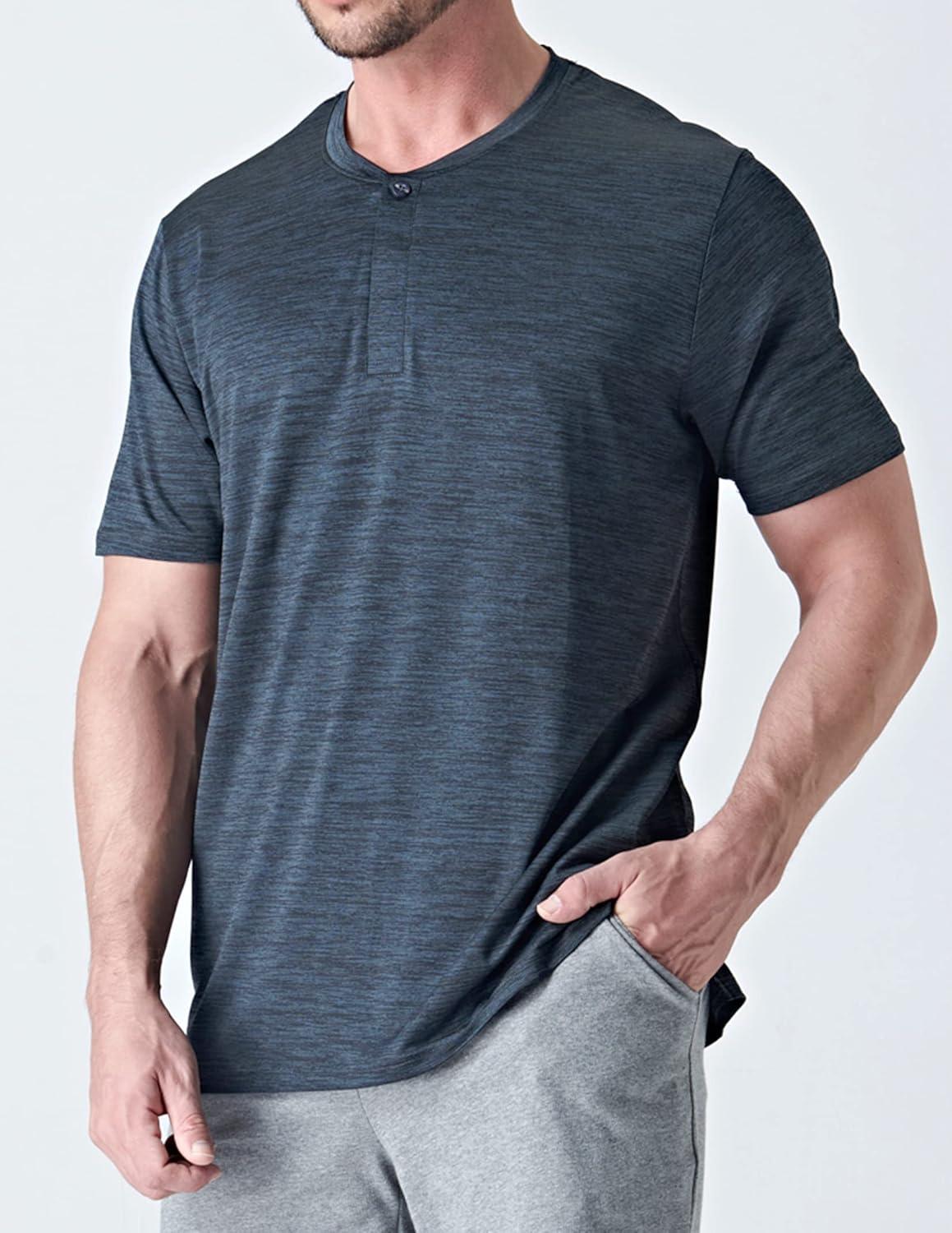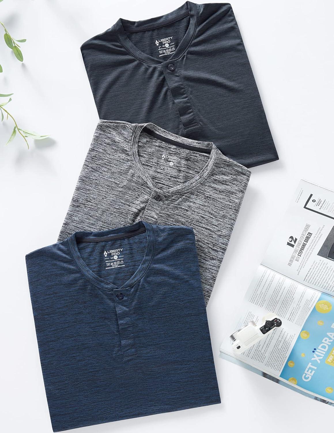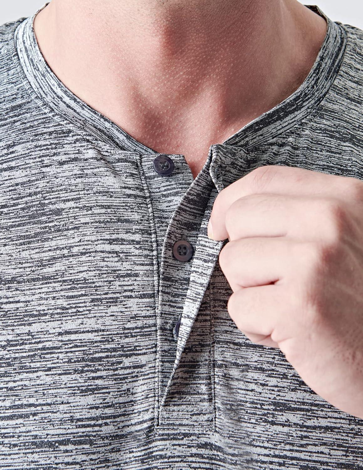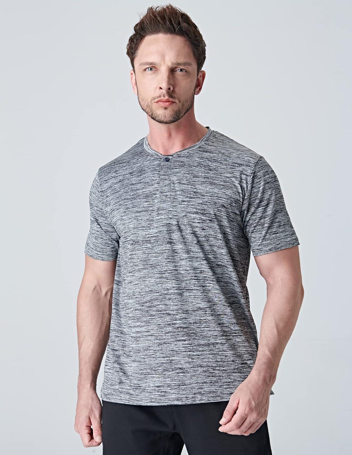 3 Pack: Mens Polo Shirts, Business Casual Golf Henley Work Shirts for Men, Collarless Short Sleeve Stylish Athletic Tshirts(Heather Gray/Navy/Black)