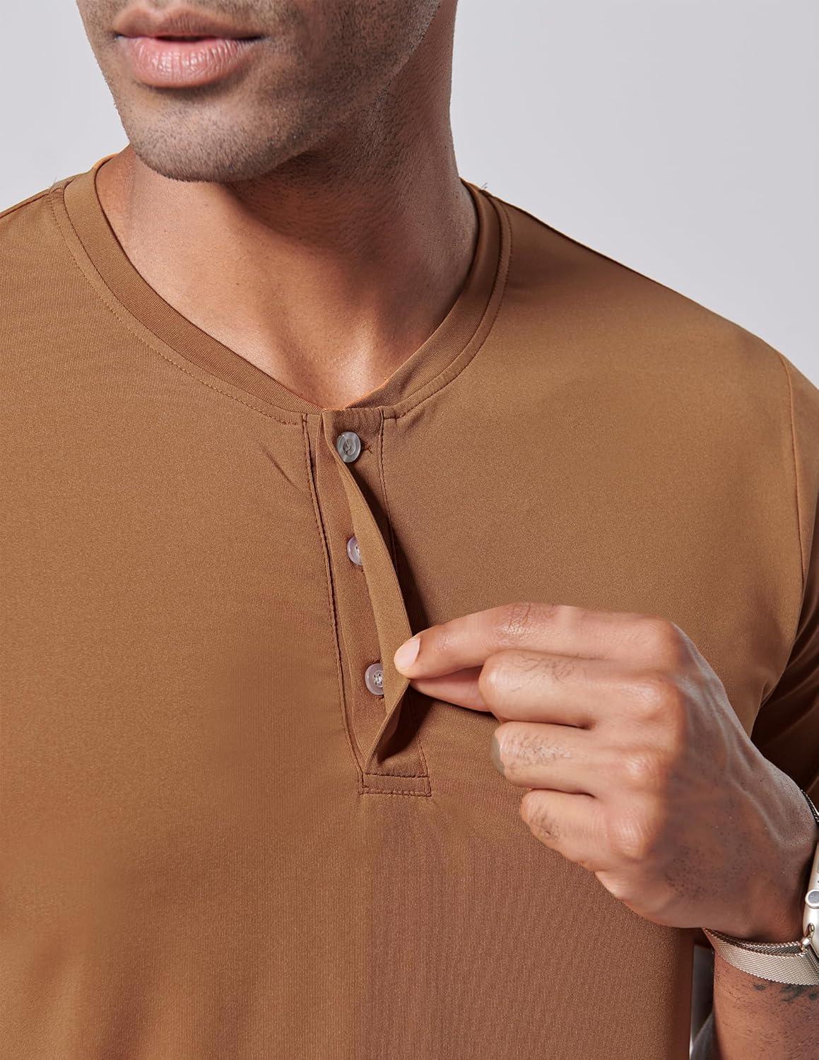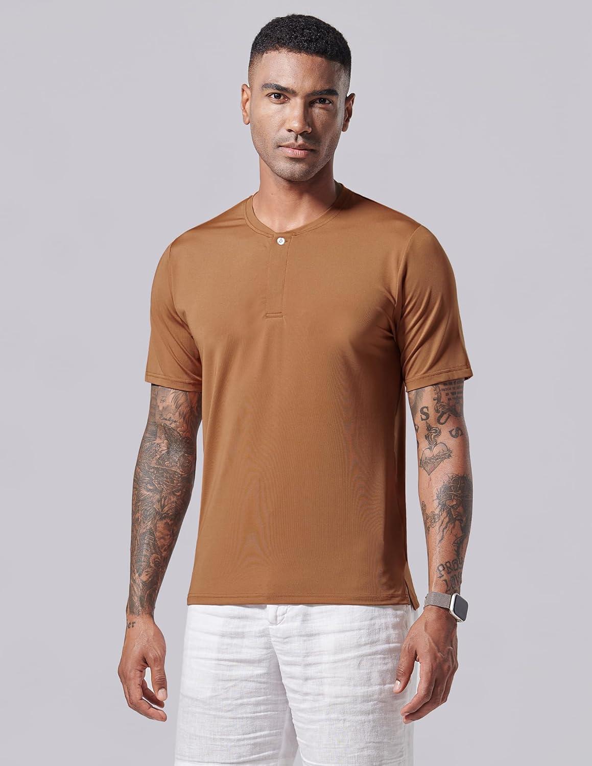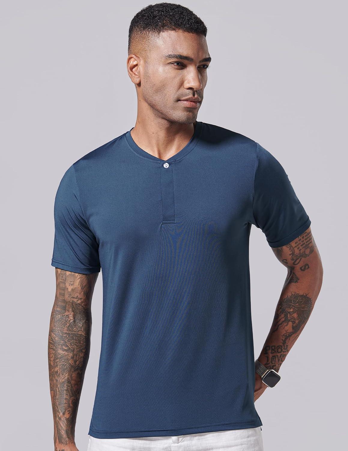 3 Pack: Mens Polo Shirts, Business Casual Golf Henley Work Shirts for Men, Collarless Short Sleeve Stylish Athletic Tshirts(Navy/Bronze/Off White)