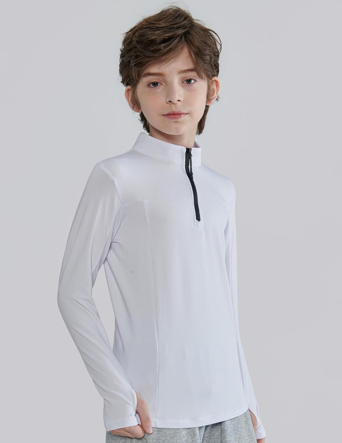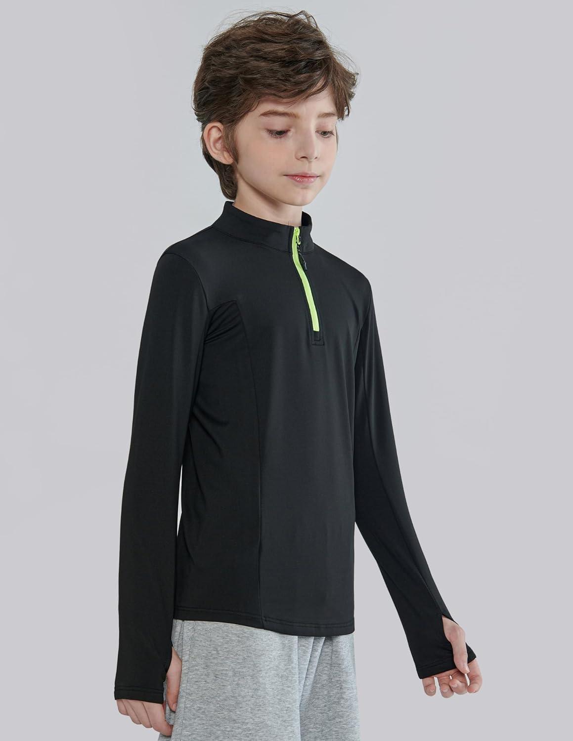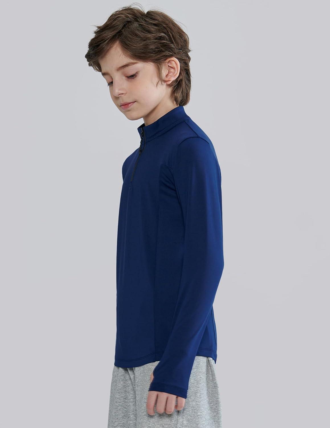 3 Pack Youth Boys Slim Fit Athletic Quarter Zip Pullover Shirts, Lightweight Long Sleeve Jackets Performance Tops(Black/White/Navy)