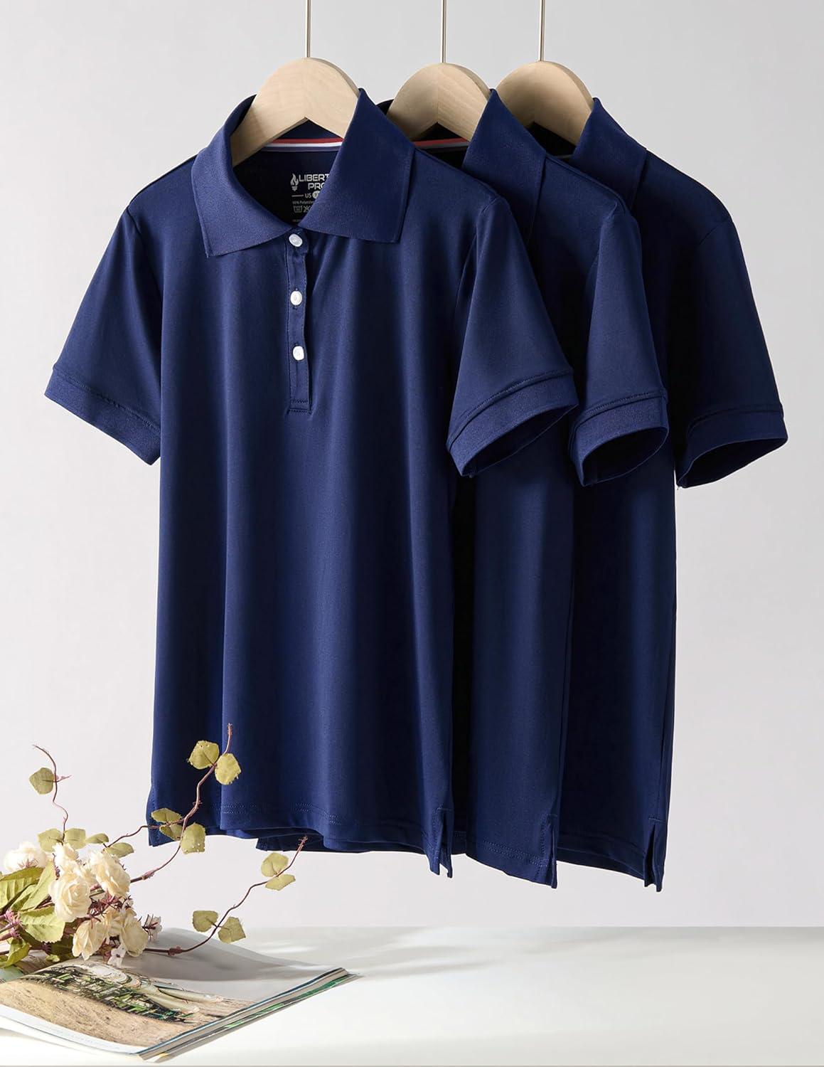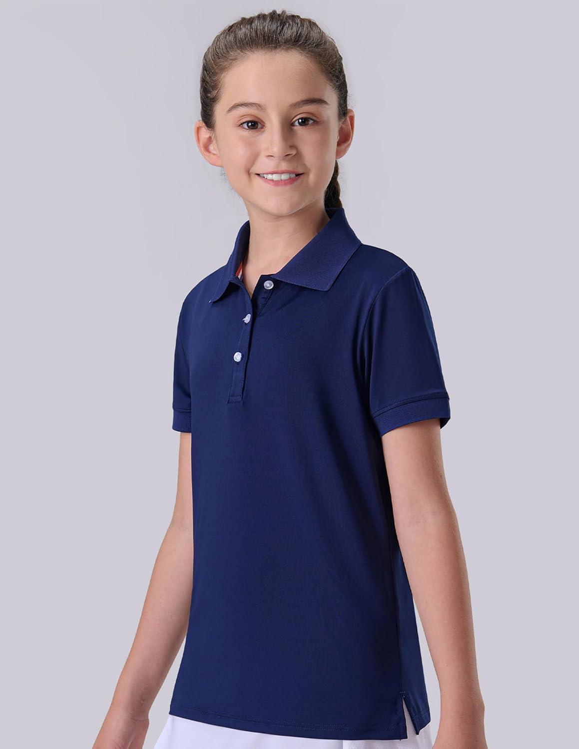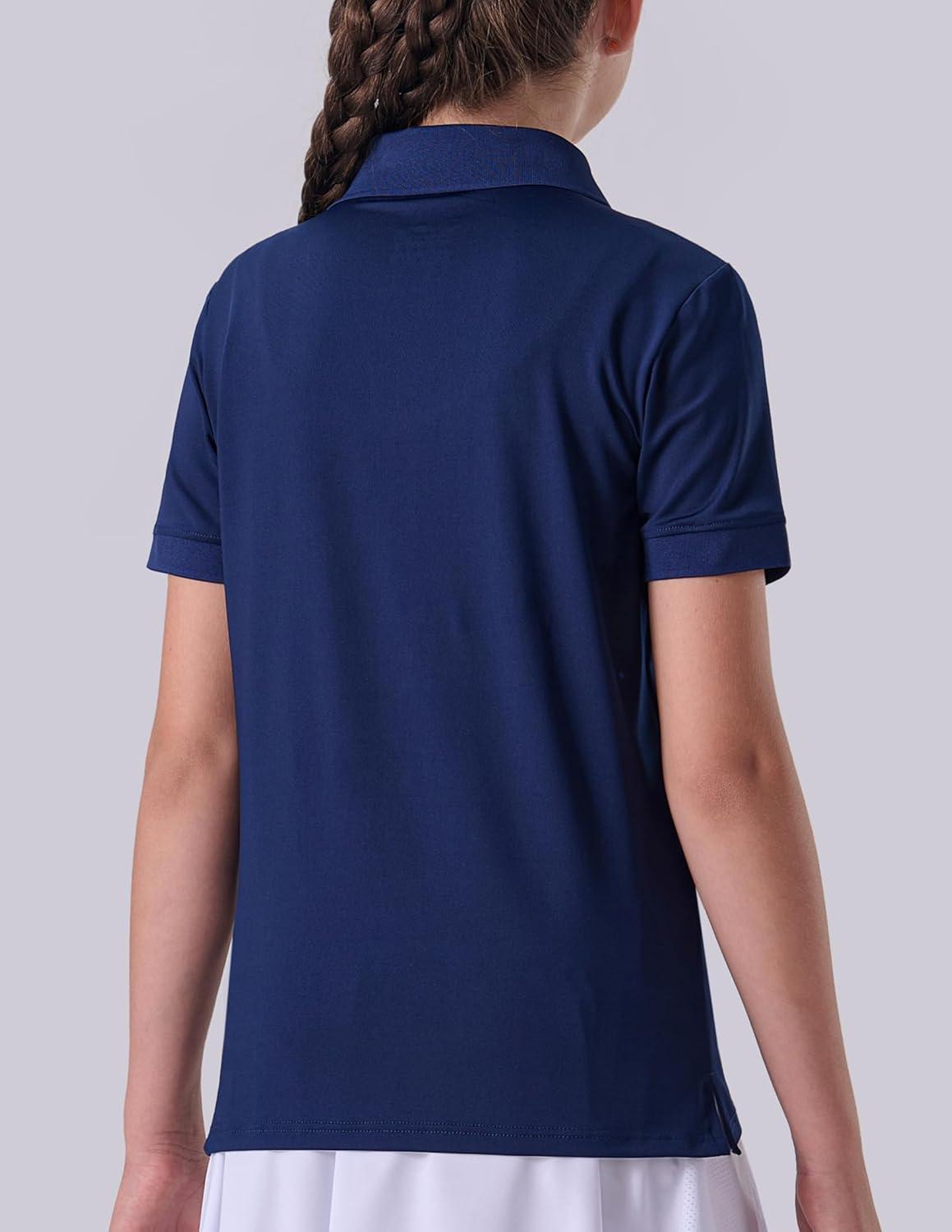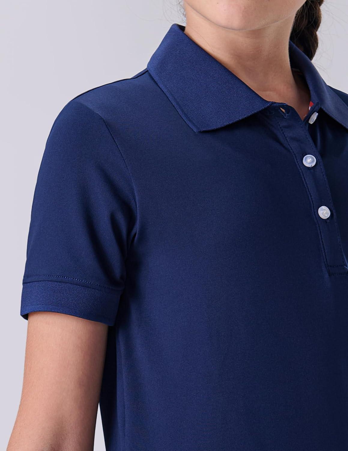 3 Pack Youth Girls’ Performance Polo Shirts, Short Sleeve Pique Collared Kids School Uniform Tops(Navy)