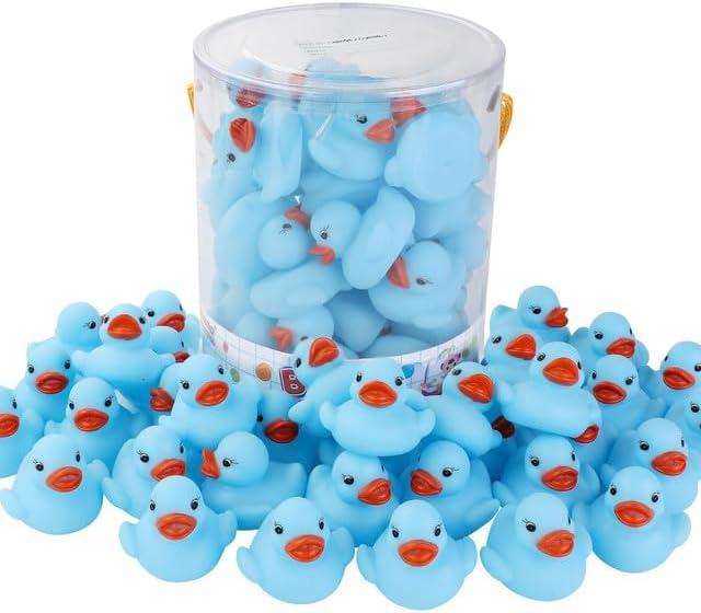 36 PCS Yellow Classic Rubber Duck Bath Toys – BPA Free Floating Duckies for Girls, Baby Shower Decorations, Bulk Party Favors, Kids Birthday Gifts (Yellow)(Blue)