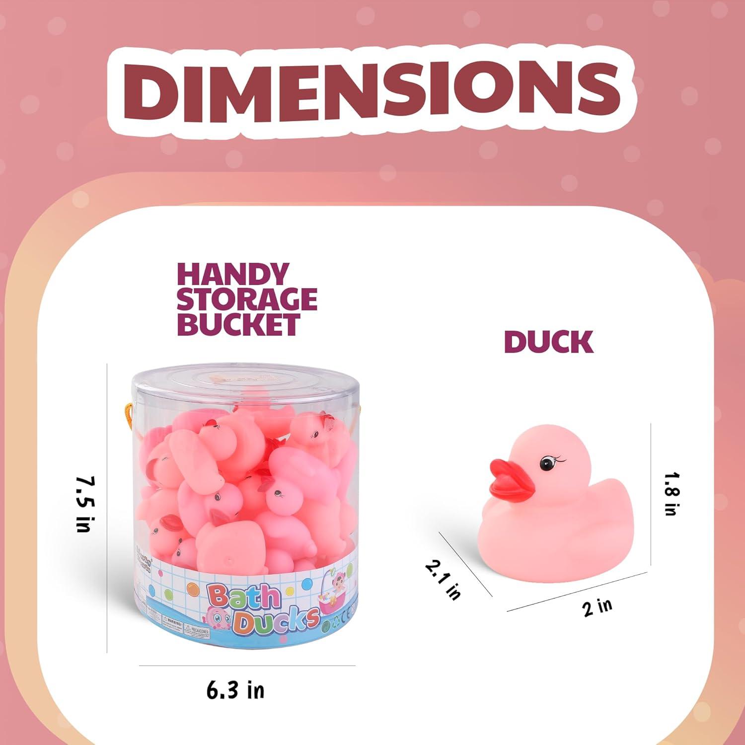 Safe Splashing: Our thirty-six pieces of pink rubber duck bath toys are free from harmful chemicals like BPA, Phthalates, and Lead, ensuring safe and squeaky-clean fun for your little one