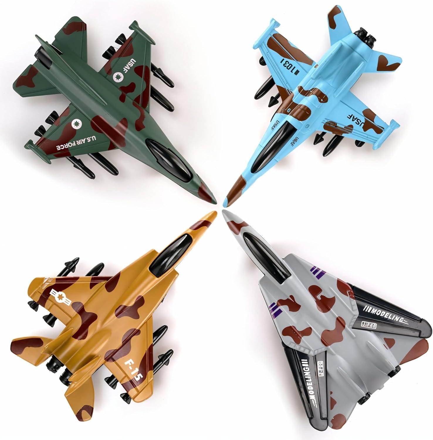 Authentic Die-Cast: Four detailed fighter jets featuring real-life design and colors, these die-cast metal toys are perfect for aviation enthusiasts, collectors, or imaginative playtime