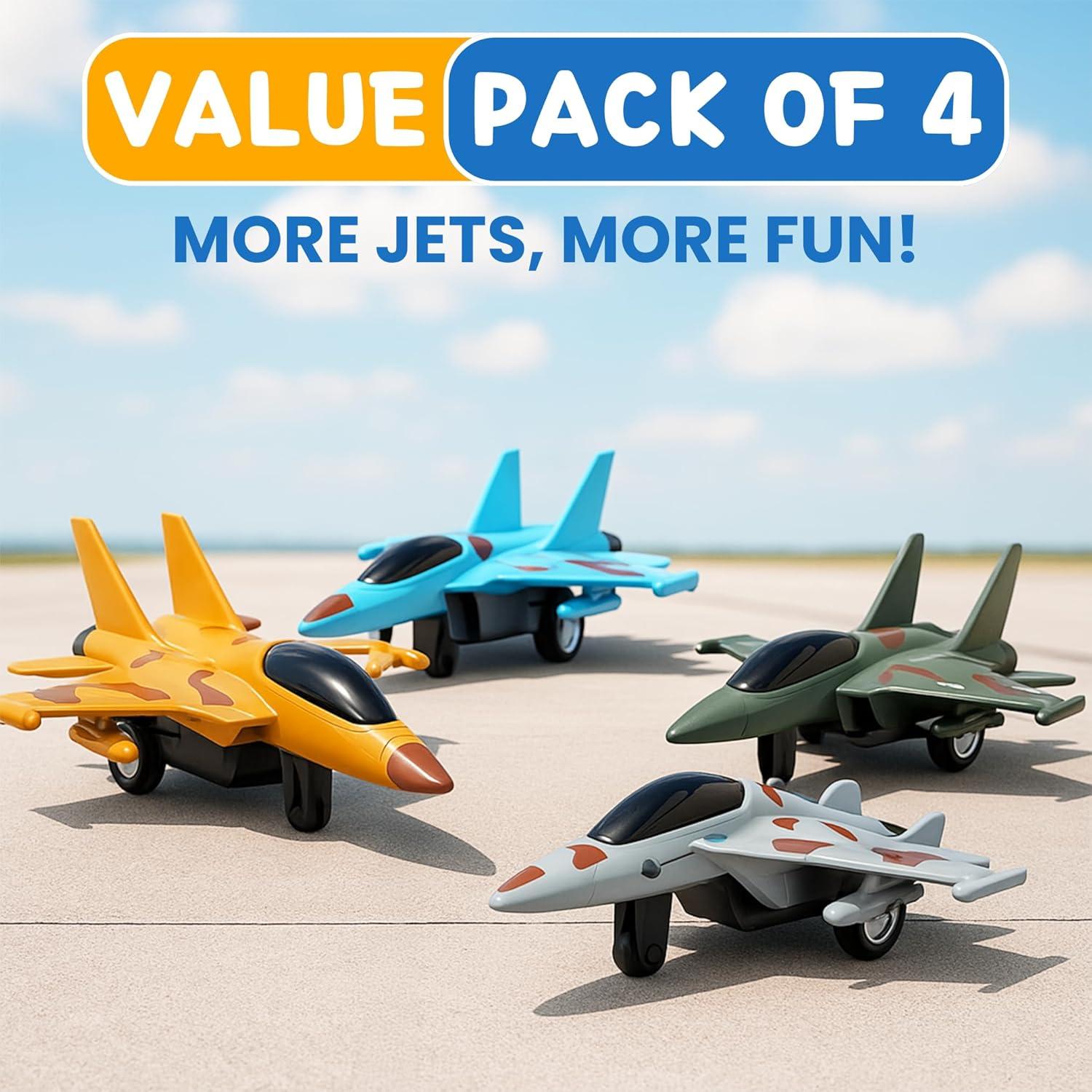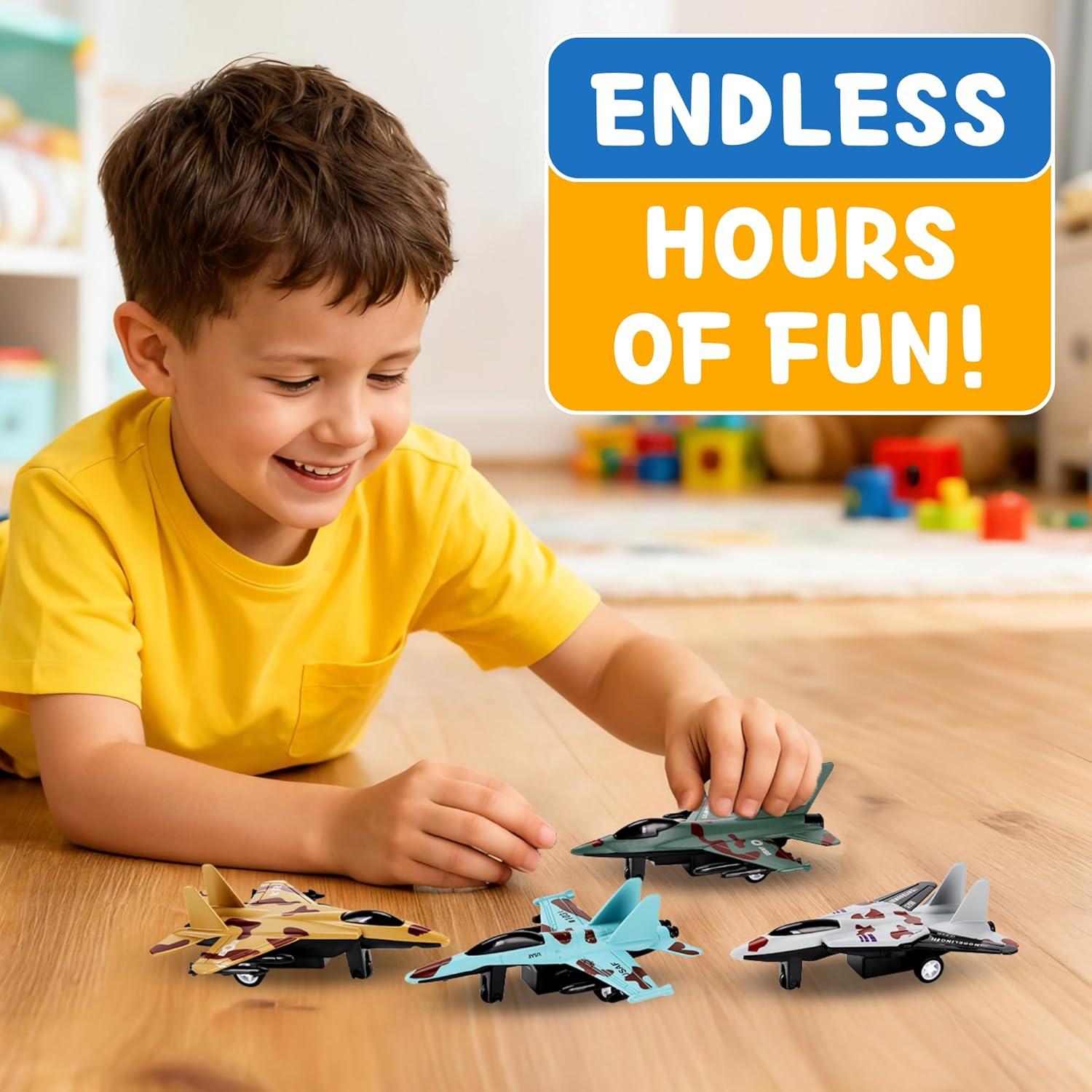 Imaginative Play: Your child's imagination will take flight with these die-cast pullback fighter jets, whether they are simulating dog fights, air shows, or missions. For kids ages three and up, these fighter jets offer endless hours of imaginative playtime