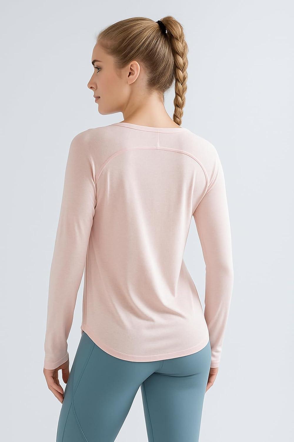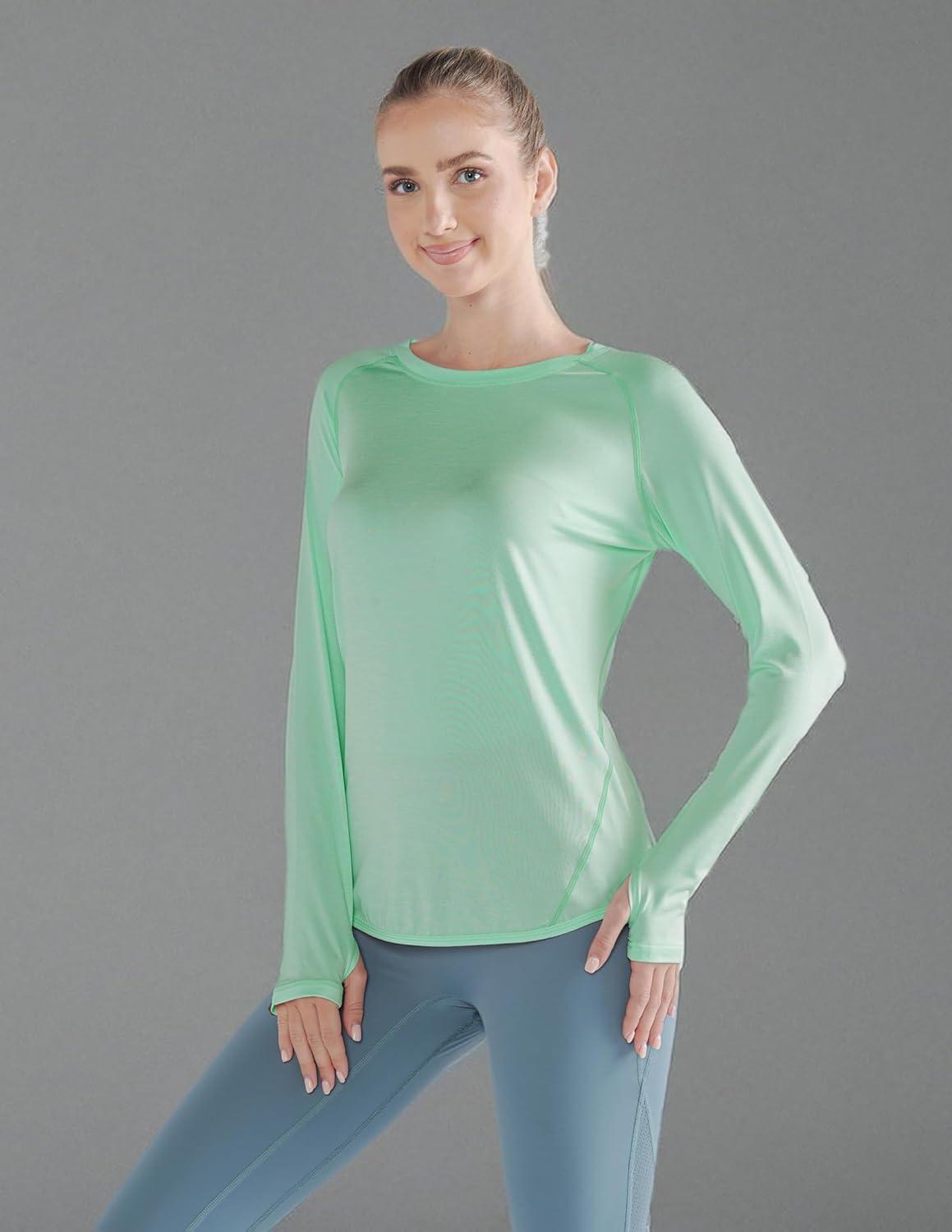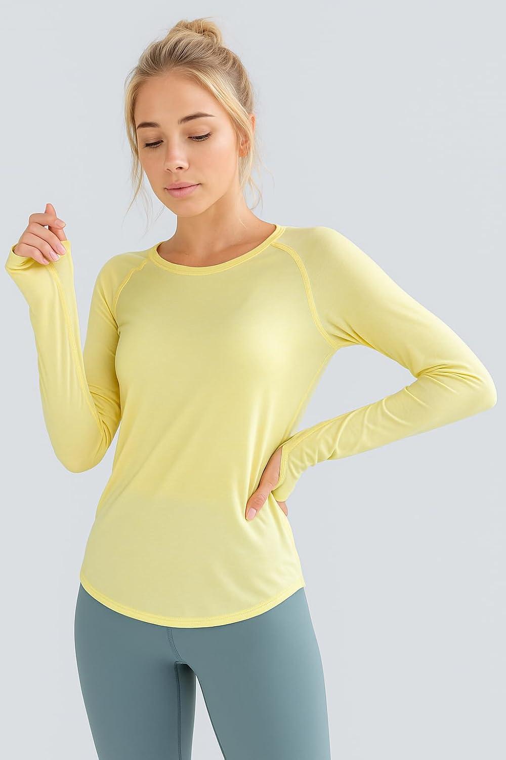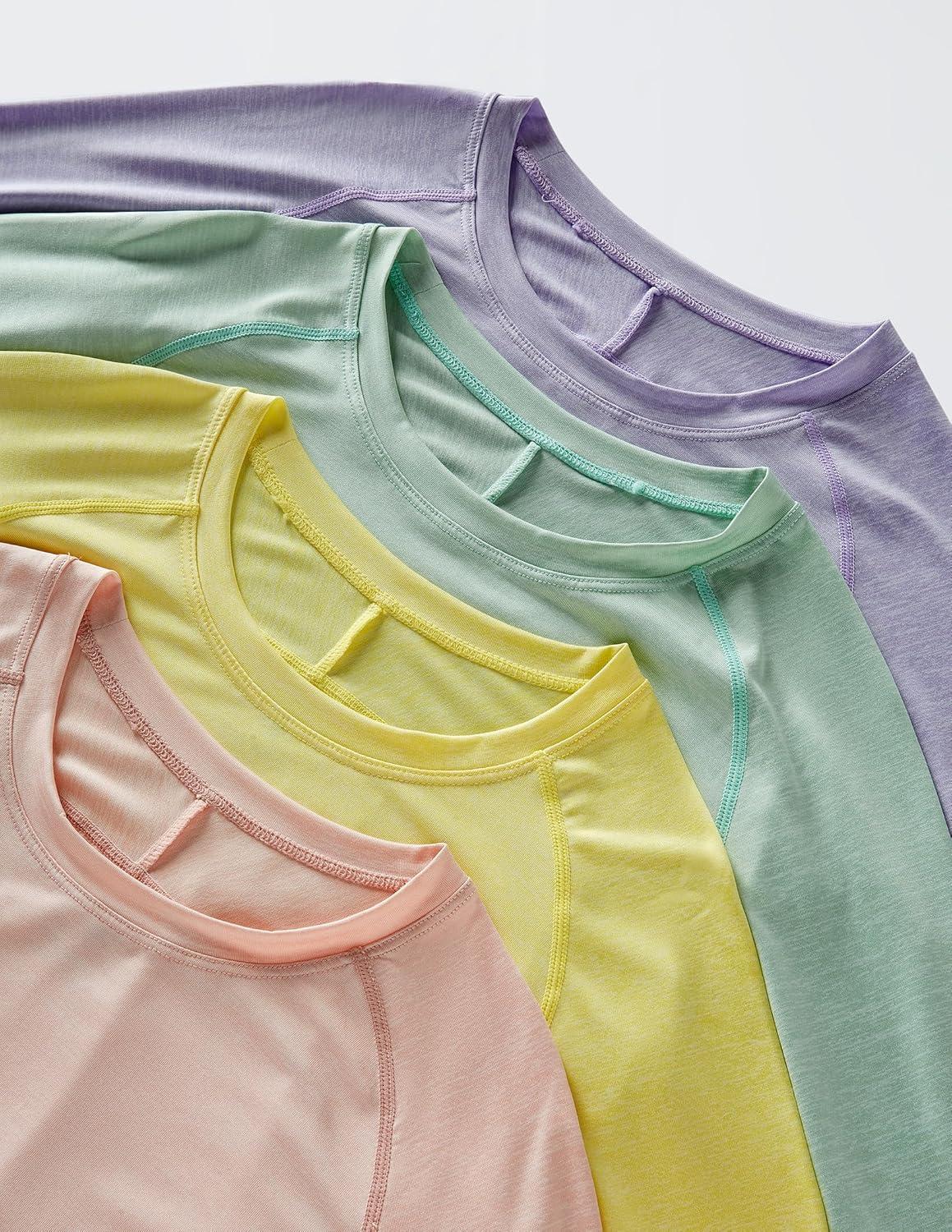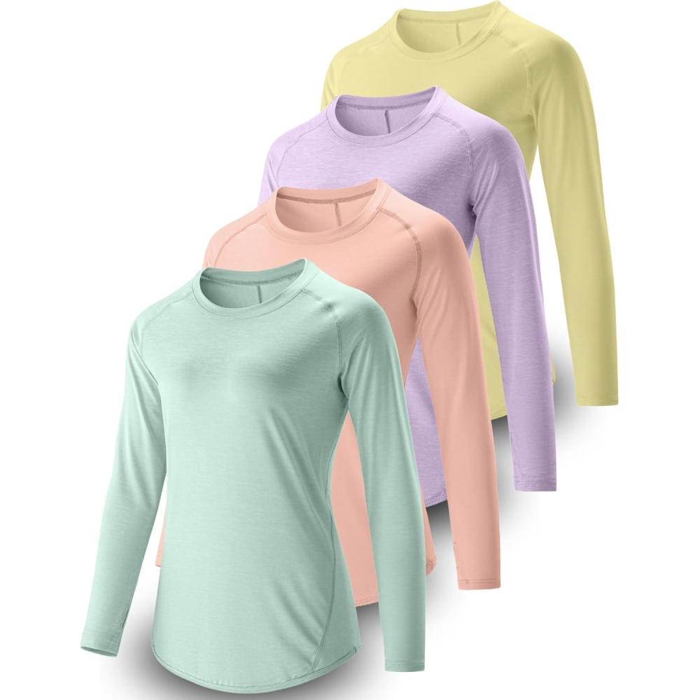 4-Pack: Womens Long Sleeve Athletic Tops with Thumb Holes – Dry Fit Active Crewneck Workout Tees(Lilac/Mint Green/Soft Peach/Butter Yellow)