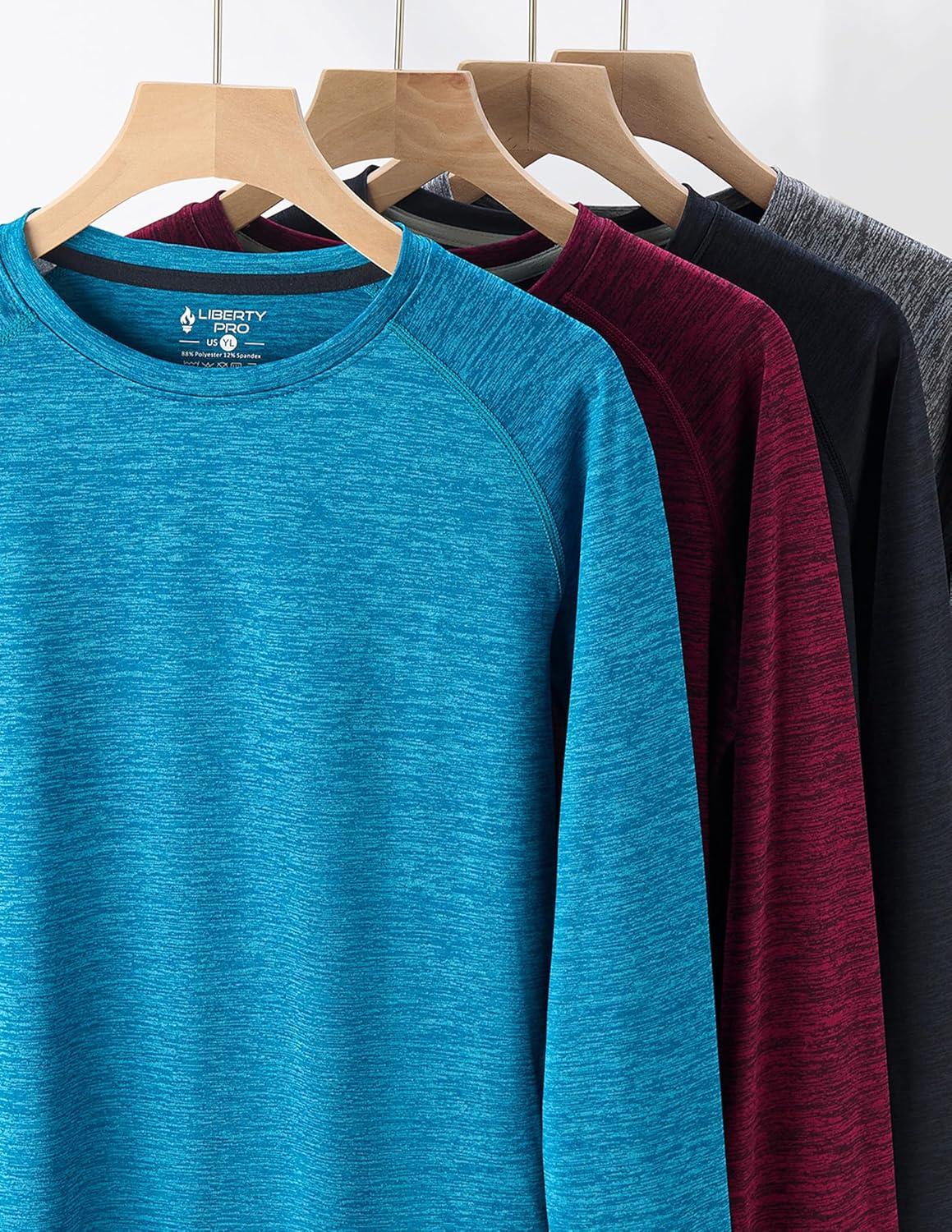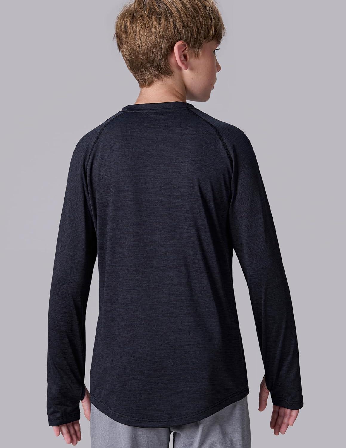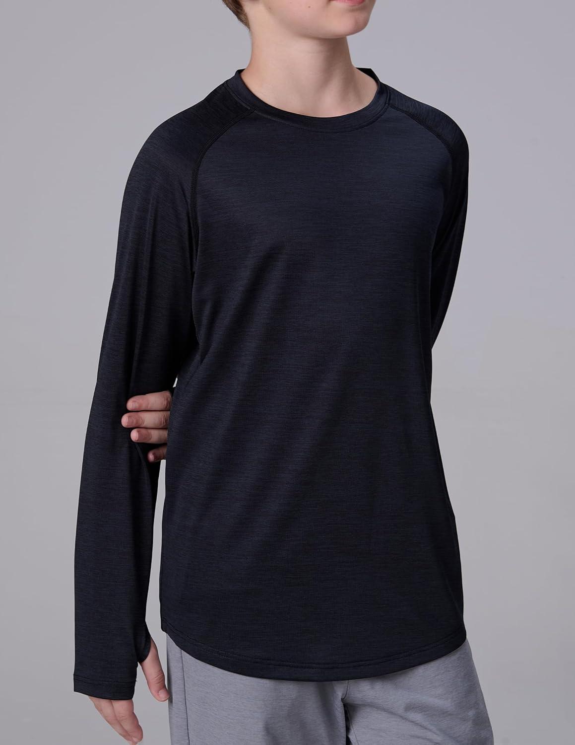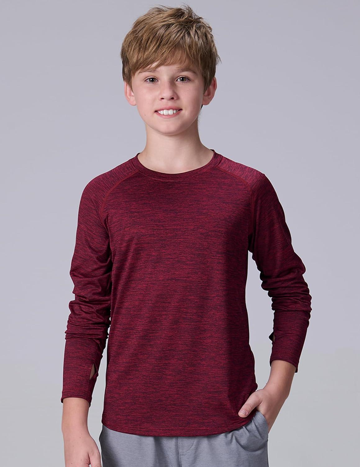4 Pack: Youth Boys Long Sleeve Shirts Dry Fit Athletic Clothes for Teens, Kids Active Performance Tshirts with Thumb Holes(Blue/Gray/Black/Maroon)