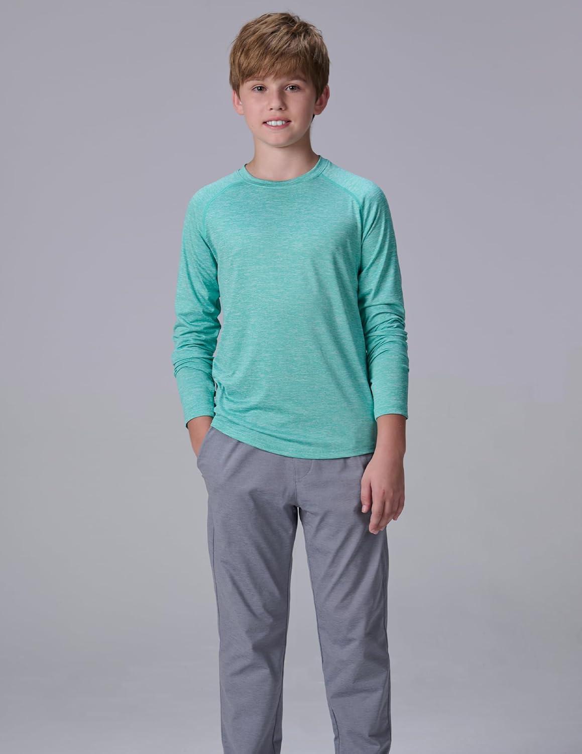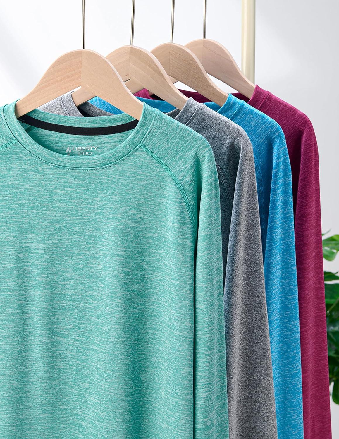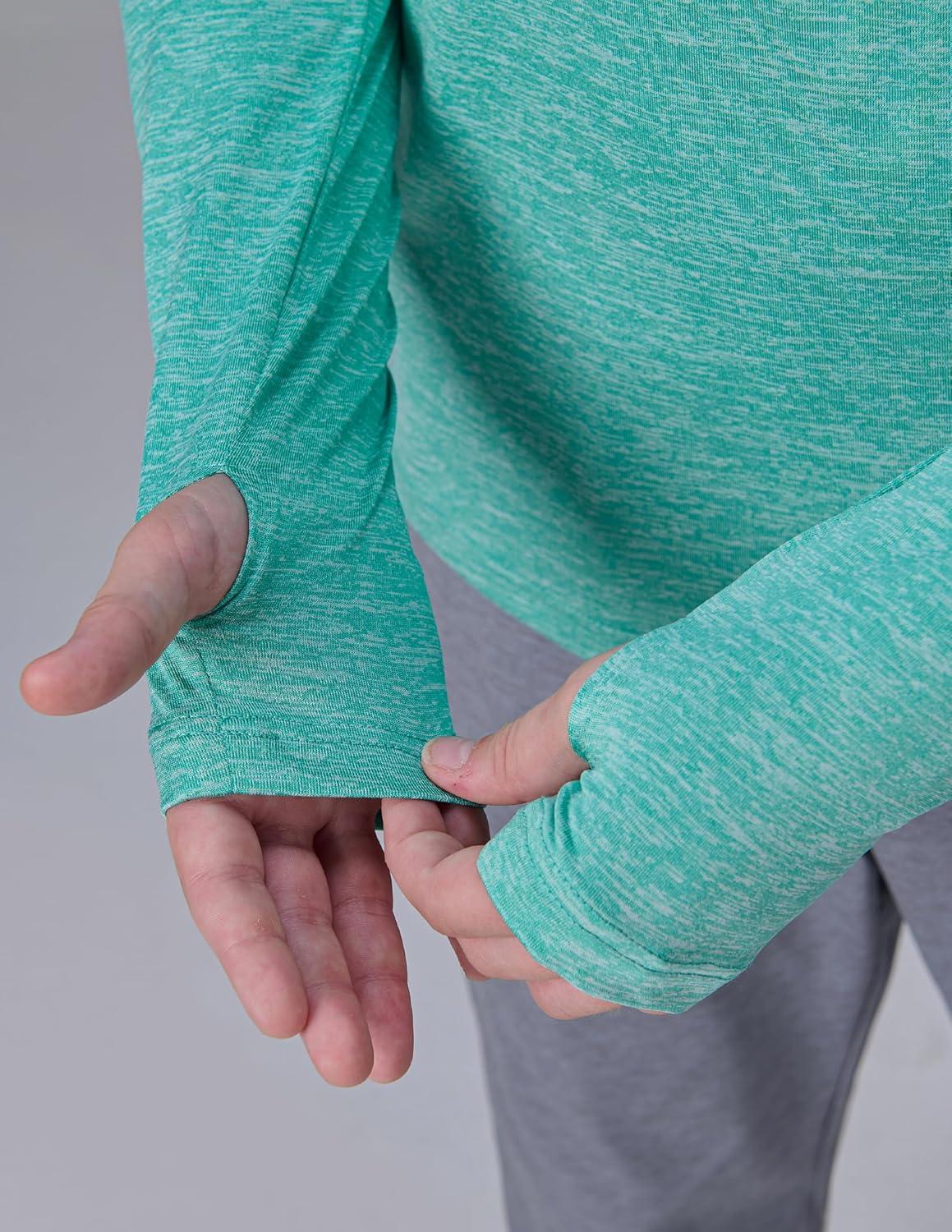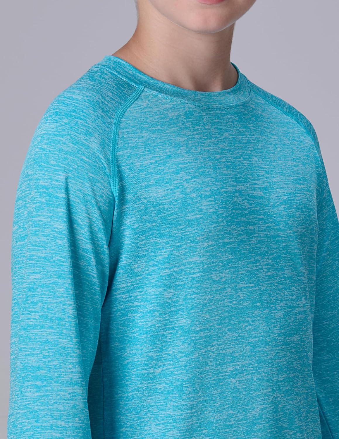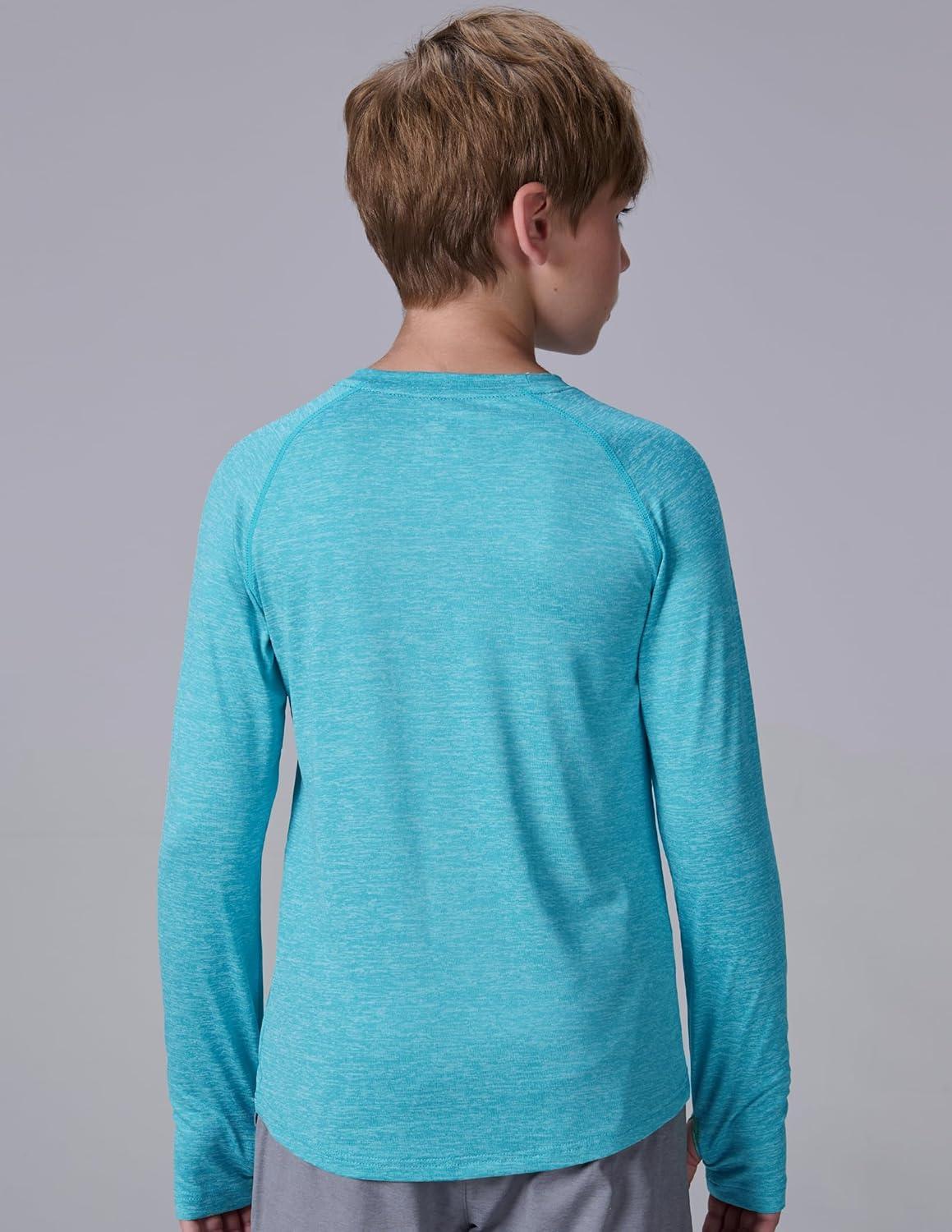 4 Pack: Youth Boys Long Sleeve Shirts Dry Fit Athletic Clothes for Teens, Kids Active Performance Tshirts with Thumb Holes(Gray/Red/Green/Light Blue)
