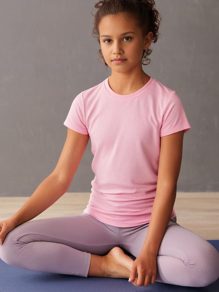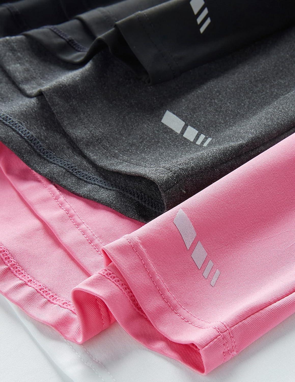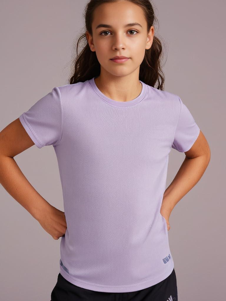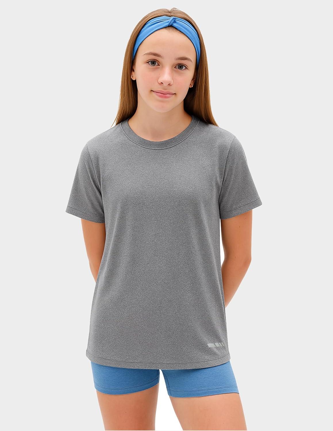 4 Pack: Youth Girls Athletic Shirts, Short Sleeve Dry Fit Apparel Tech Tshirts, Sports Activewear for Kids Teens(Black/Grey/Lavender/Light Pink)