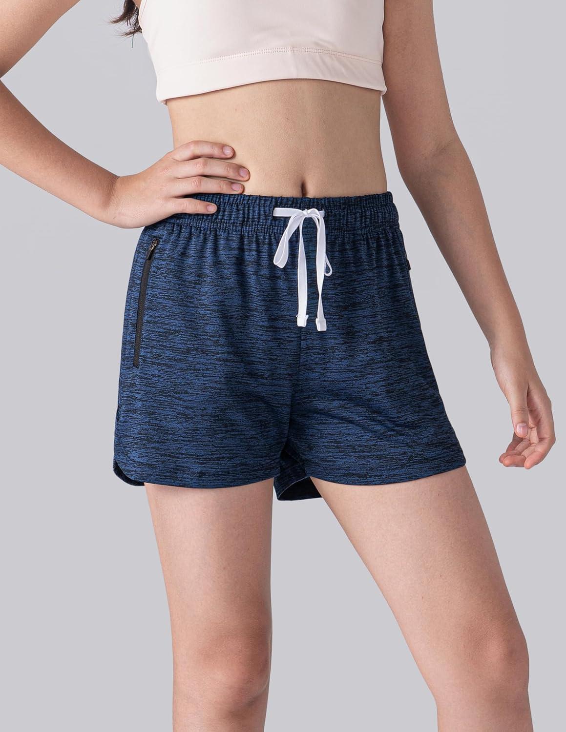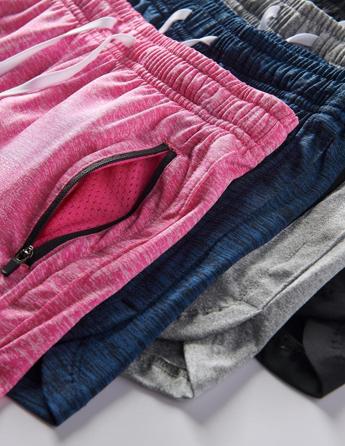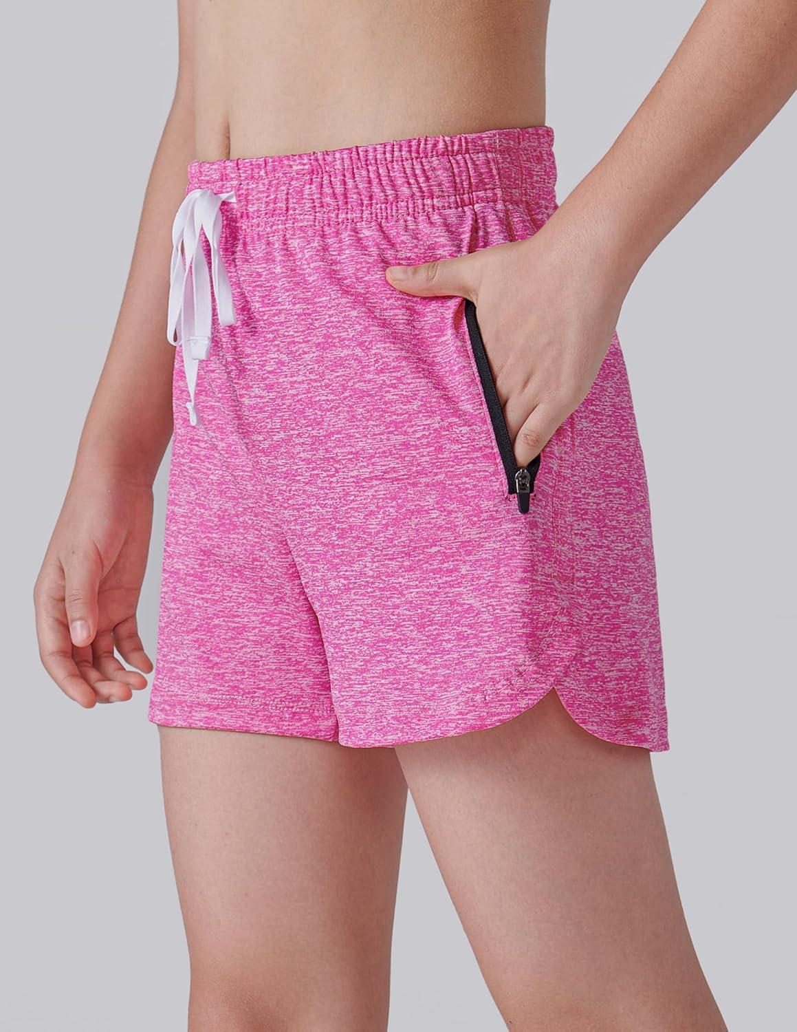 4 Pack Youth Girls Athletic Shorts 3″, Girls Soccer Shorts, Kids Workout Gym Clothes Activewear Apparel with Zipper Pockets(Pink/Gray/Navy/Black)