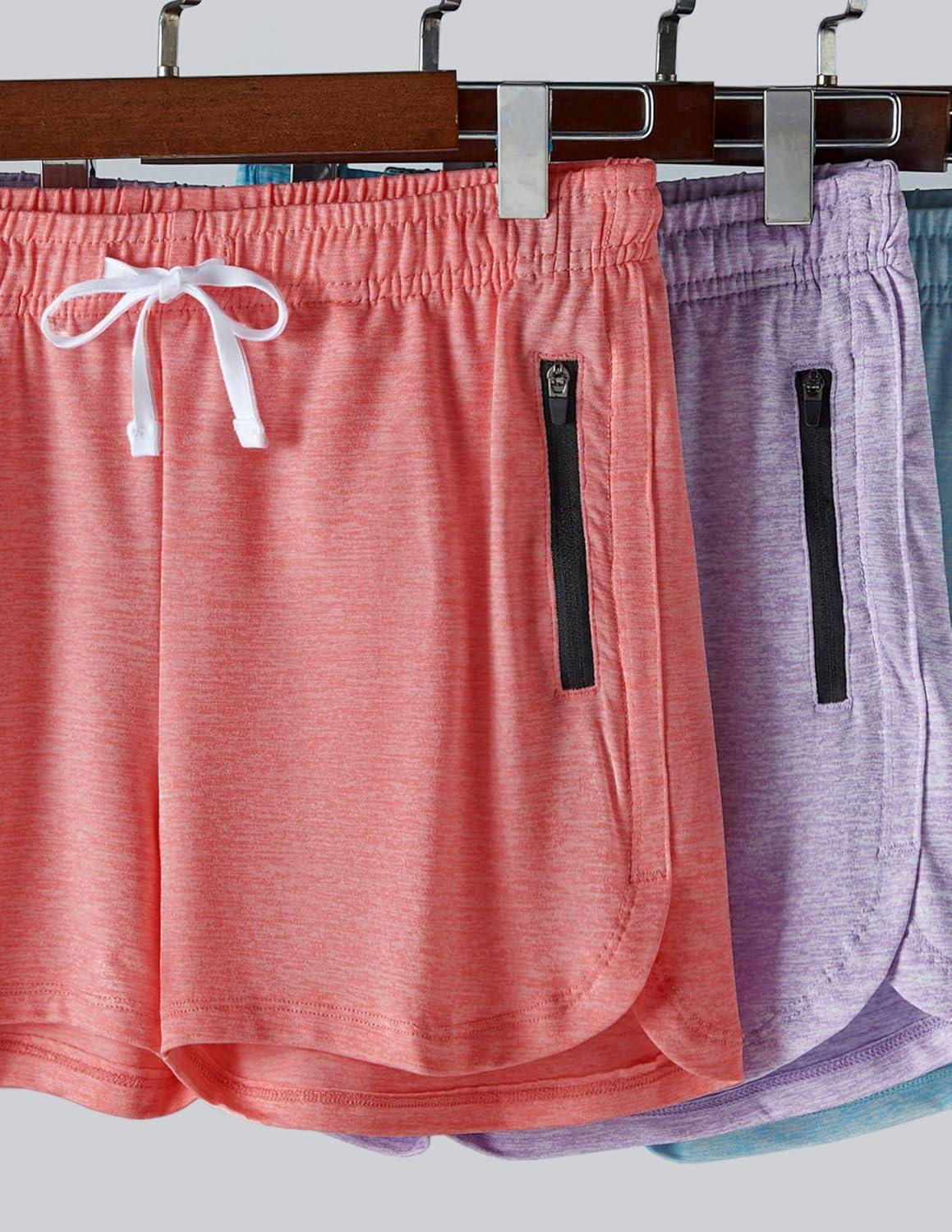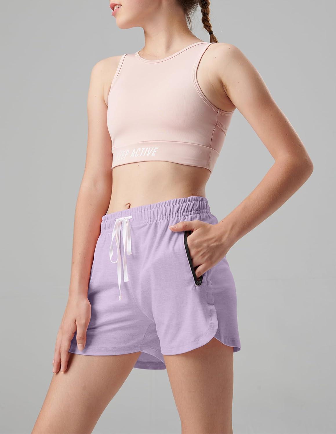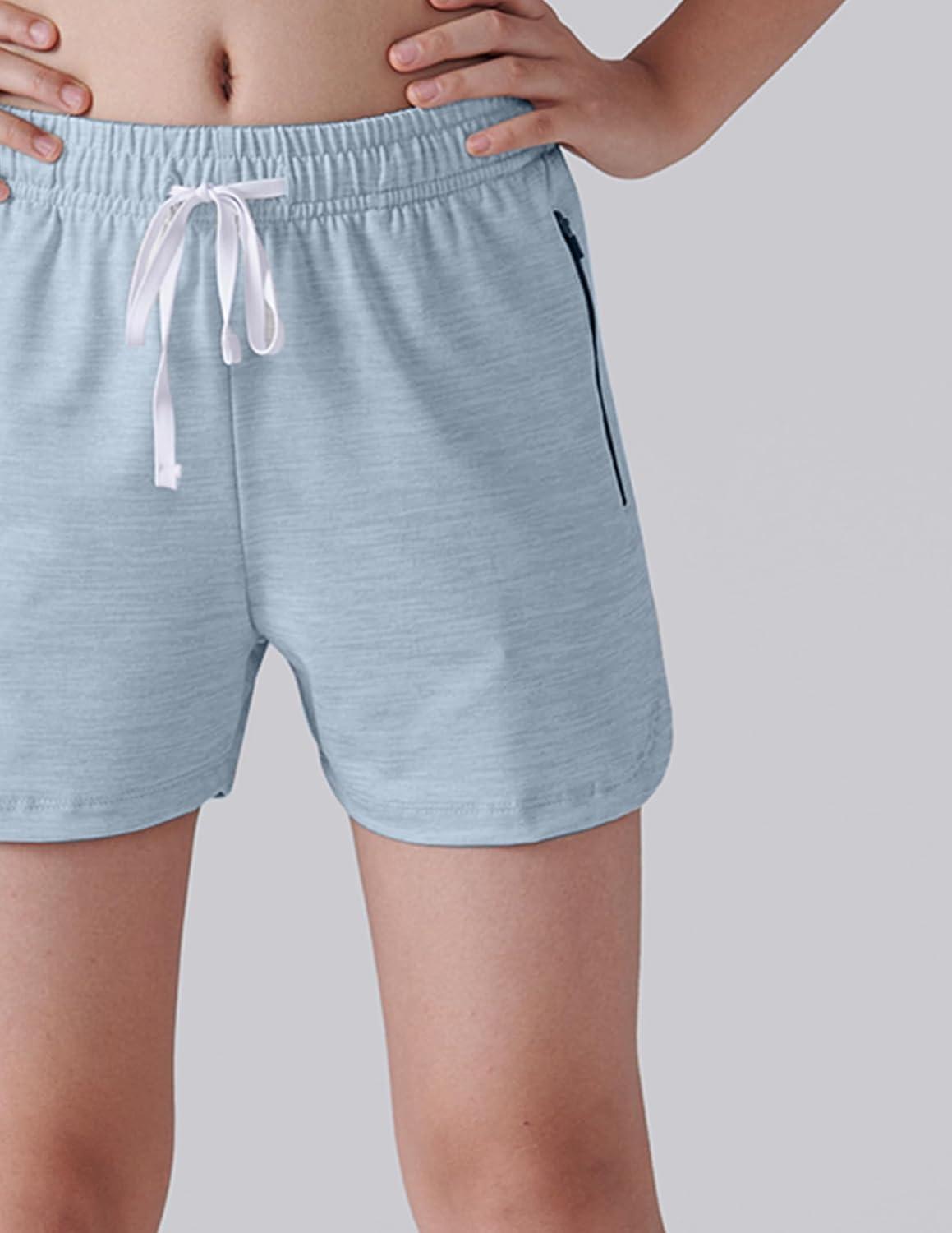 4 Pack Youth Girls Athletic Shorts 3″, Girls Soccer Shorts, Kids Workout Gym Clothes Activewear Apparel with Zipper Pockets(Pink/Mint/Baby Blue/Light Lavender)