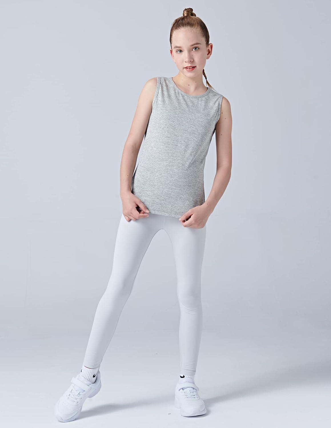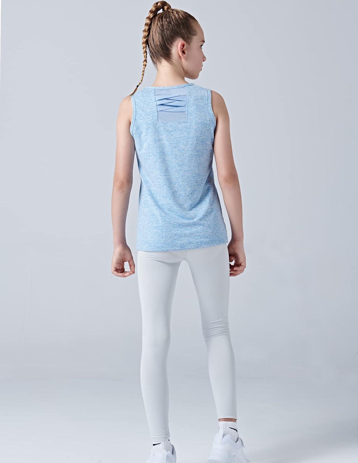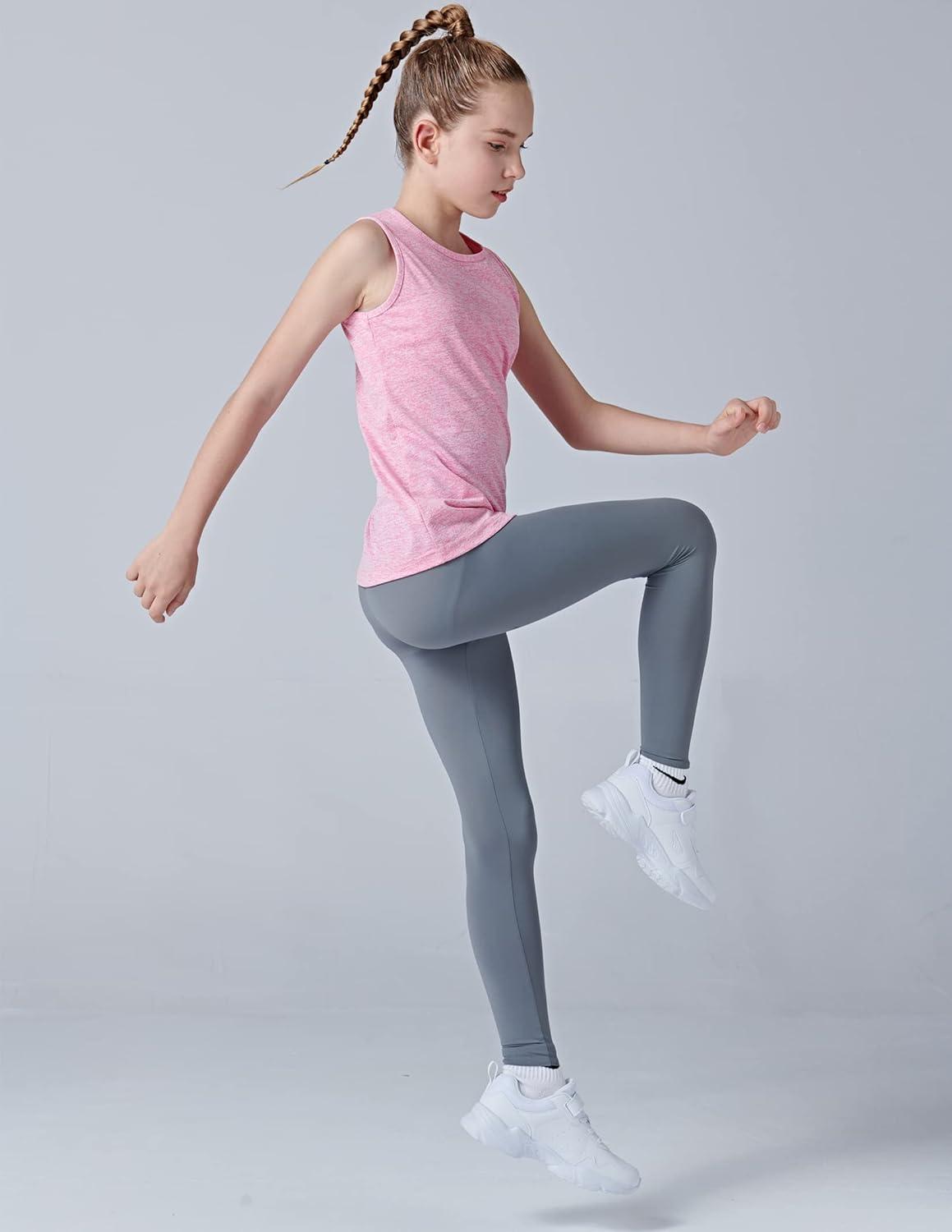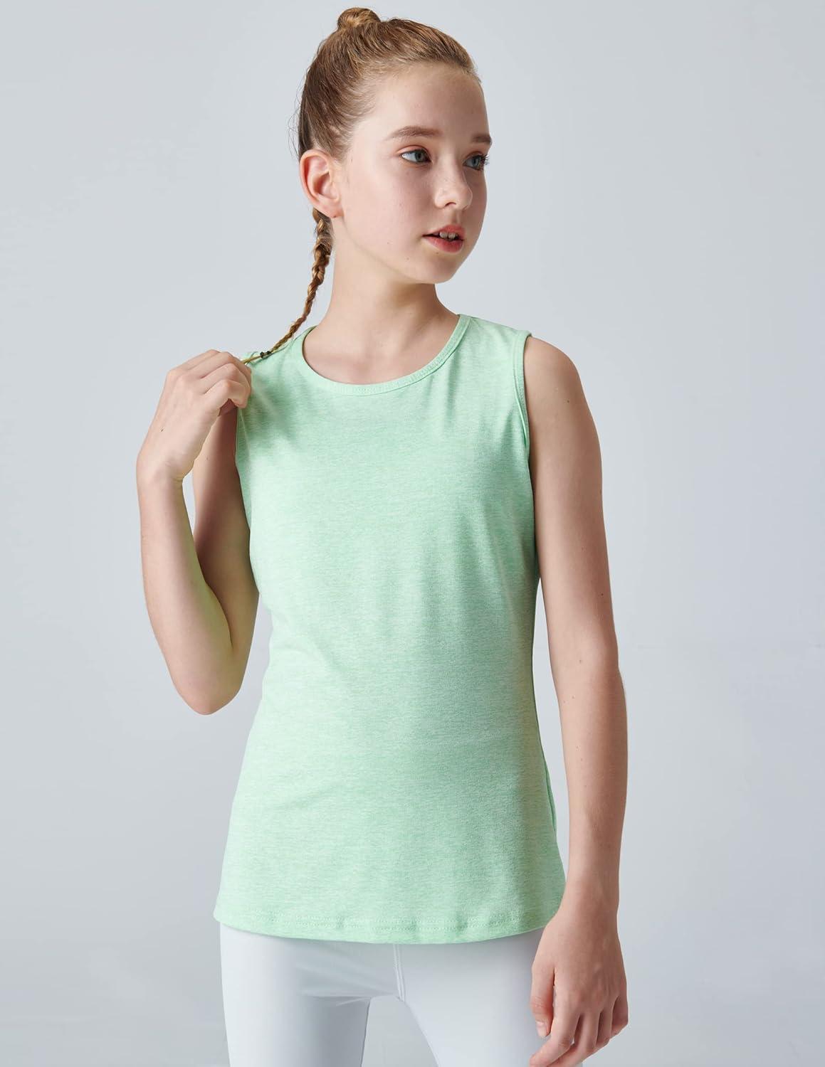 4 Pack Youth Girls Athletic Tank Tops Dry Fit Active Performance Tech Sleeveless Shirts(Heather Green/Pink/Light Blue/Gray)