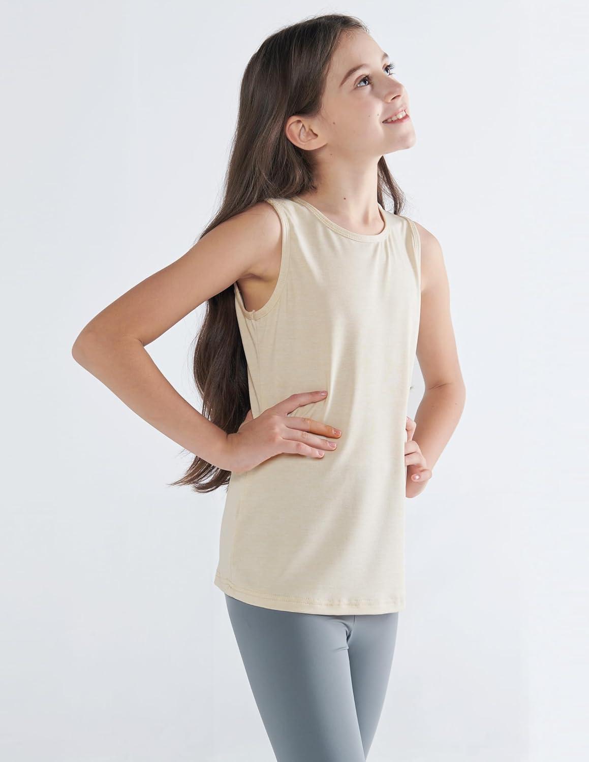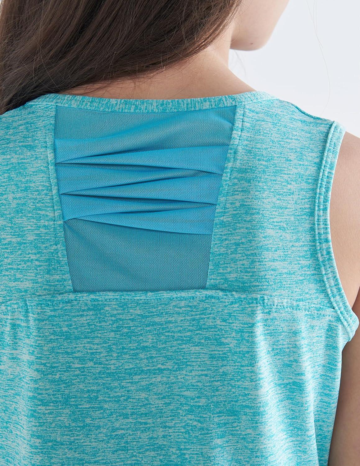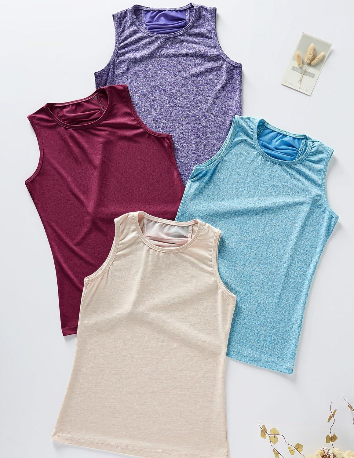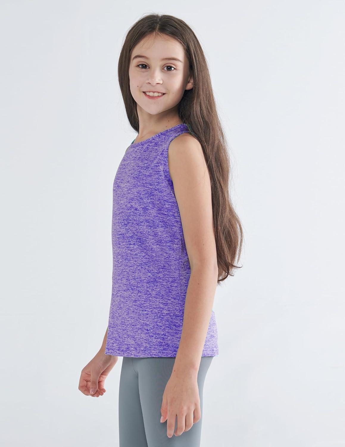 4 Pack Youth Girls Athletic Tank Tops Dry Fit Active Performance Tech Sleeveless Shirts(Whisper Pink/Glacier Blue/Sonar Blue/Sangria)