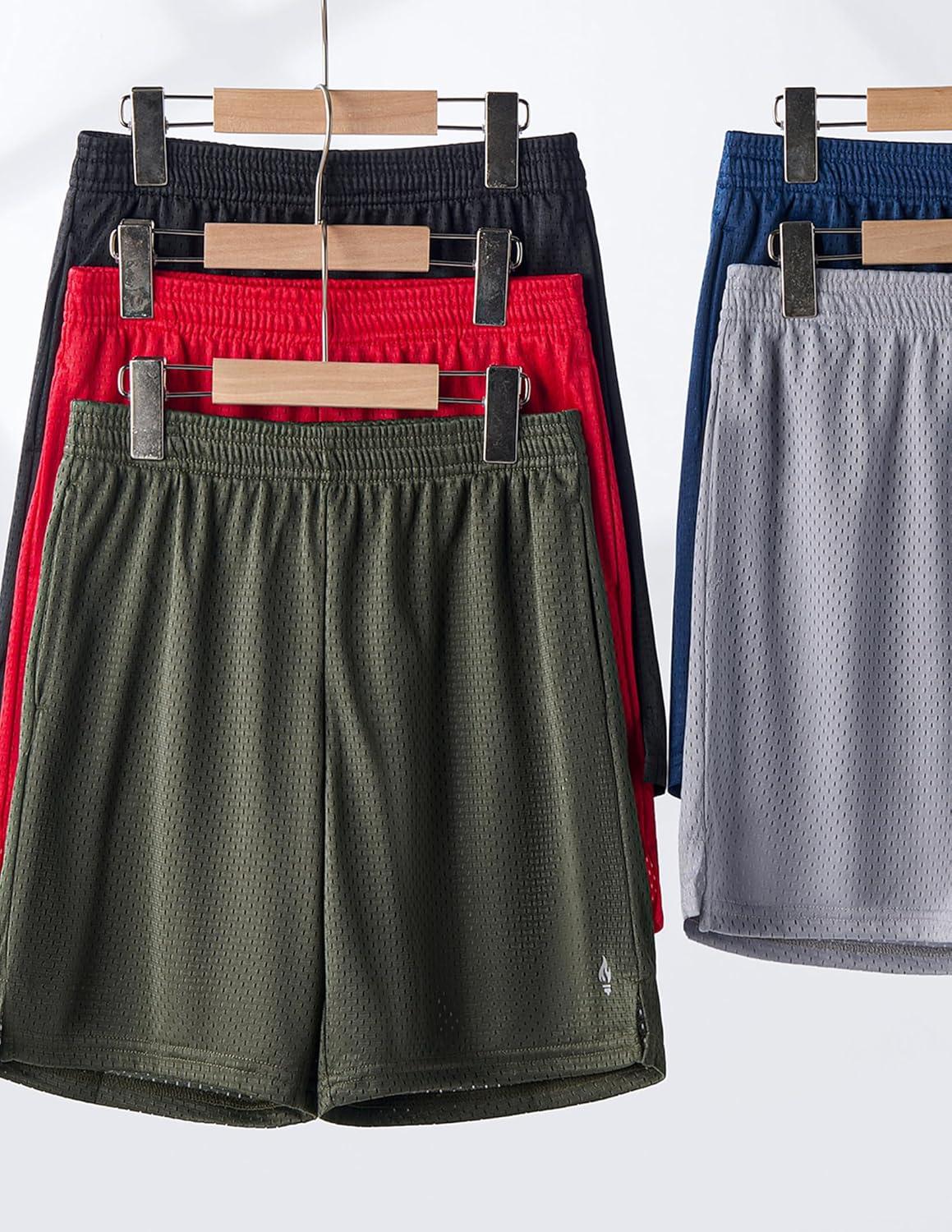 5 Pack Boys Athletic Shorts Mesh Basketball Youth Apparel Kids Sports Active Gear with Pockets(Red/Gray/Navy/Black/Olive)