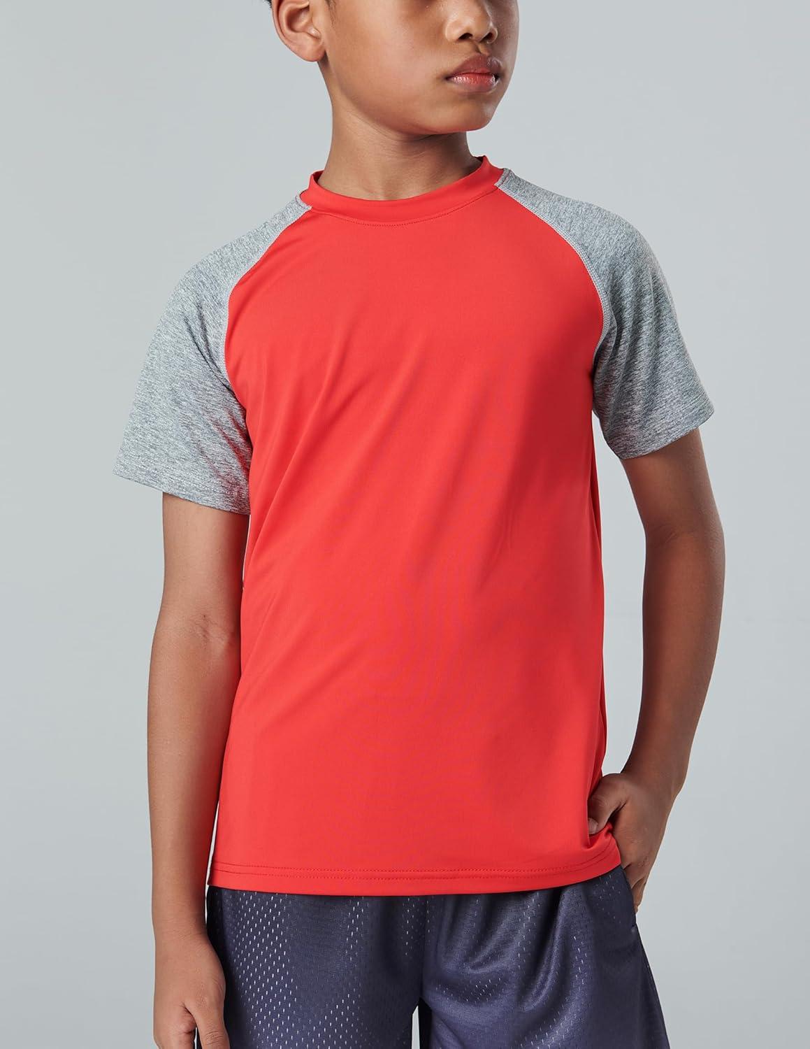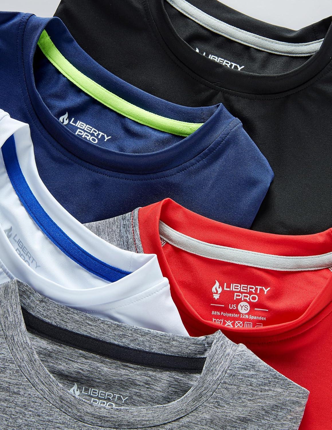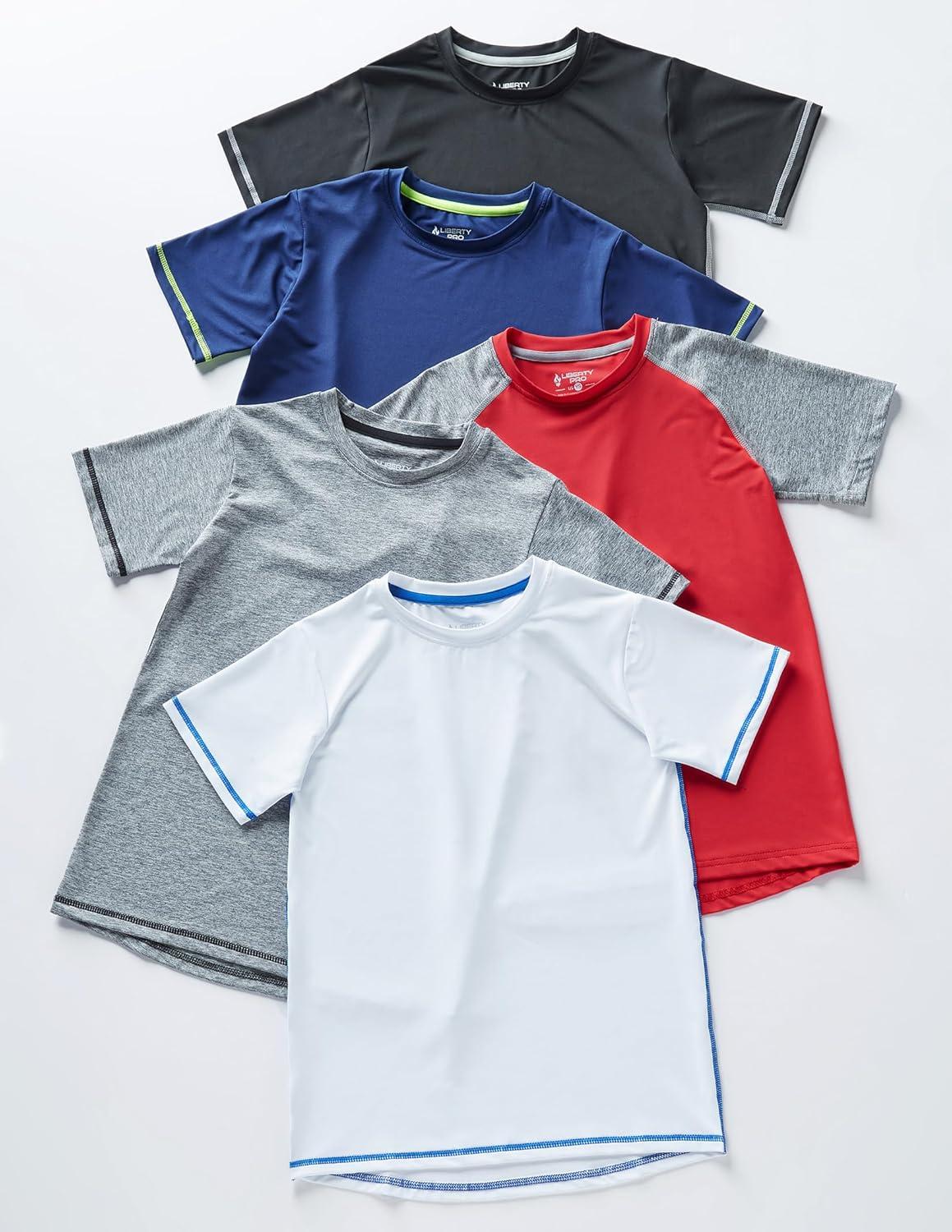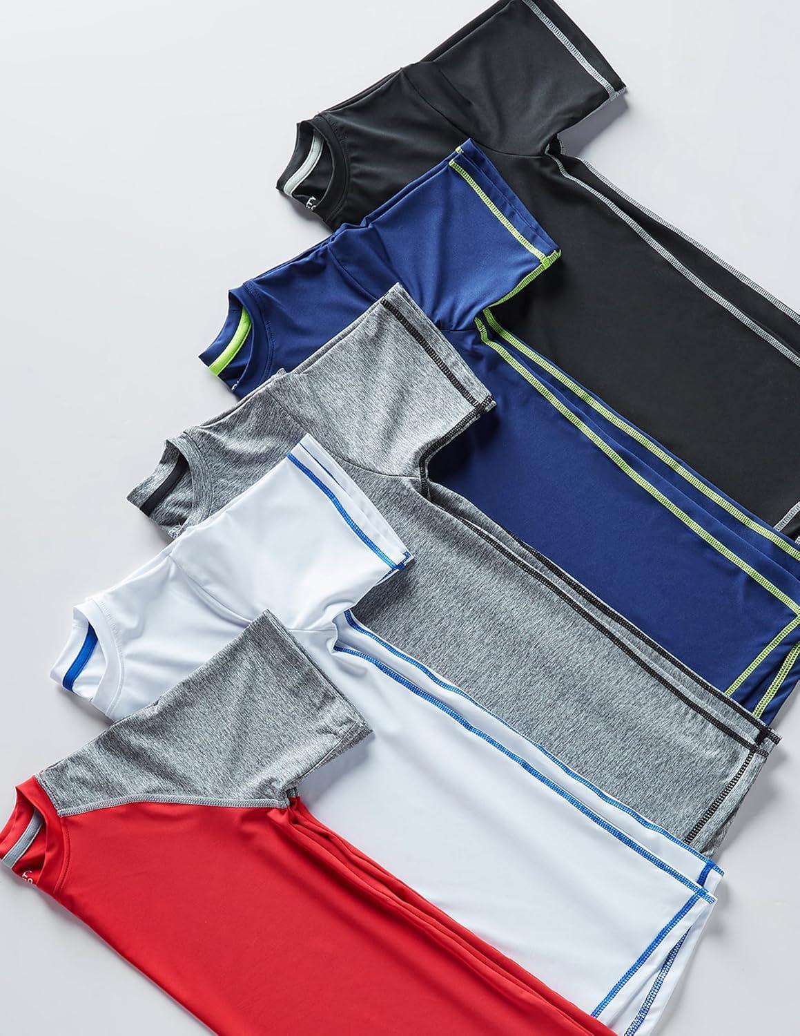 5 Pack Boys Athletic T Shirts, Youth Kids Dry Fit Short Sleeve Tees Performance Tops Activewear Clothing Bulk(Black/White/Navy/Red/Heather Gray)