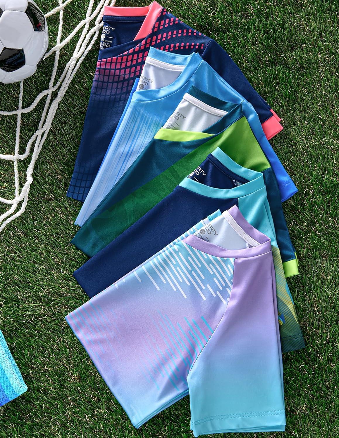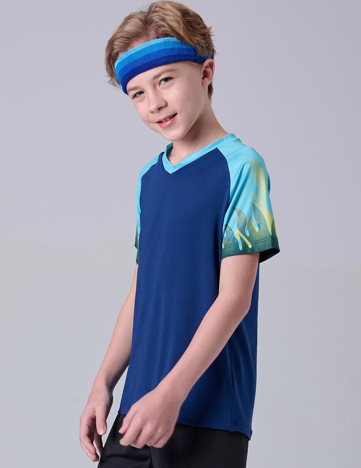 5 Pack Boys Athletic T Shirts, Youth Kids Dry Fit Short Sleeve Tees Performance Tops Activewear Clothing Bulk(Blues)