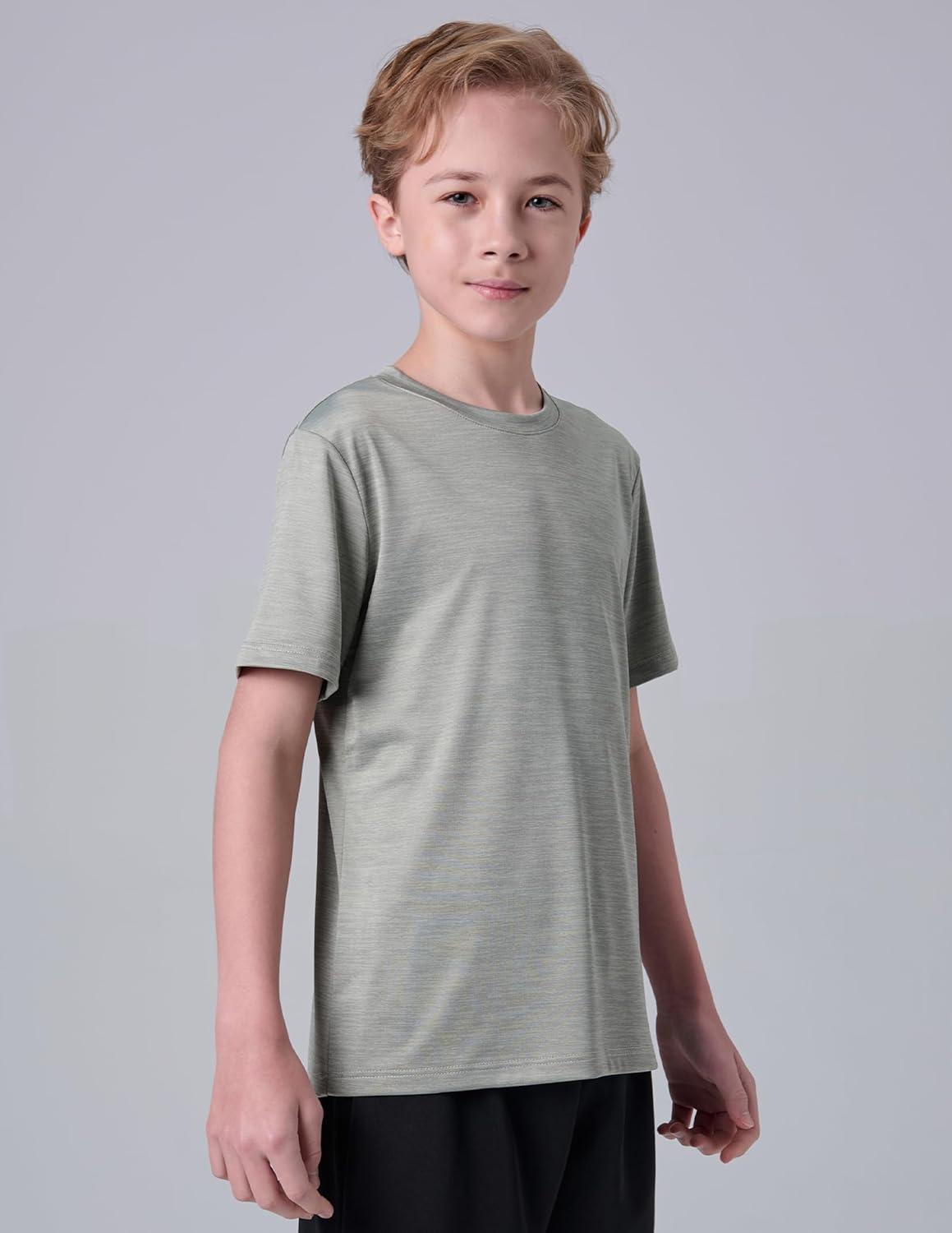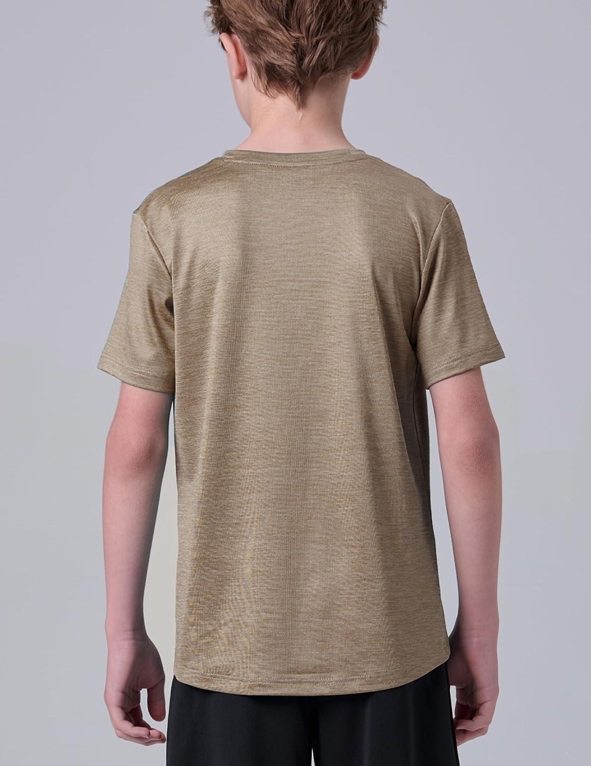 5 Pack Boys Athletic T Shirts, Youth Kids Dry Fit Short Sleeve Tees Performance Tops Activewear Clothing Bulk(Earth Tones)