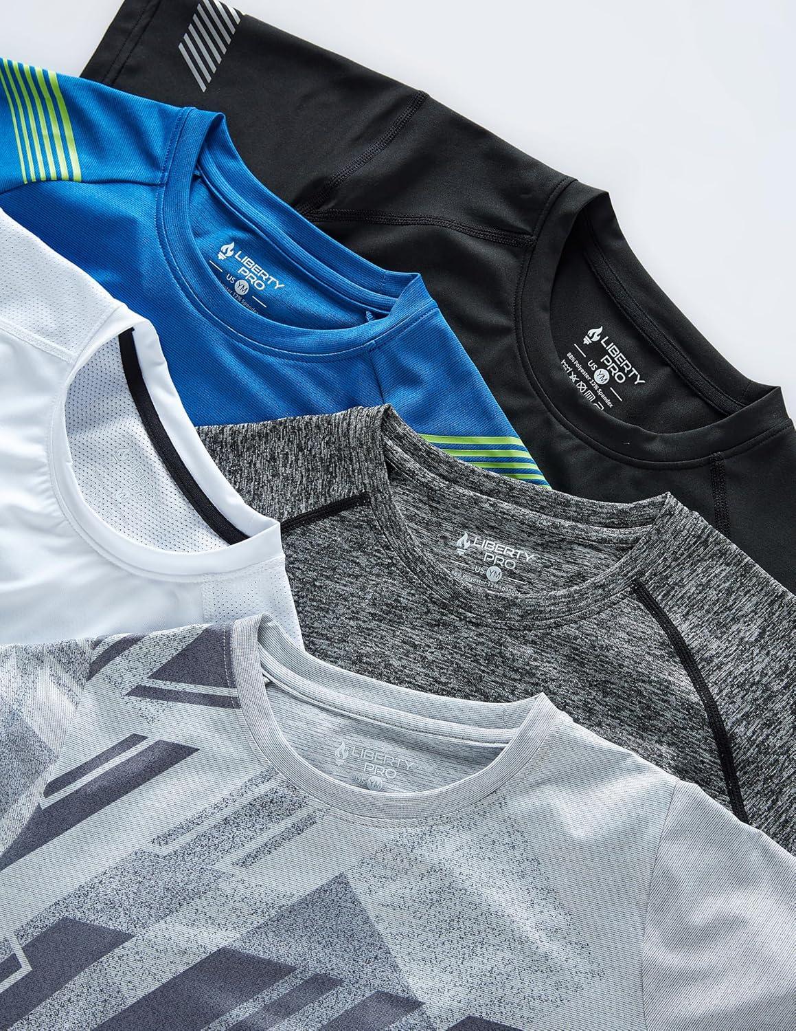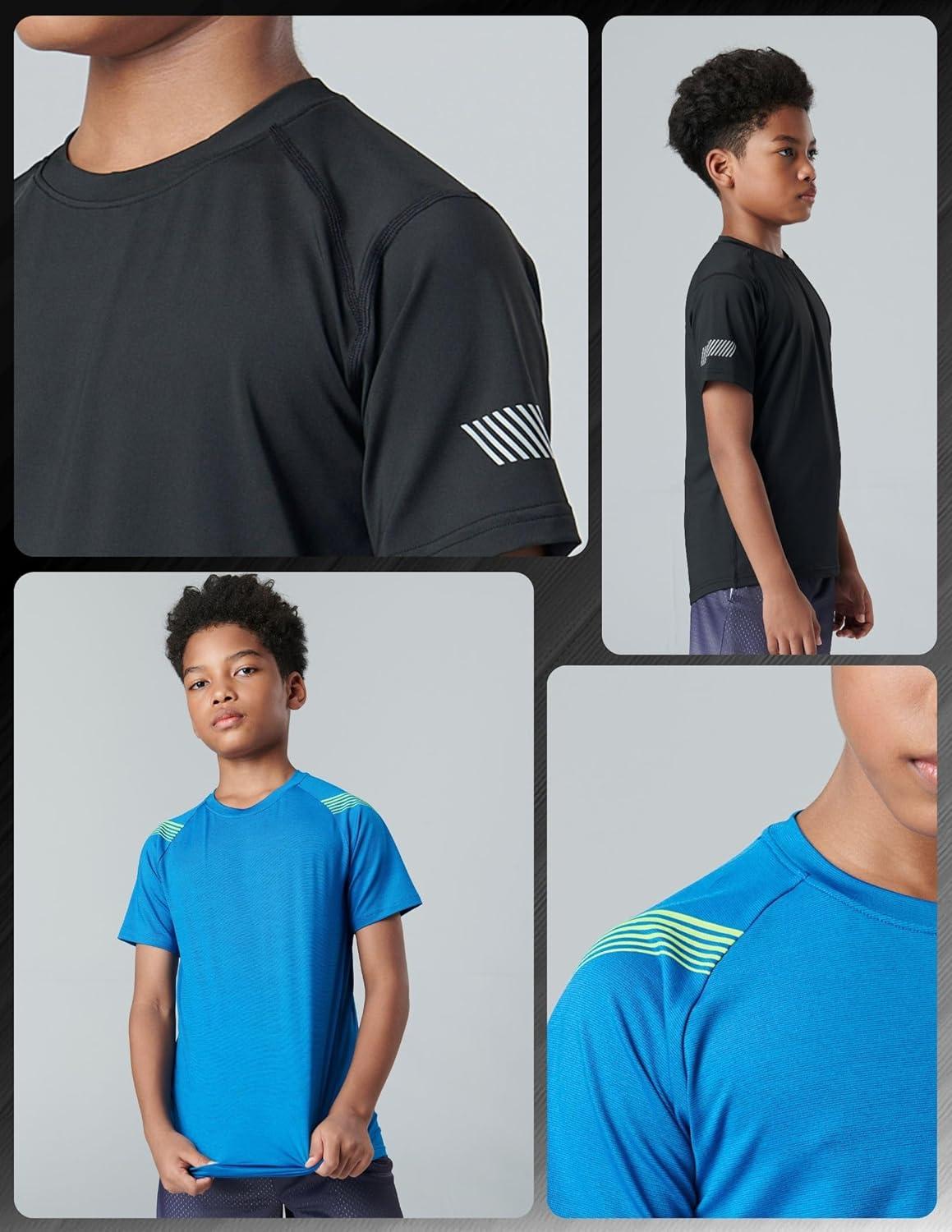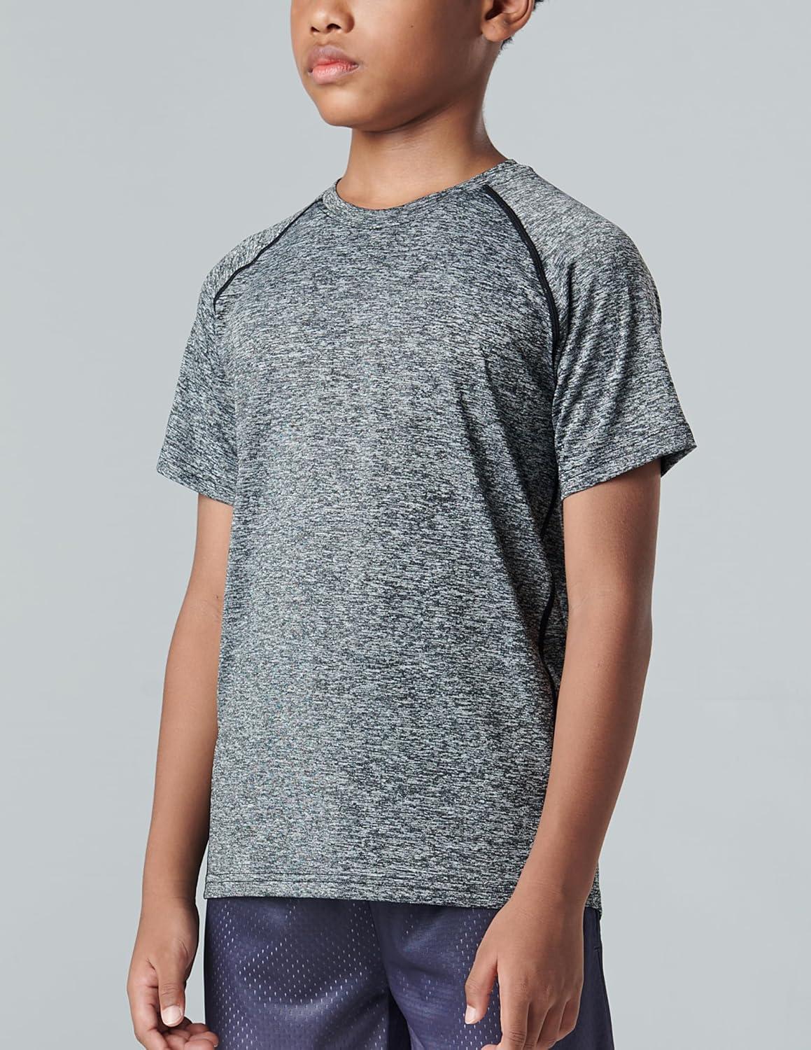 5 Pack Boys Athletic T Shirts, Youth Kids Dry Fit Short Sleeve Tees Performance Tops Activewear Clothing Bulk(White/Gray/Blue/Charcoal/Black)