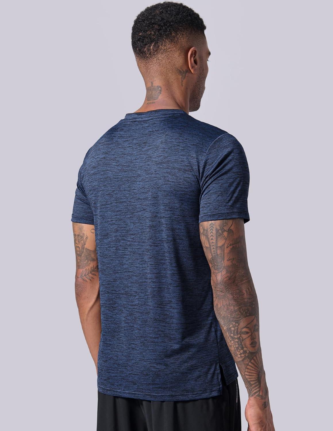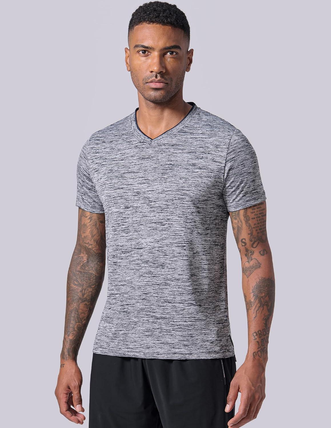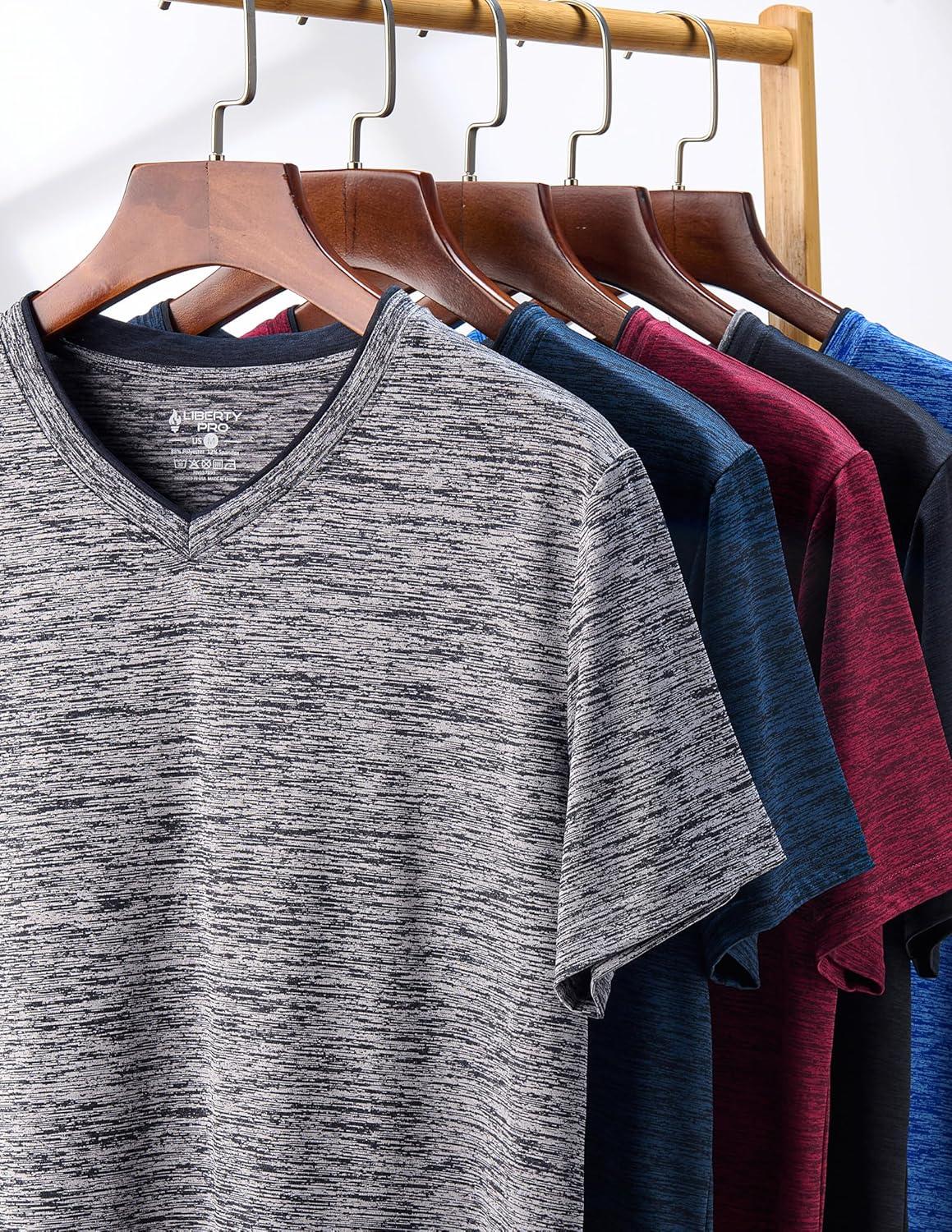 5 Pack Mens V-Neck Dry Fit T-Shirts, Active Athletic Short Sleeve Workout Tops, Performance Gym Tees (Available in Plus Size)(Blue/Gray/Navy/Black/Maroon)