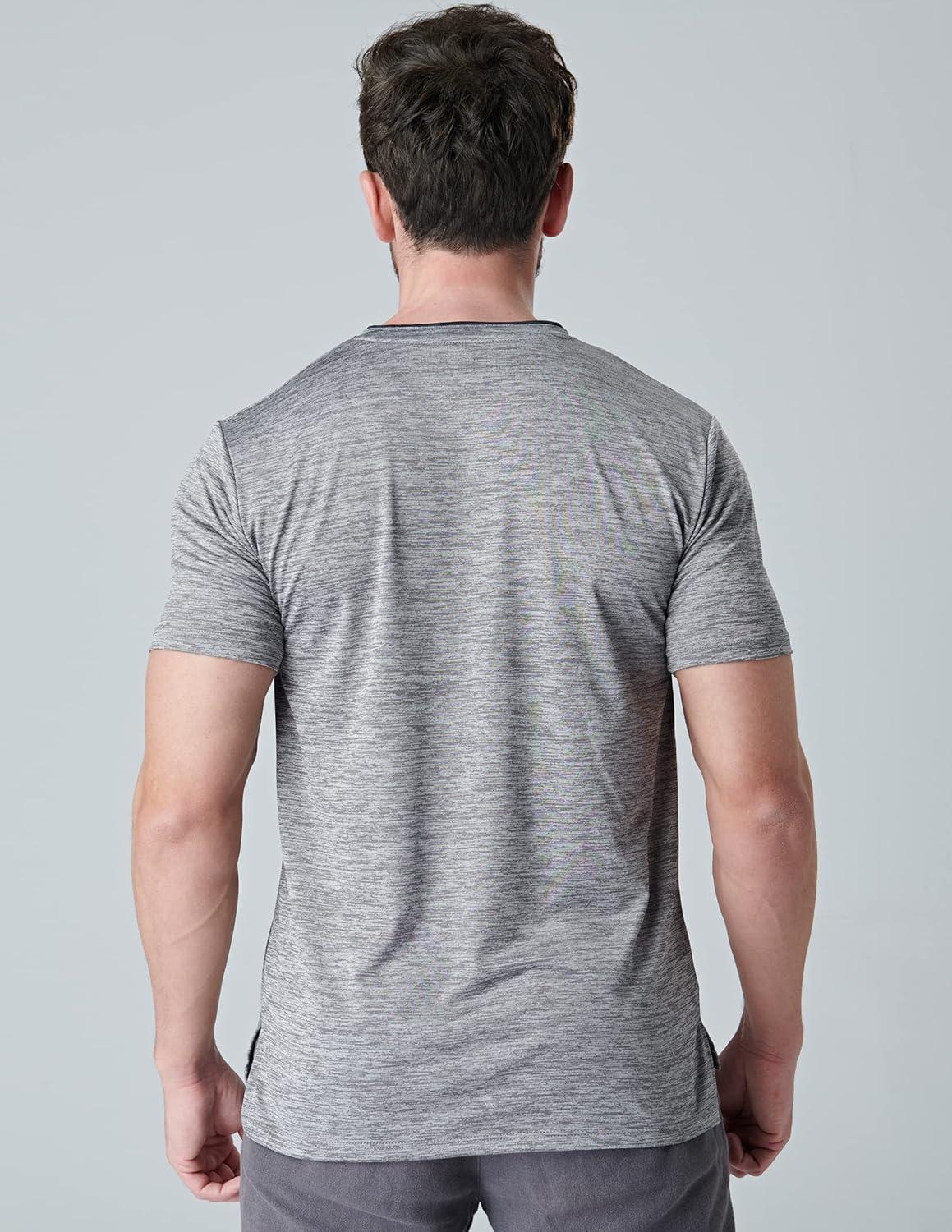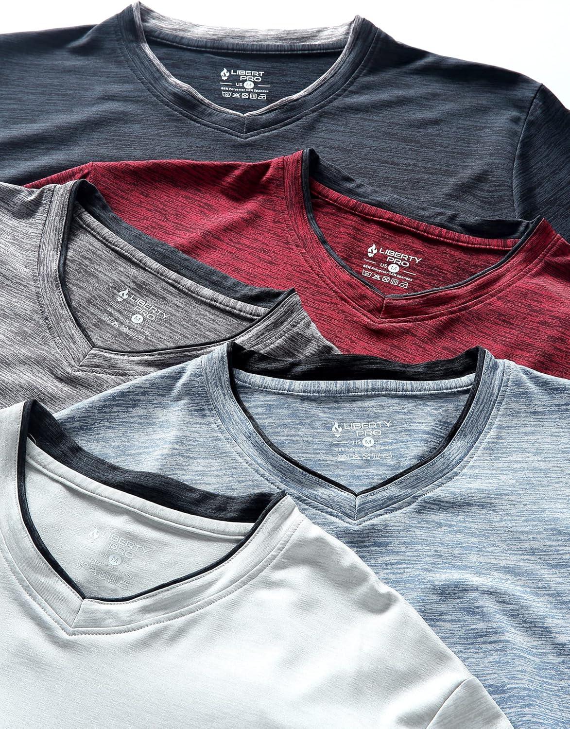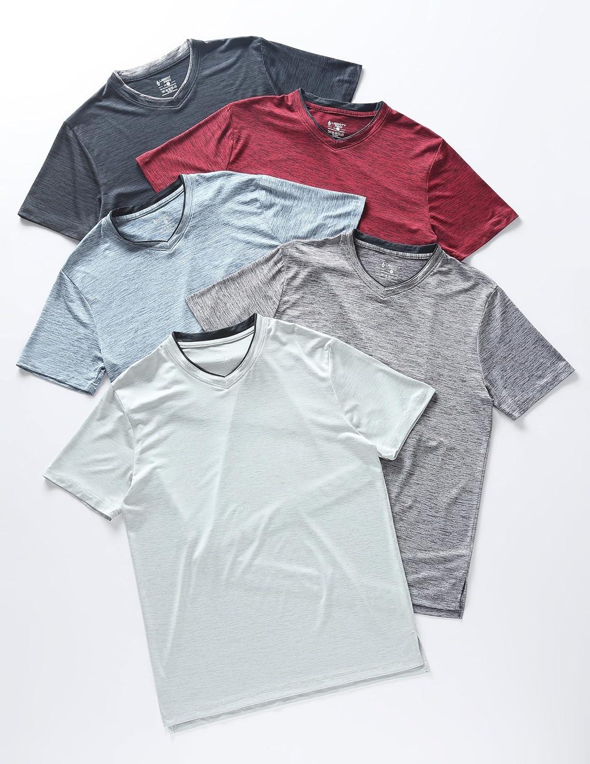 5 Pack Mens V-Neck Dry Fit T-Shirts, Active Athletic Short Sleeve Workout Tops, Performance Gym Tees (Available in Plus Size)(Heather Grays/Light Blue/Black/Maroon)