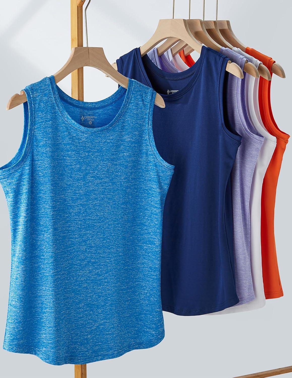 5 Pack Wide Straps Womens Workout Tank Tops, Athletic Sleeveless Shirts for Women, Ladies Exercise Tops for Yoga Tennis(Lilac/White/Tangerine/Navy Blue/Teal Blue)