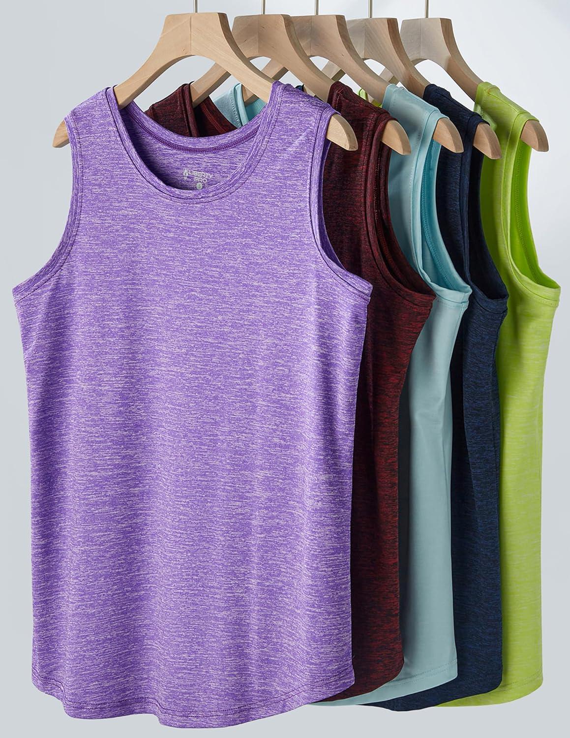 5 Pack Wide Straps Womens Workout Tank Tops, Athletic Sleeveless Shirts for Women, Ladies Exercise Tops for Yoga Tennis(Navy/Purple/Maroon/Baby Blue/Neon Yellow)