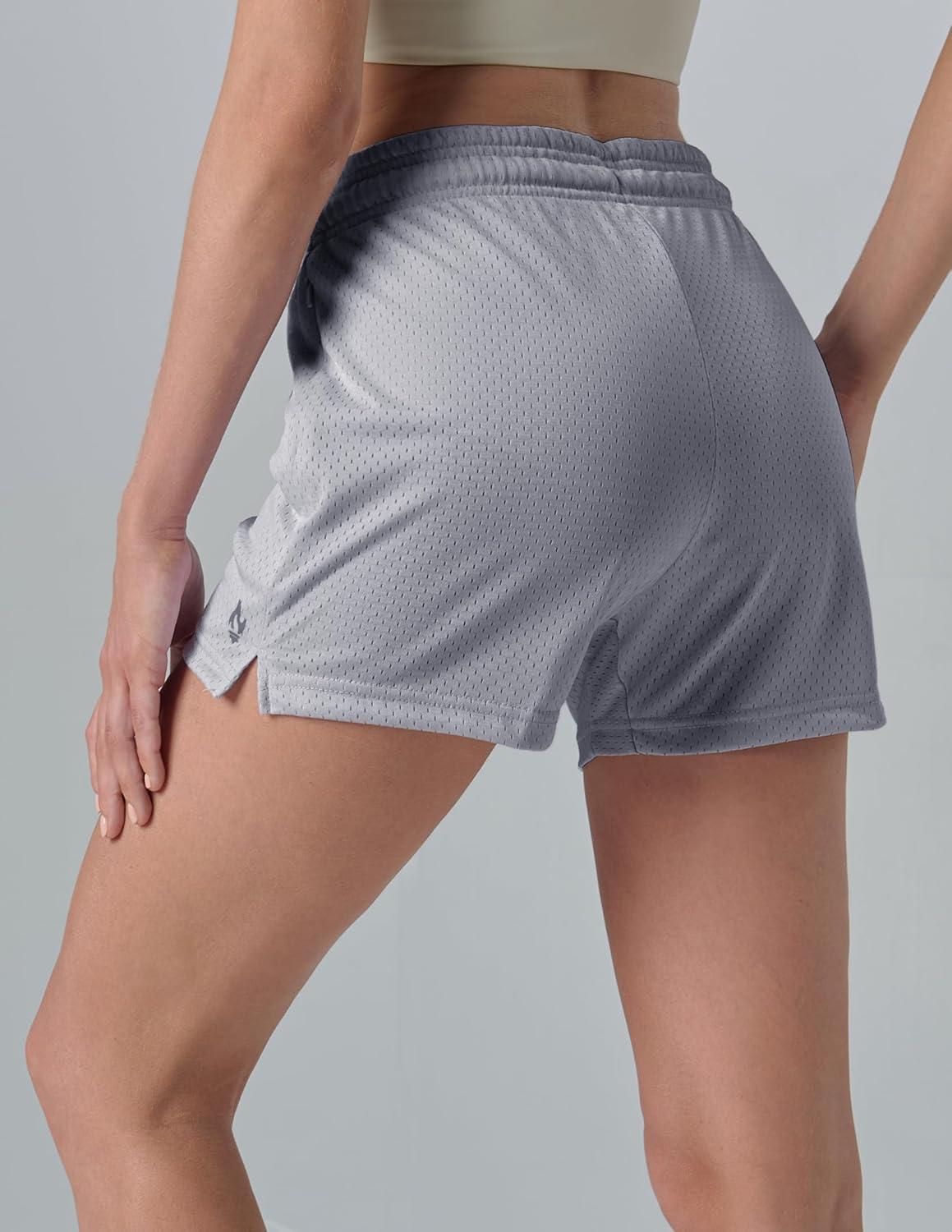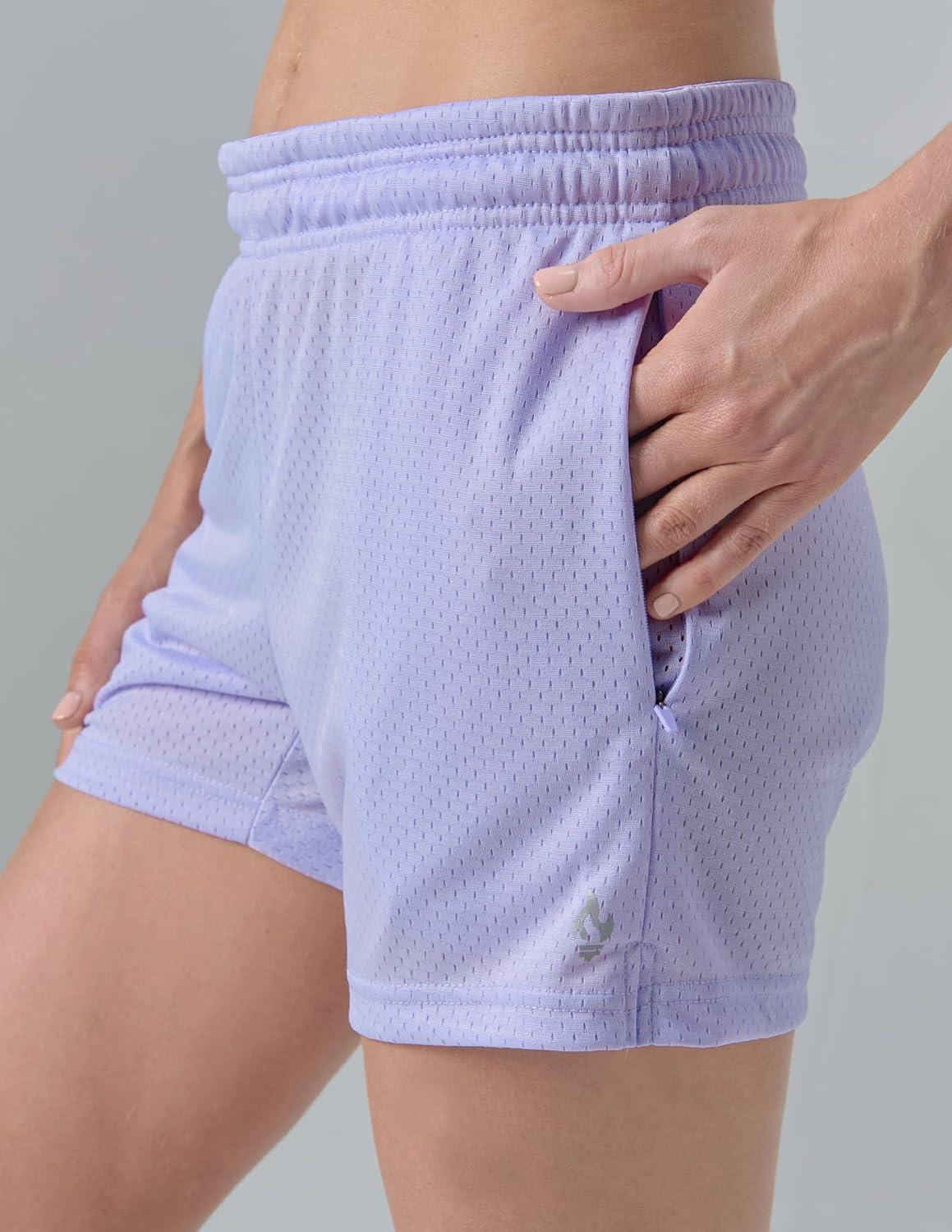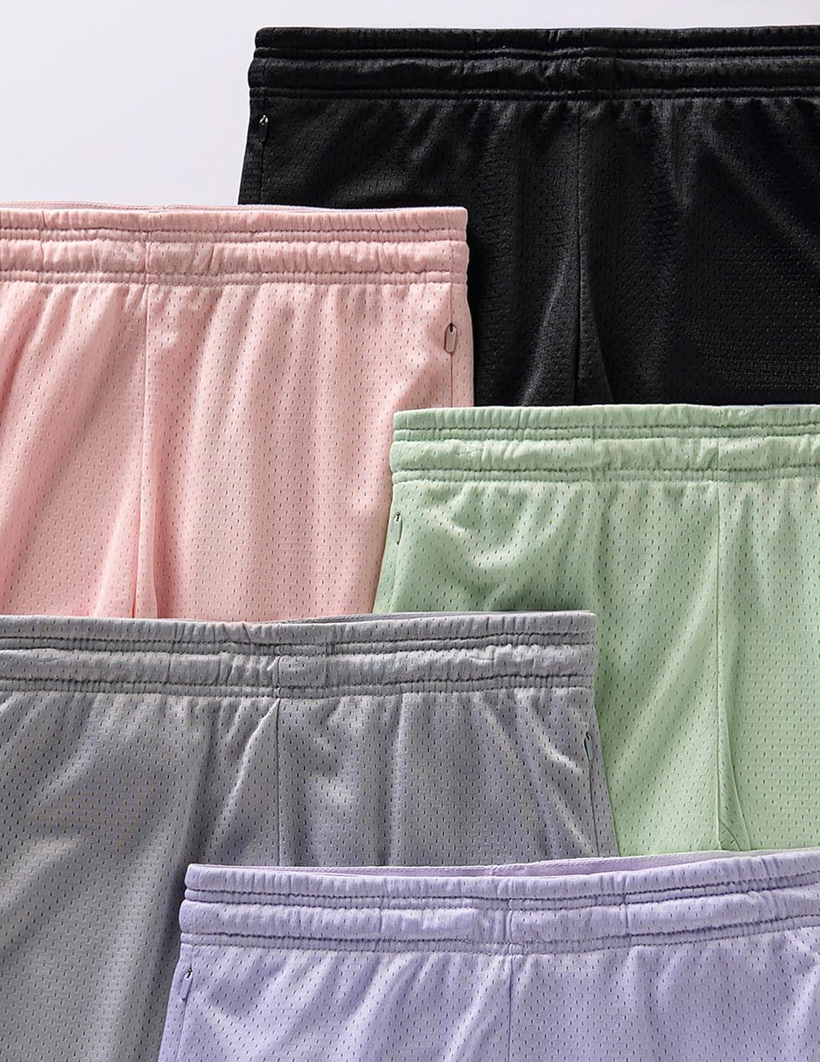 5-Pack Women’s Athletic Shorts Mesh Basketball, Ladies Active Loose Pull-On Shorts with Zipper Pockets, 5″ Inseam(Black/Pink/Gray/Green/Lilac)