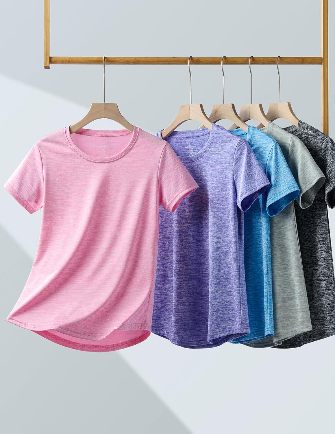 5 Pack: Women’s Dry Fit Short Sleeve T Shirts, Athletic Workout Tee Tops for Gym Yoga Running(Gray/Blue/Pink/Lavender/Charcoal)