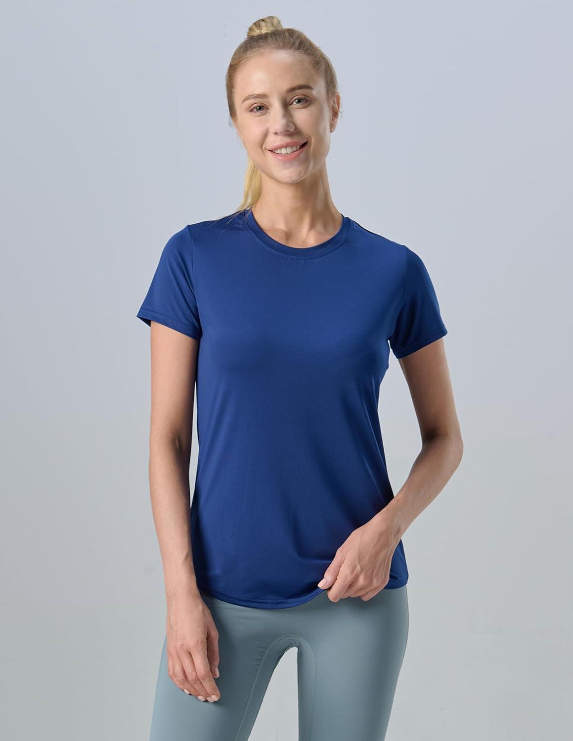 5 Pack: Women’s Dry Fit Short Sleeve T Shirts, Athletic Workout Tee Tops for Gym Yoga Running(Navy/Black/White/Light Pink/Light Gray)